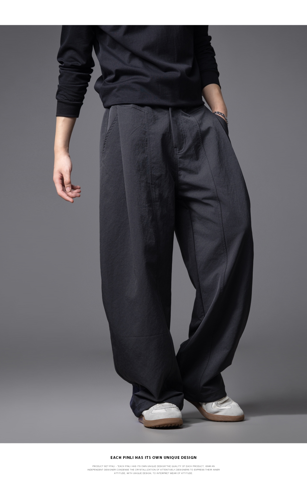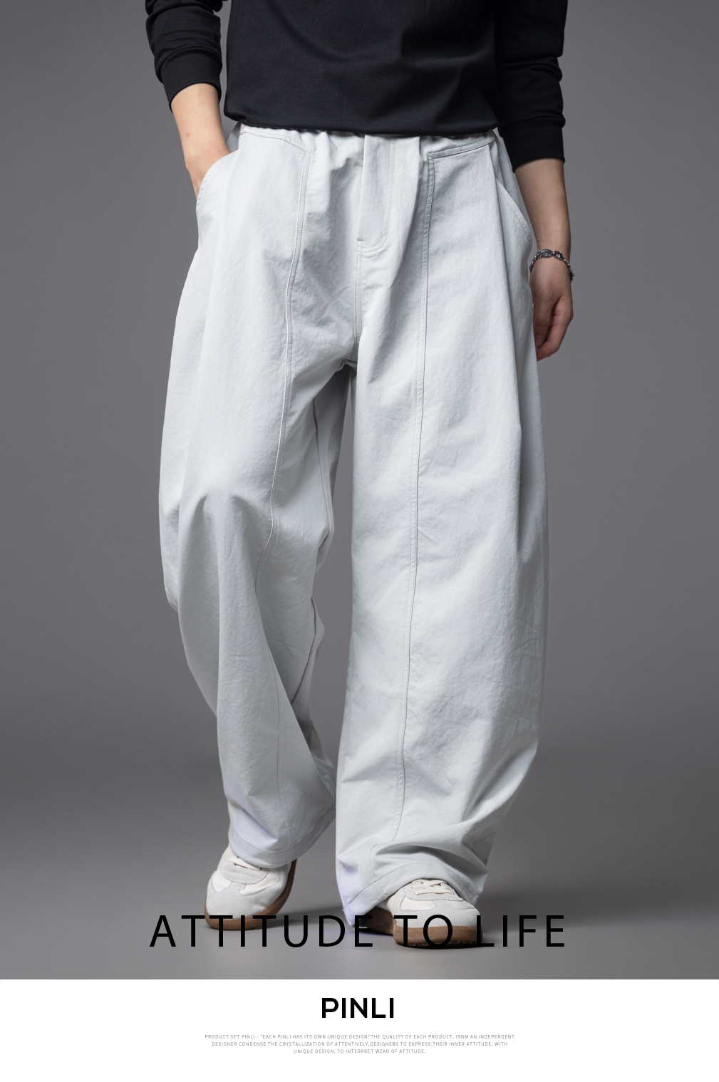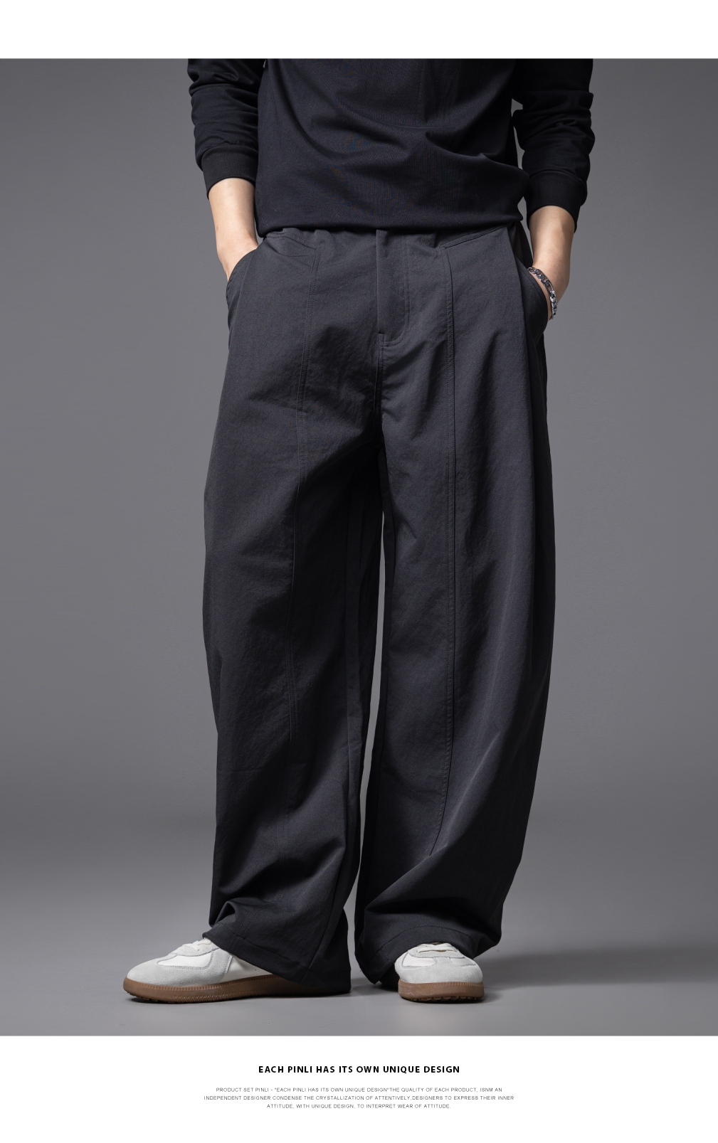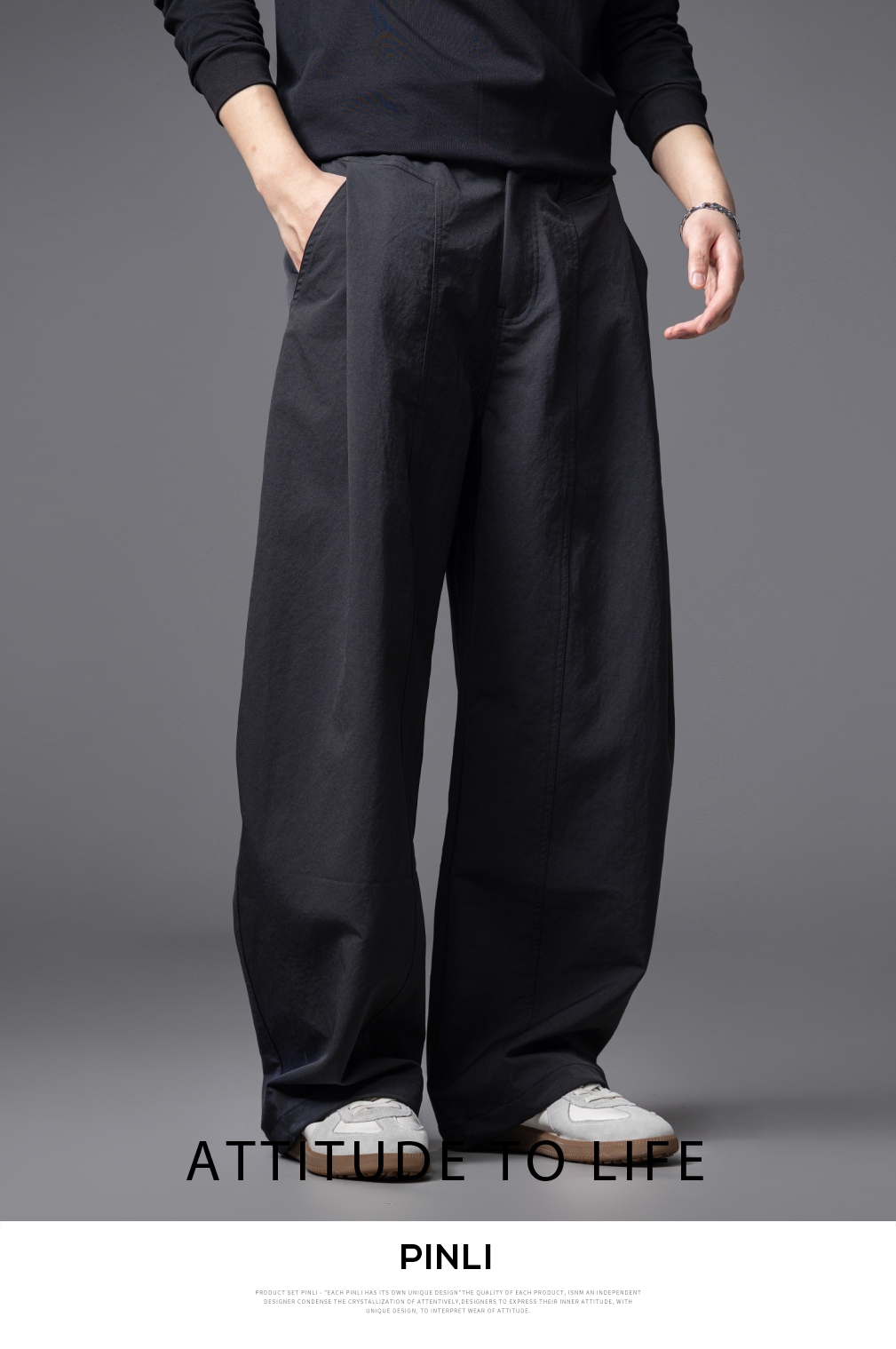 PINLI品立春季新款男士宽松纯色直筒长裤阔腿裤潮GD253117122