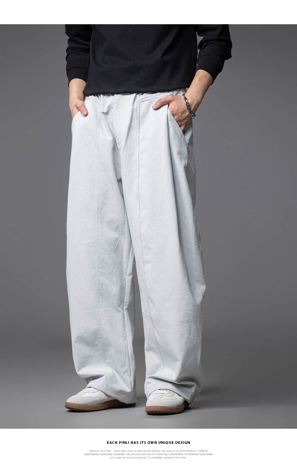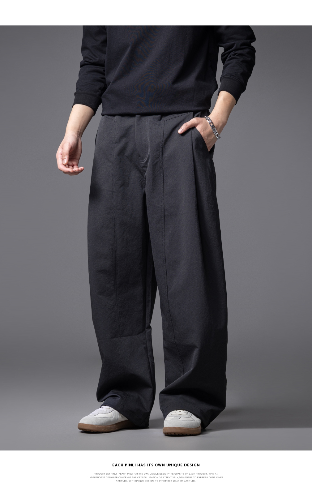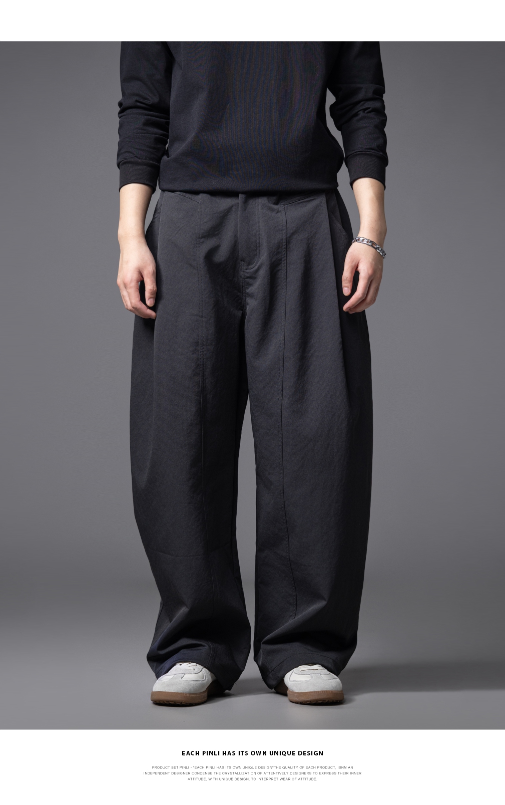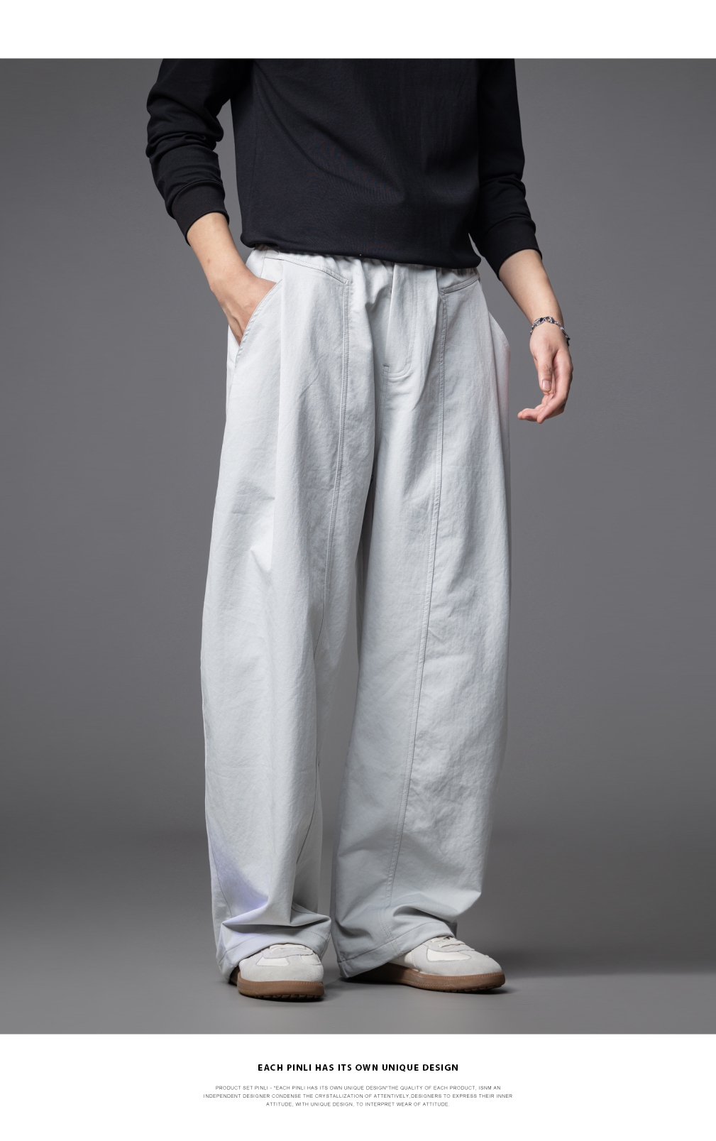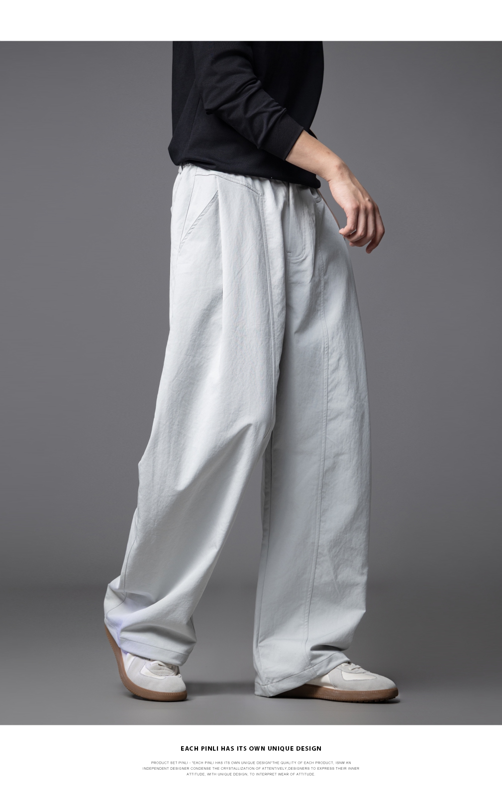 PINLI品立春季新款男士宽松纯色直筒长裤阔腿裤潮GD253117122