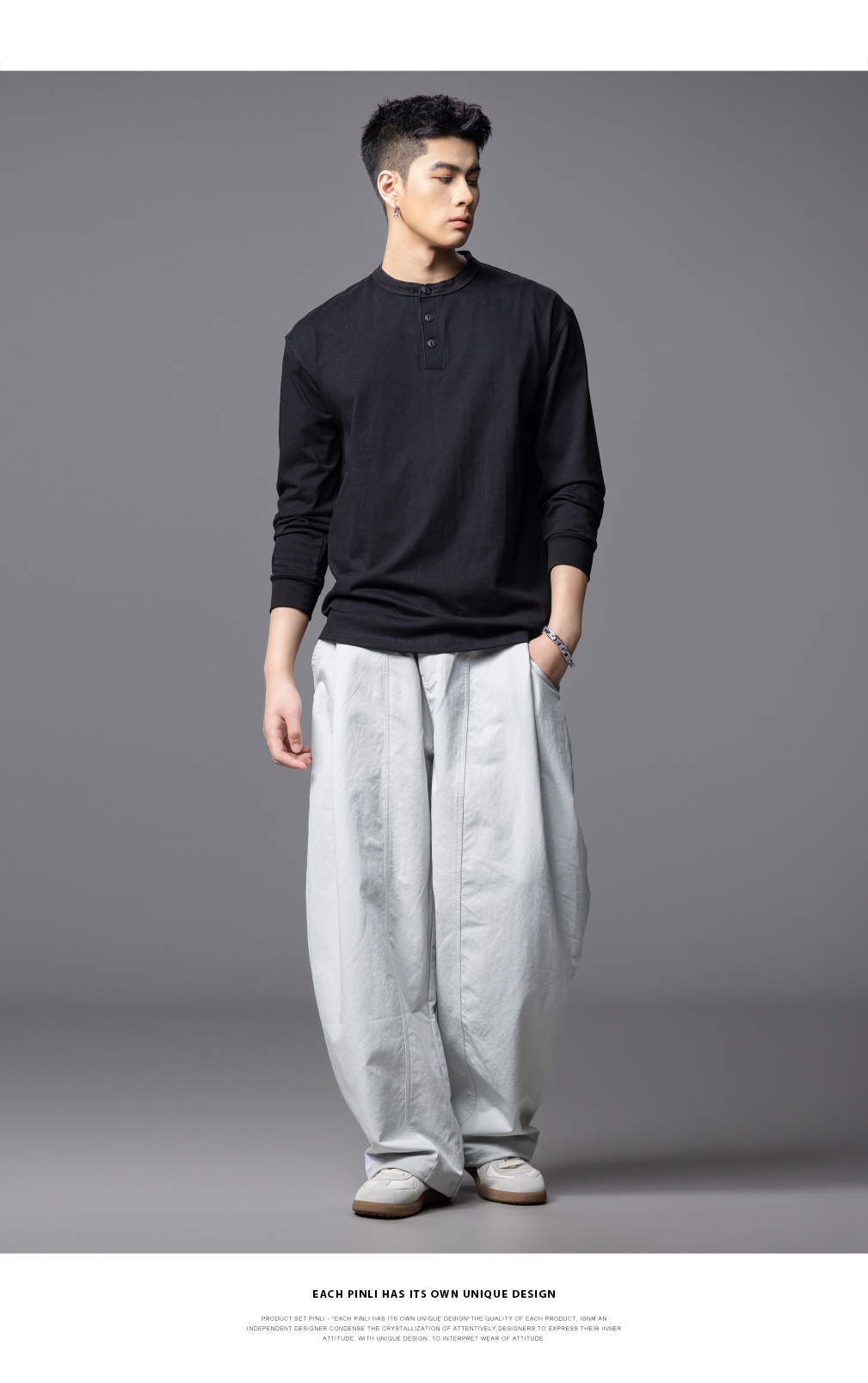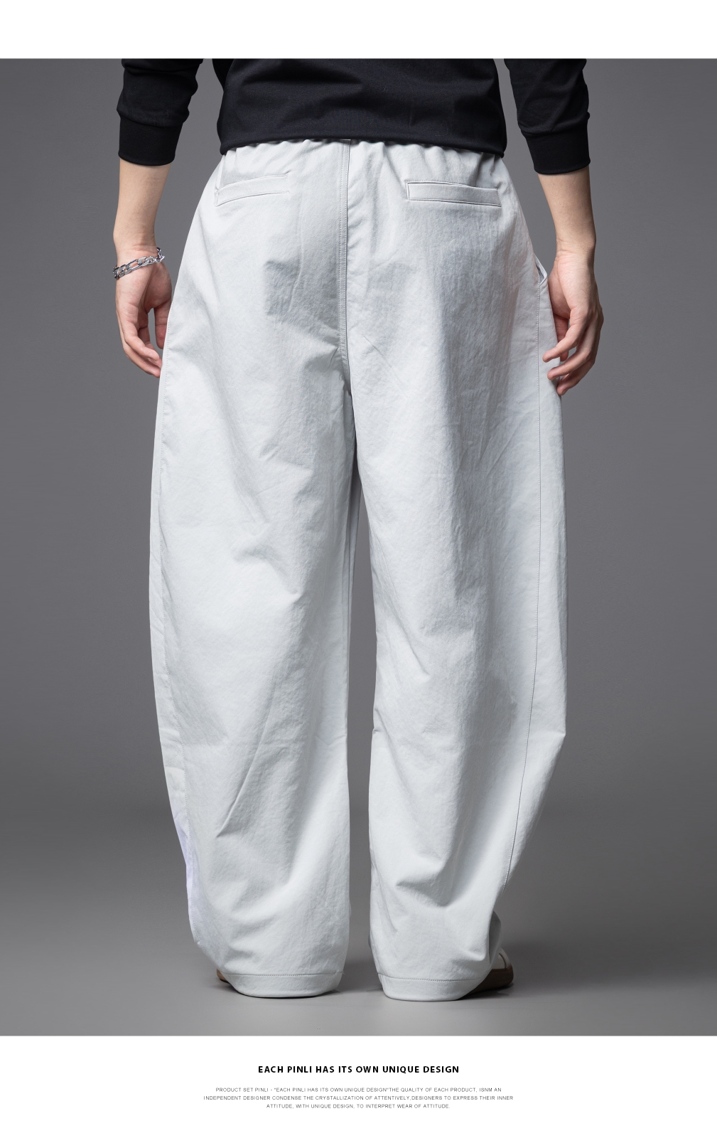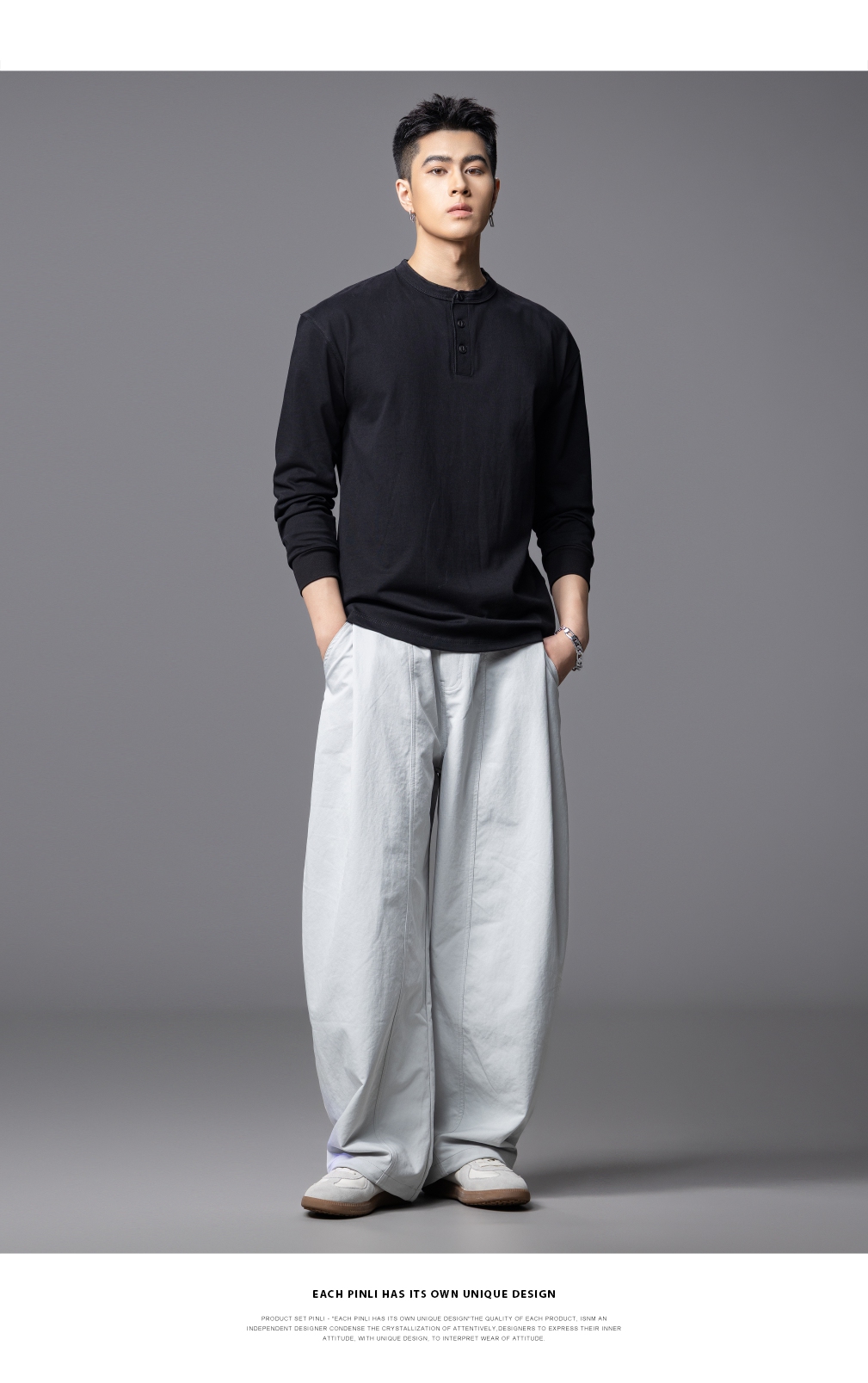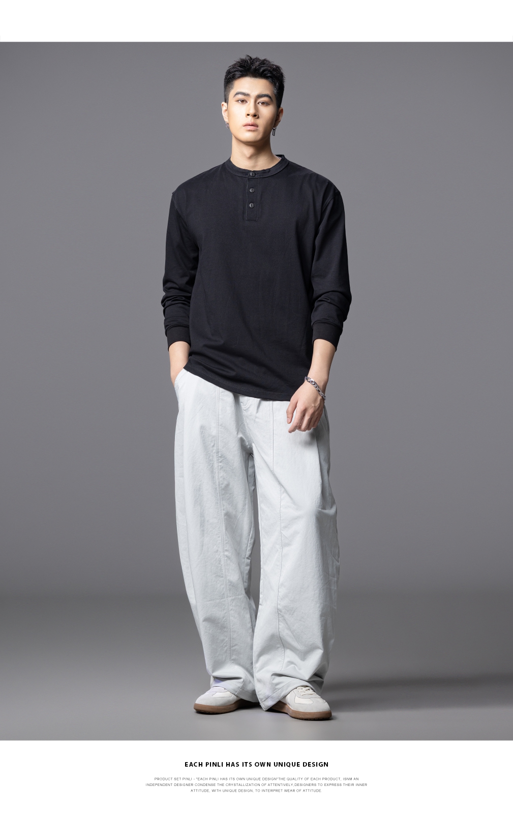 PINLI品立春季新款男士宽松纯色直筒长裤阔腿裤潮GD253117122