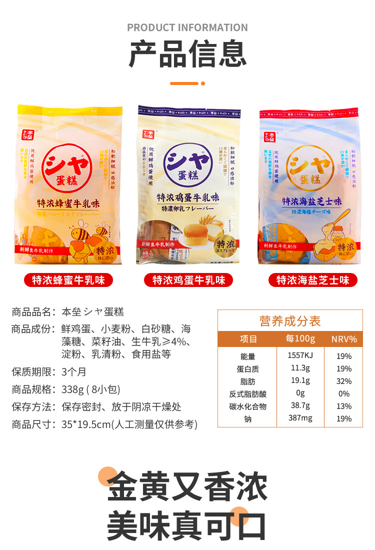 本垒特浓鸡蛋牛乳味蛋糕袋装面包休闲零食338g/袋