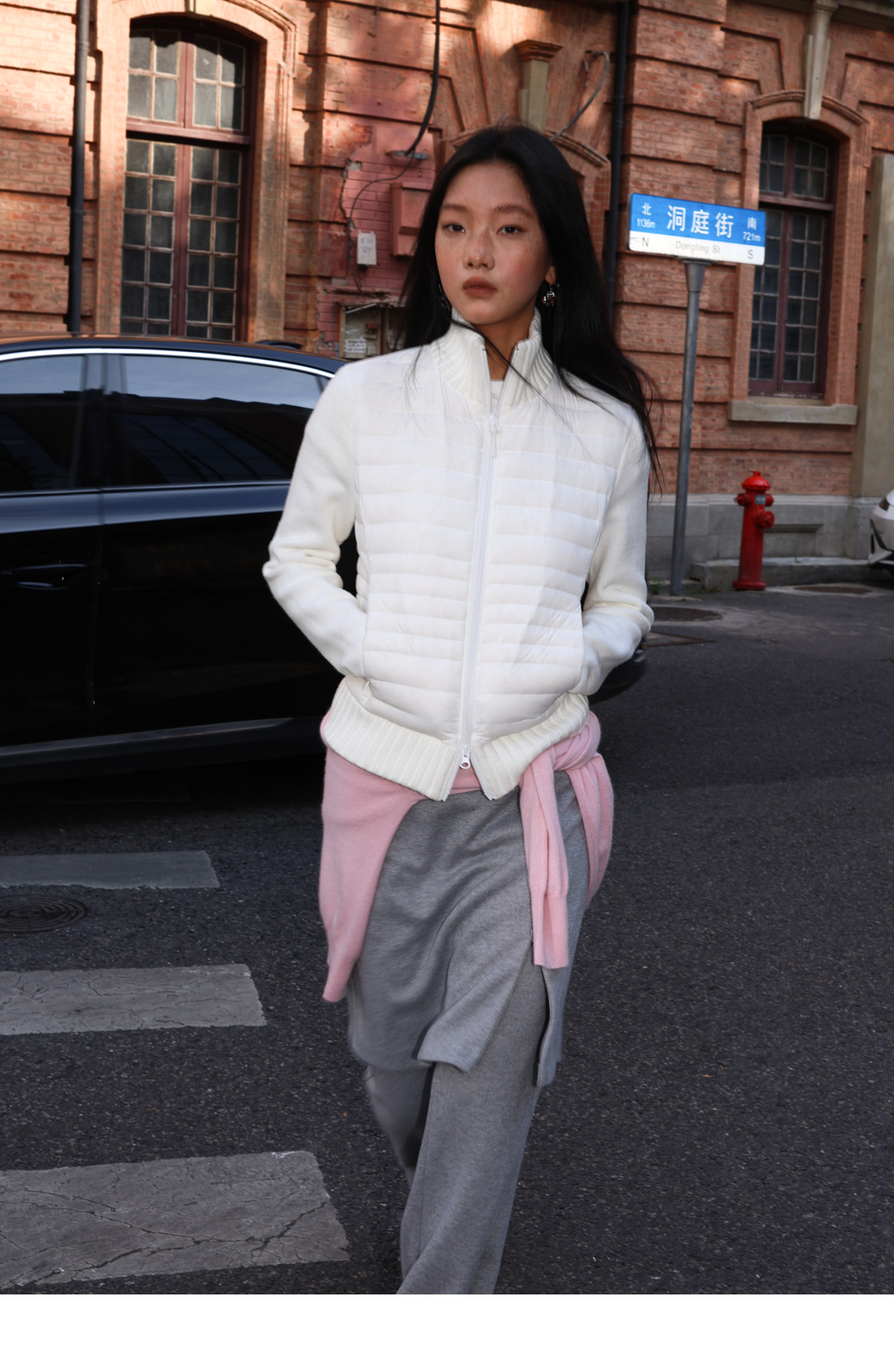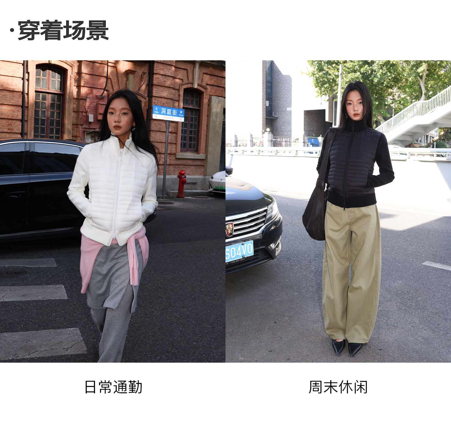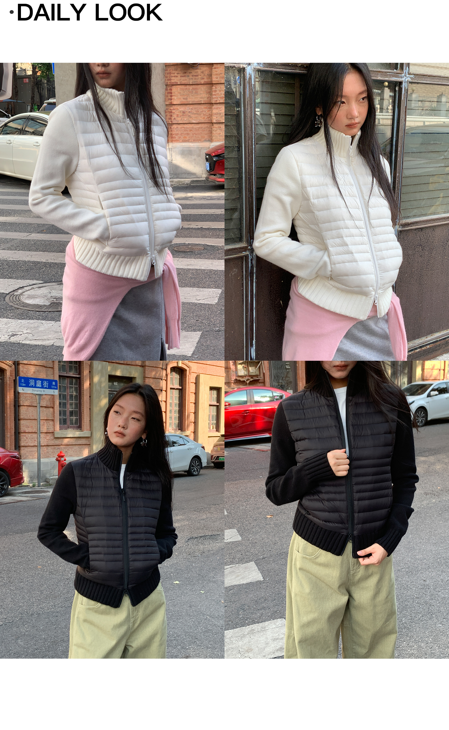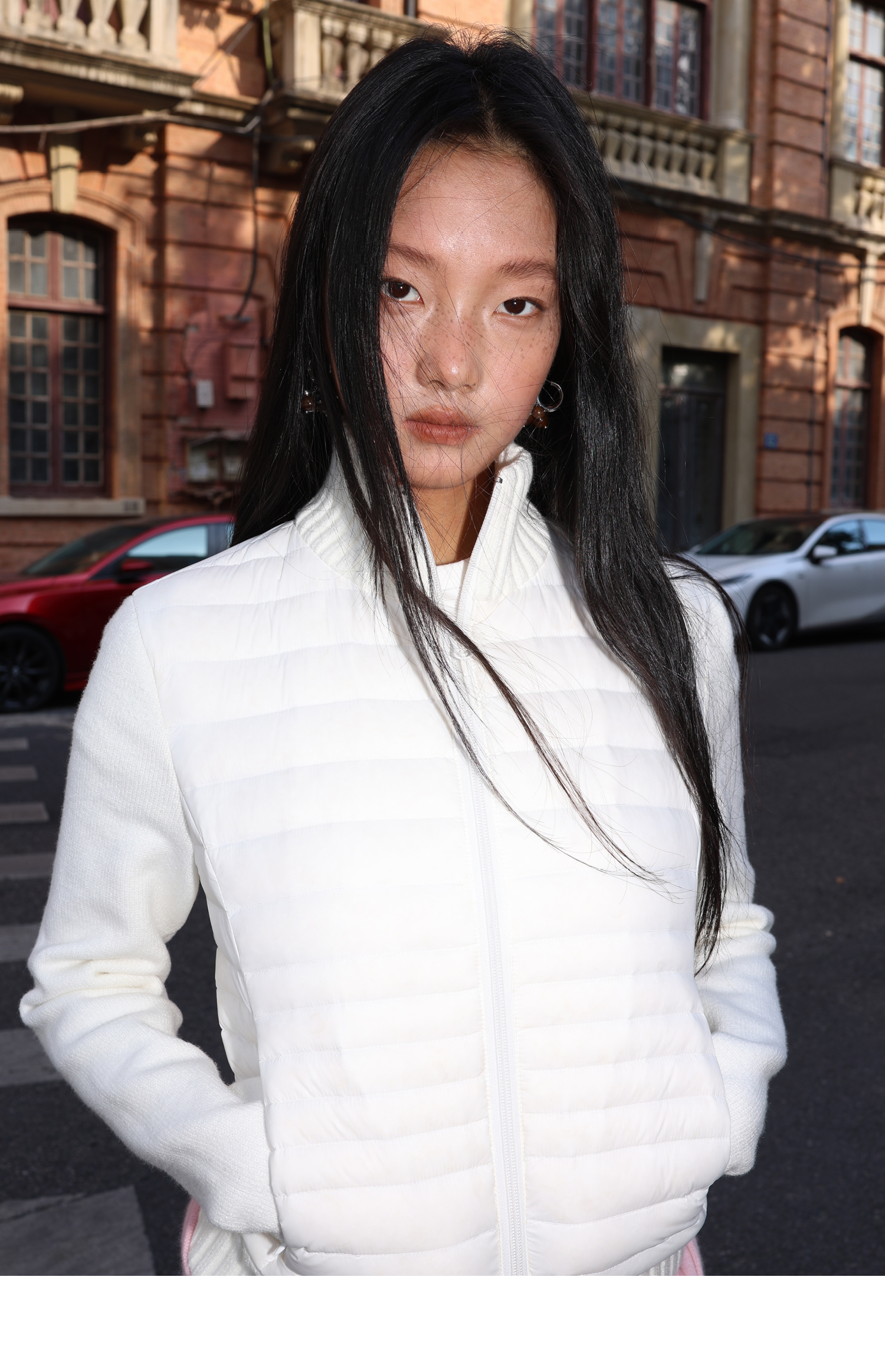 素舶 90白鸭绒保暖防风针织拼接修身显瘦排骨羽绒服短外套