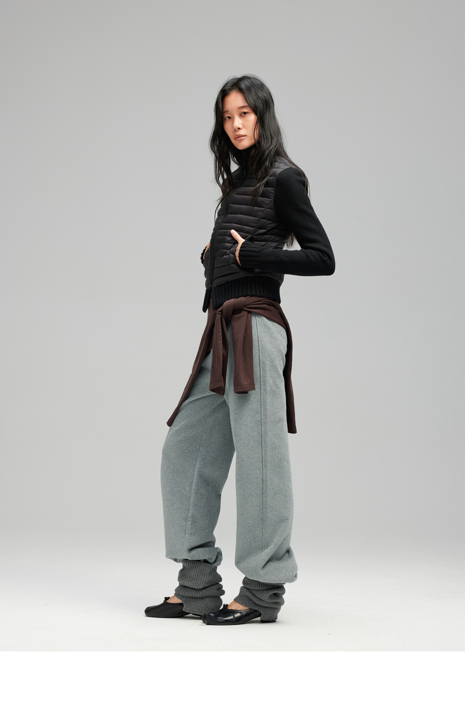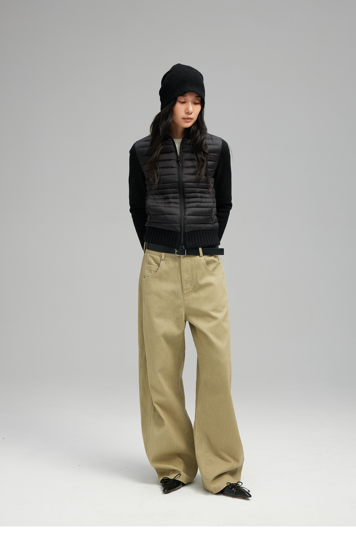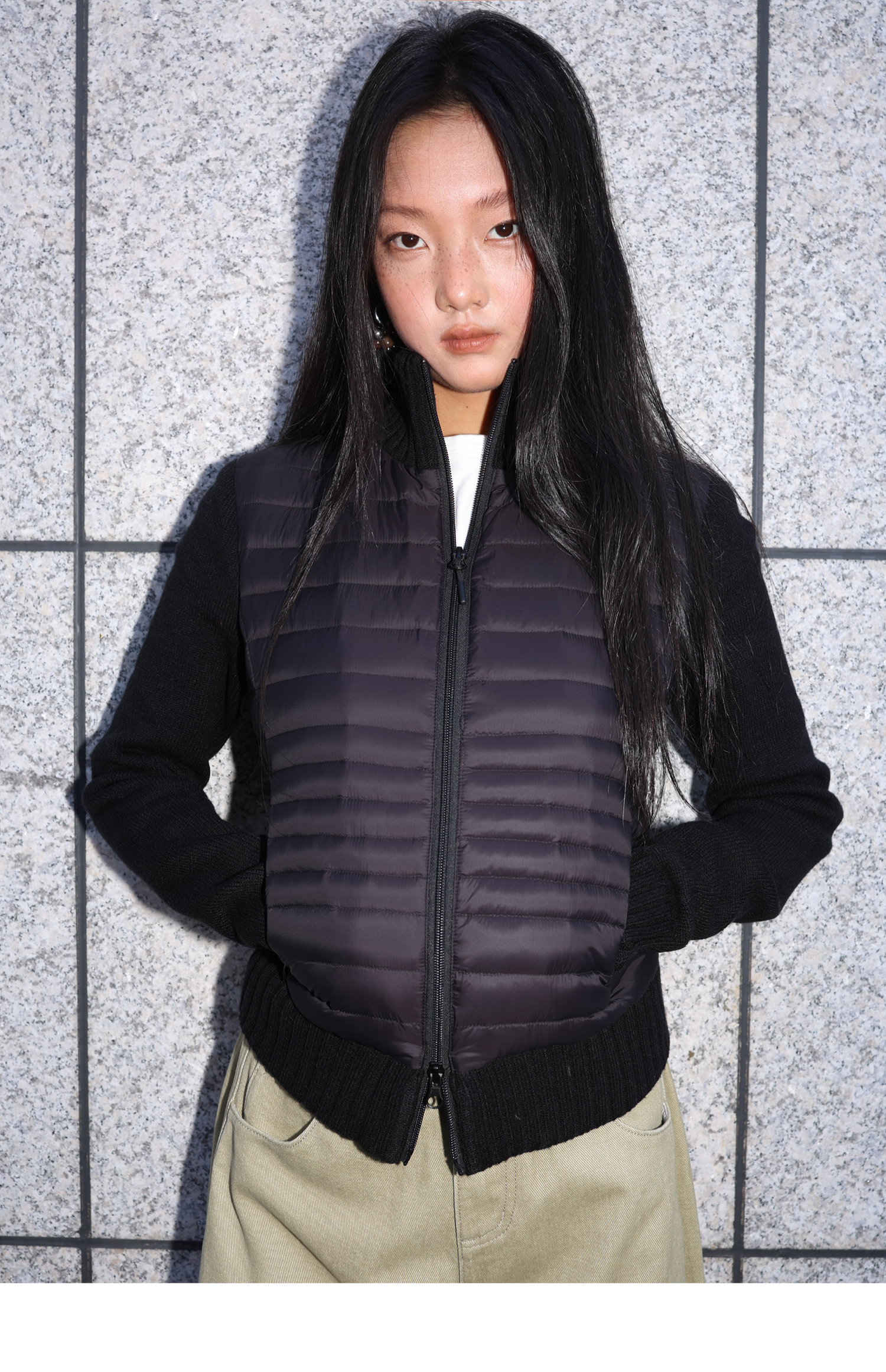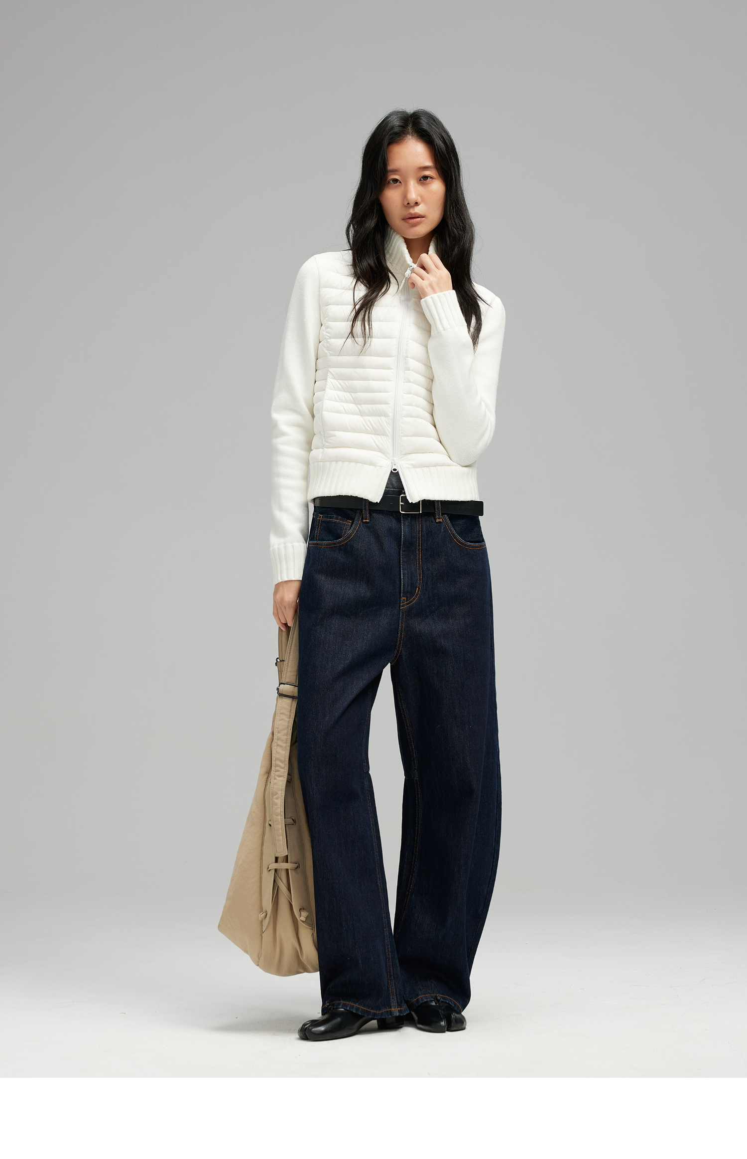素舶 90白鸭绒保暖防风针织拼接修身显瘦排骨羽绒服短外套