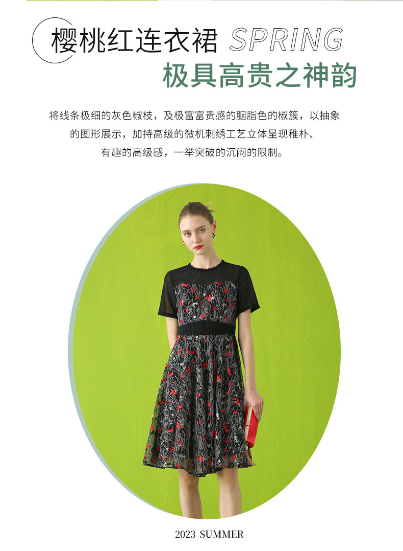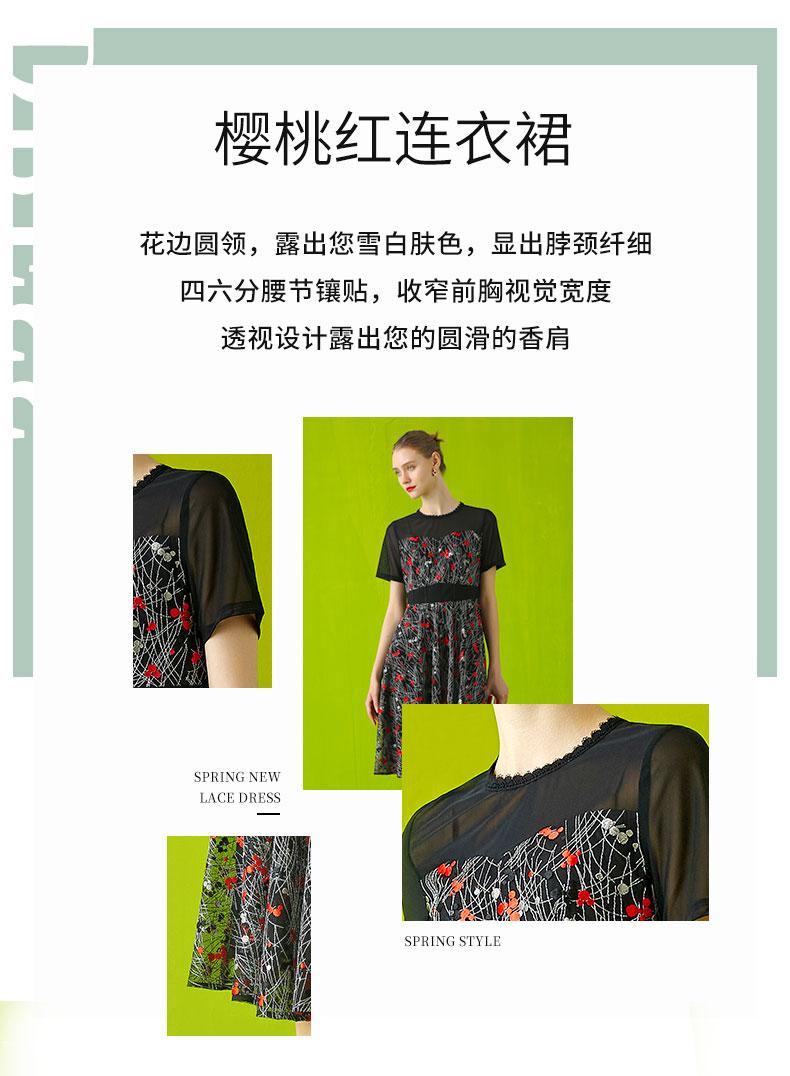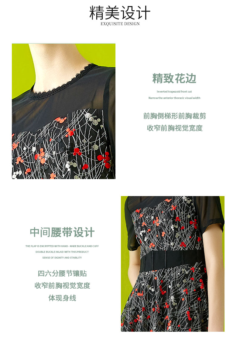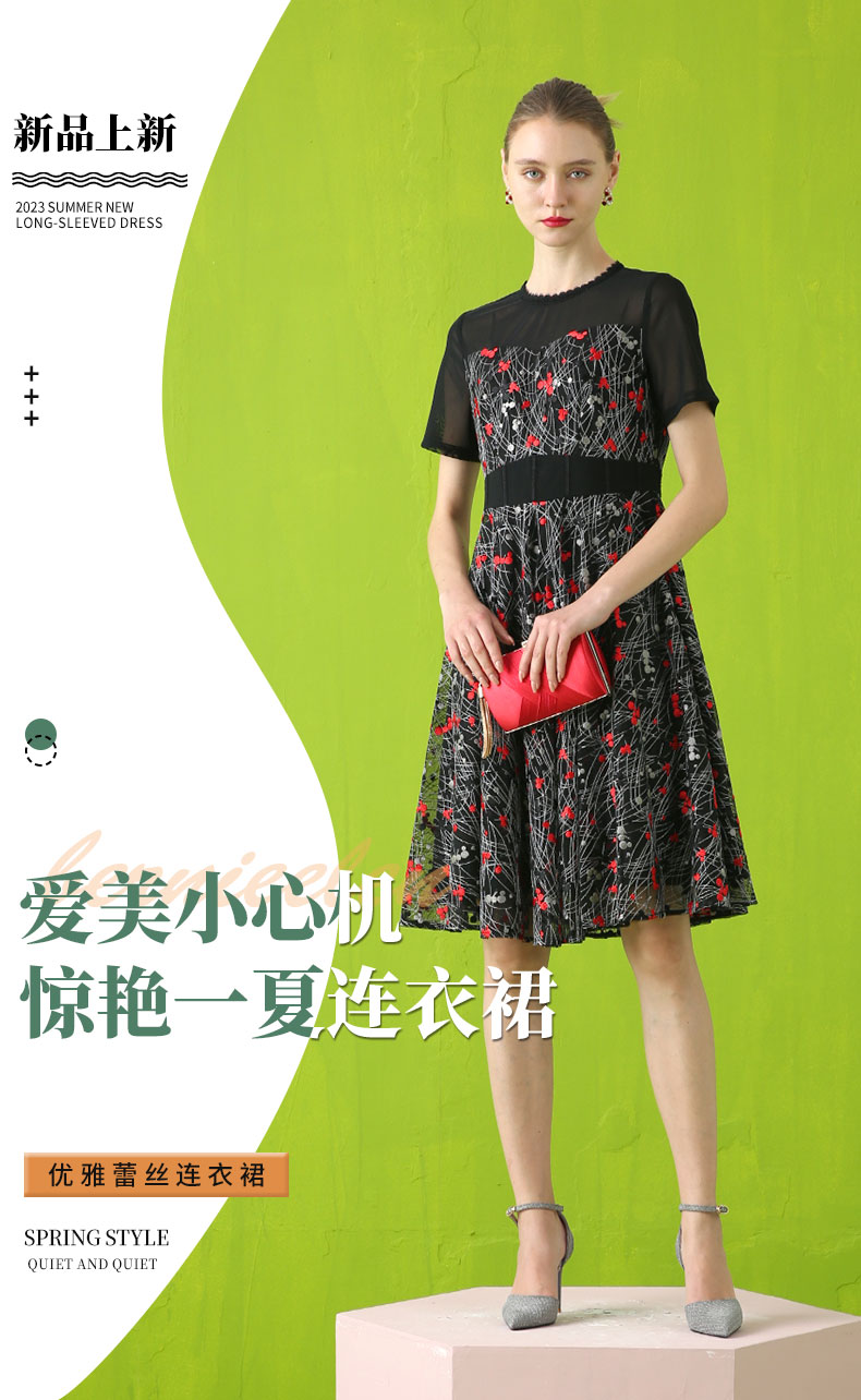 【伯妮斯茵】领袖半透网纱绣花短袖连衣裙 2S5187