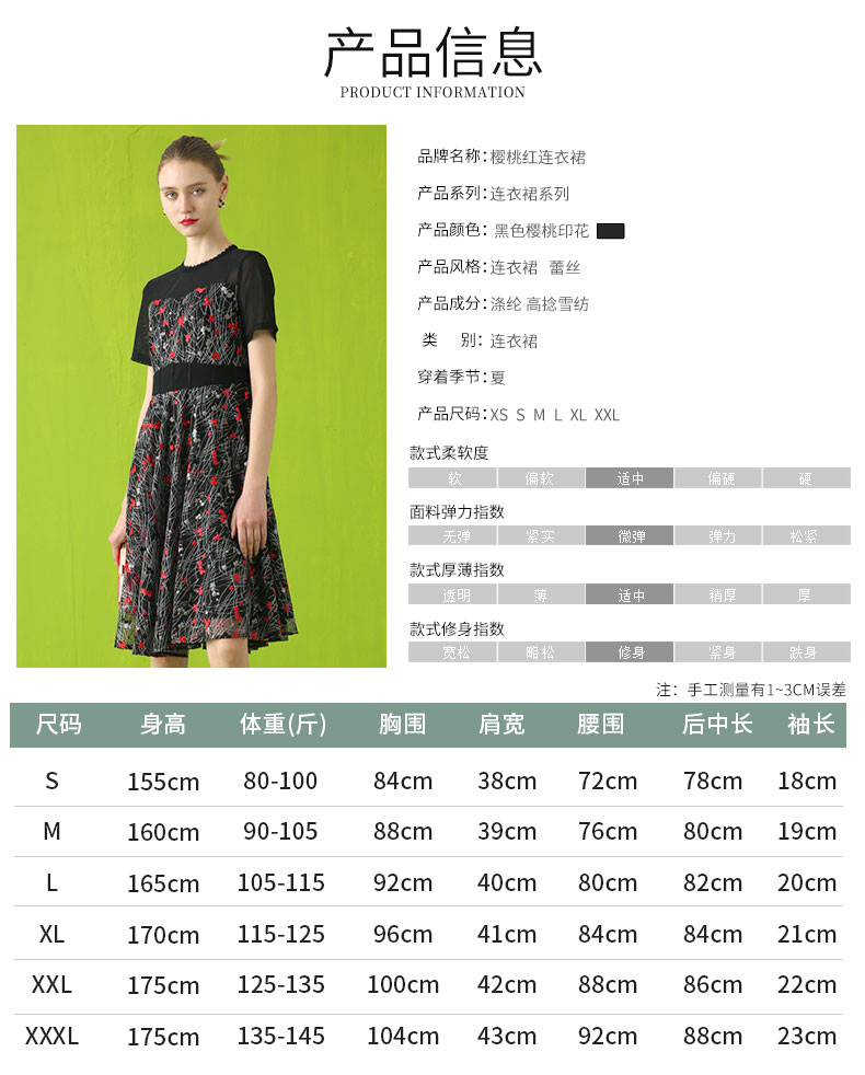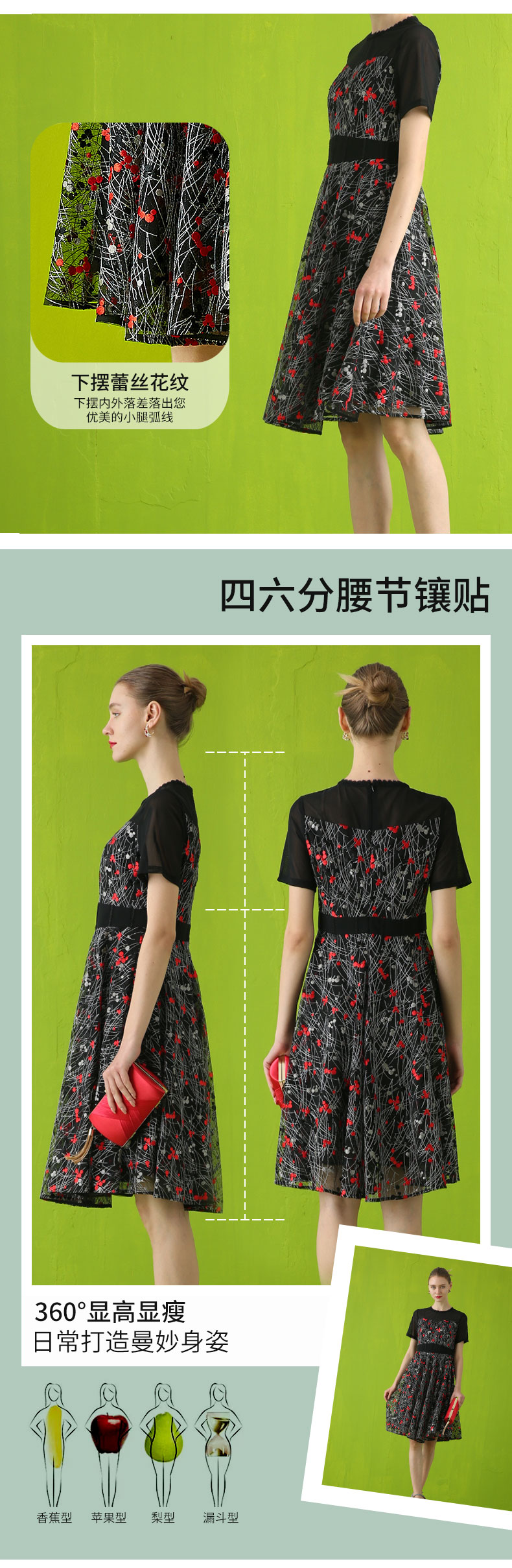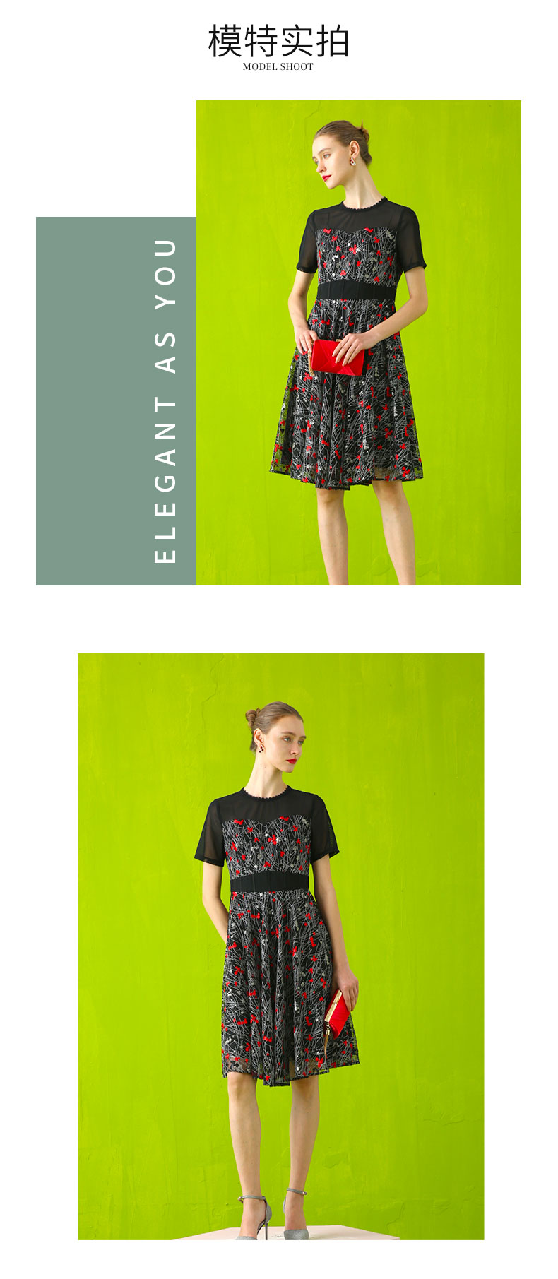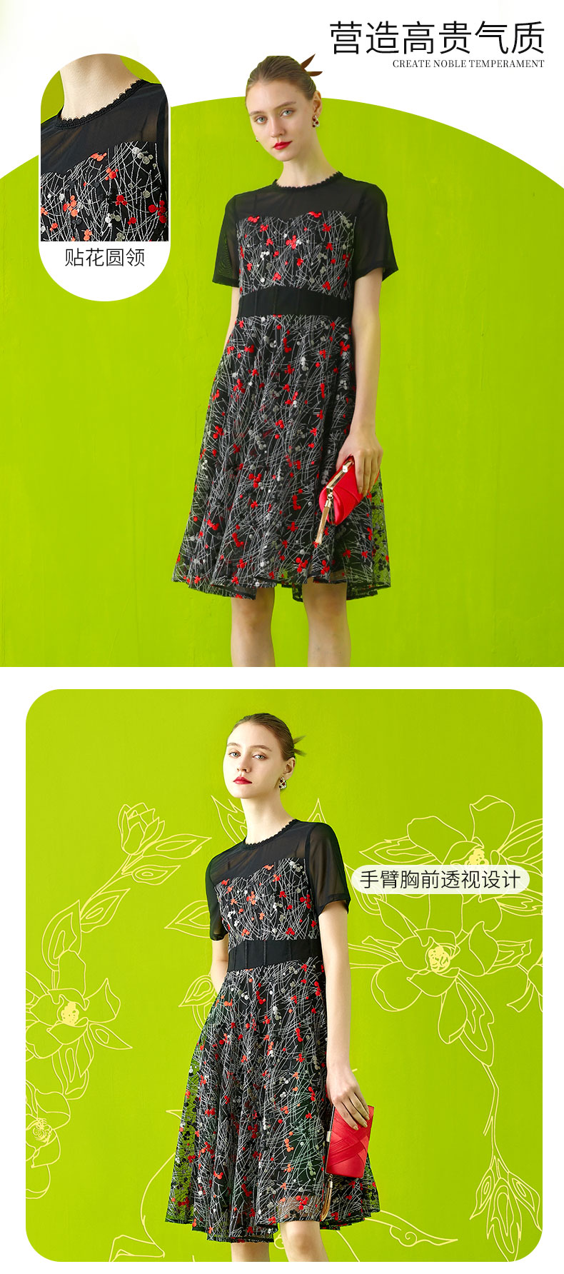 【伯妮斯茵】领袖半透网纱绣花短袖连衣裙 2S5187