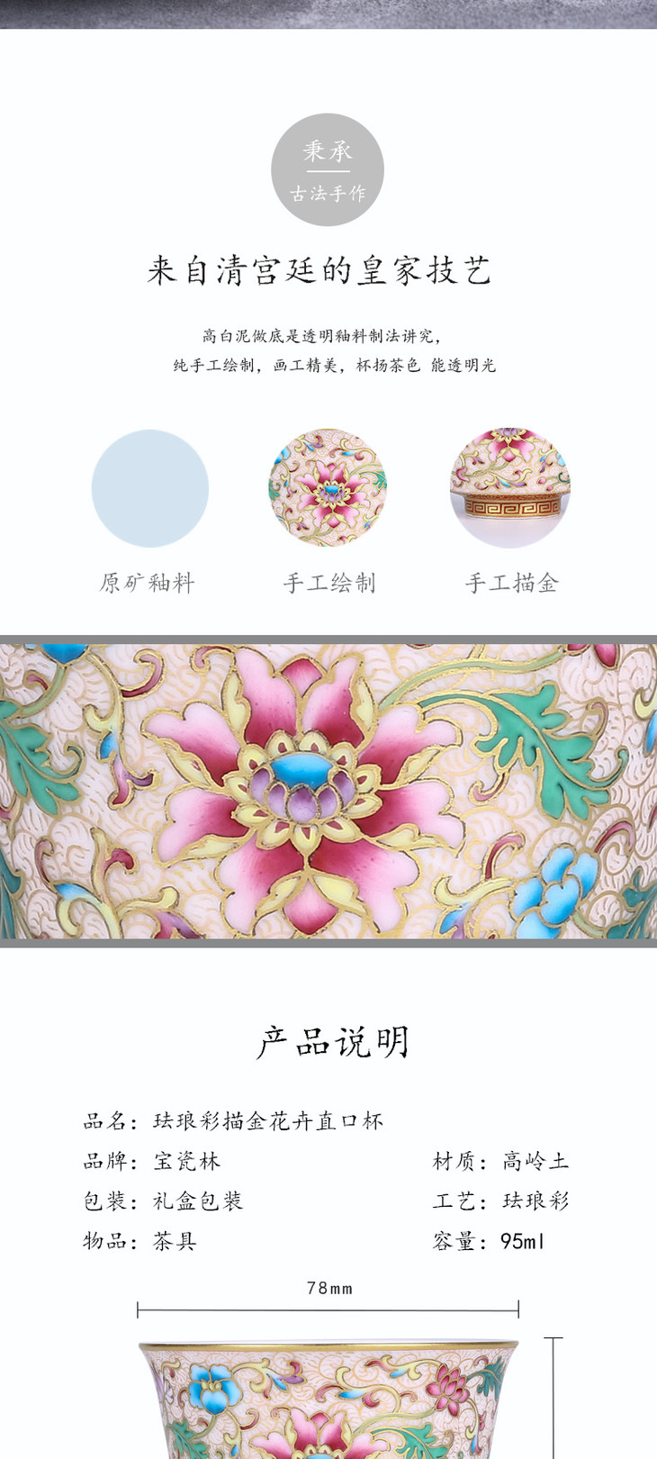 宝瓷林珐琅彩描金花卉直口杯