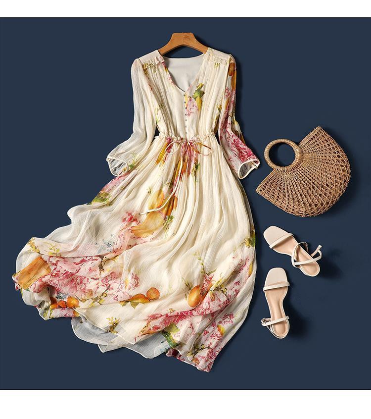 美醉一万年聘婷婀娜曼妙曲线连衣裙女夏季气质仿真丝超仙连衣裙