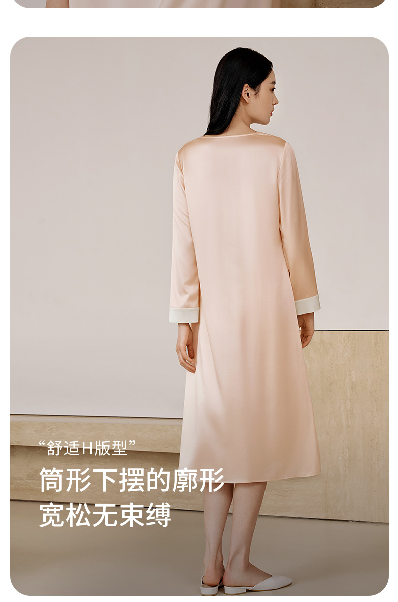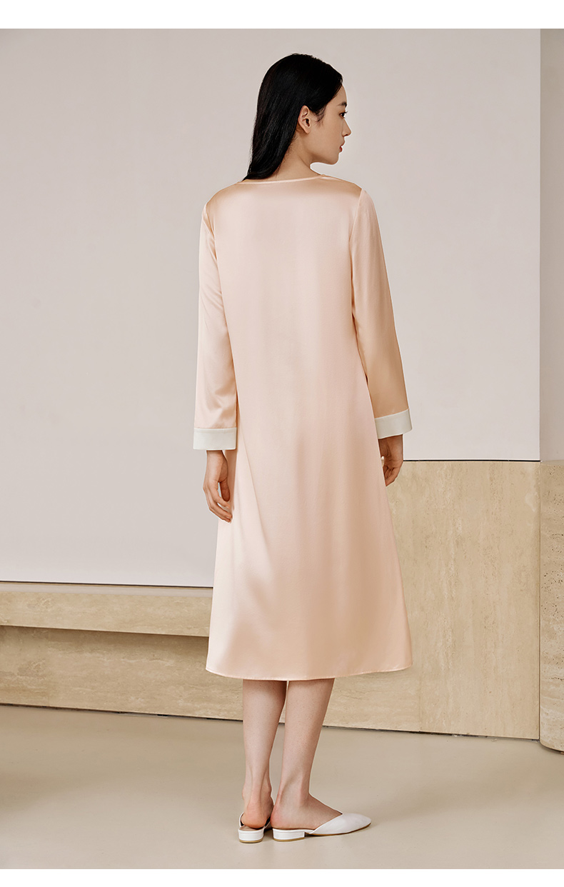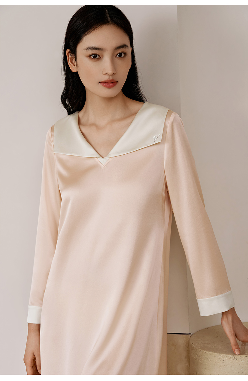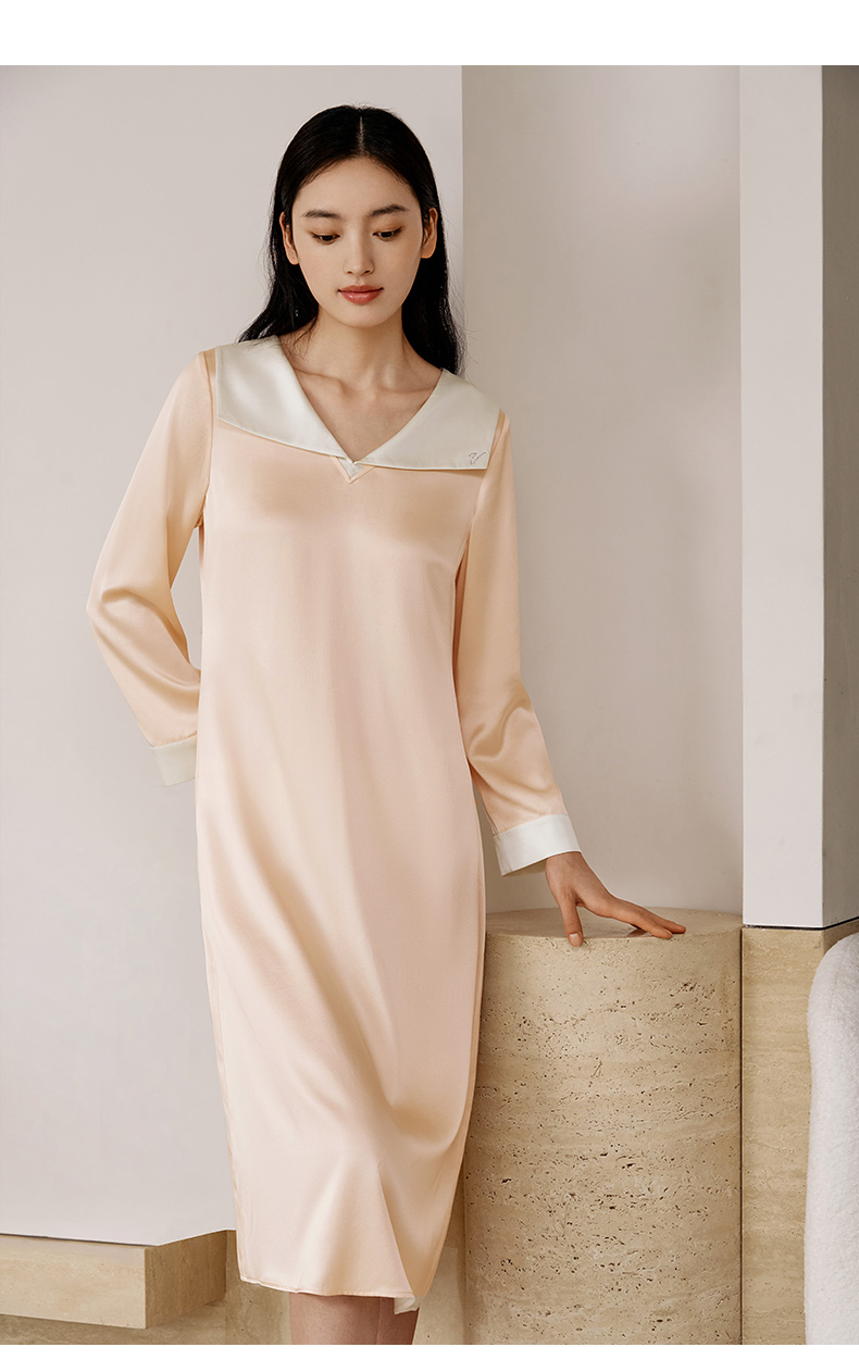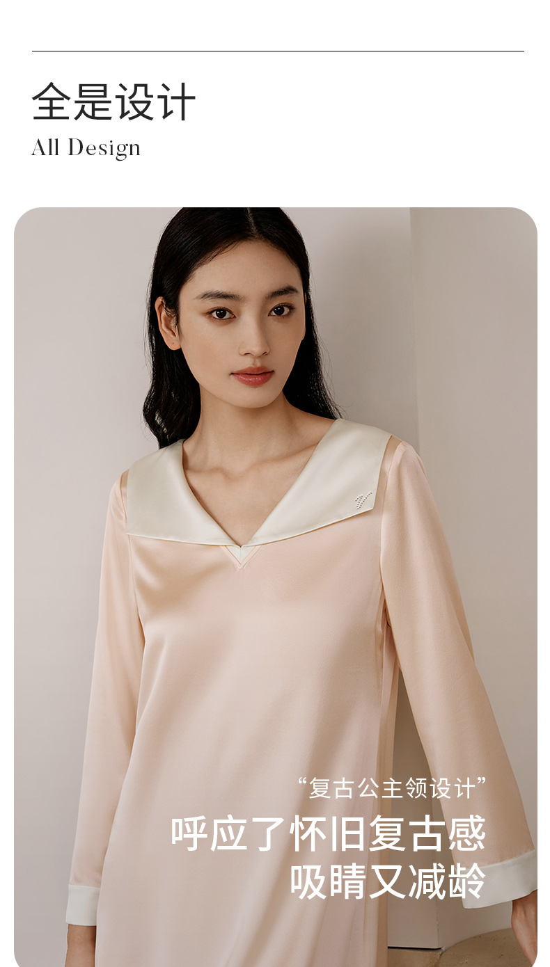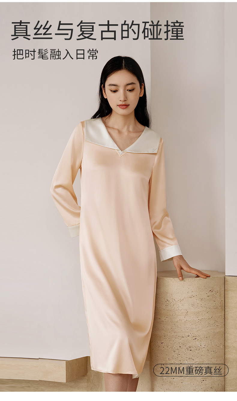 金三塔重磅22姆米真丝睡裙复古公主领轻奢长袖100%桑蚕丝家居服女 YSFEC303