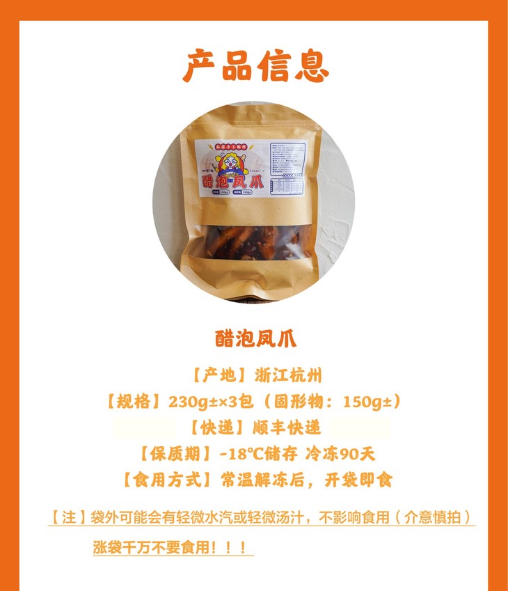 *2月10日-20日快递停发*饥饿F姐·醋泡凤爪(230g±*3包)江浙沪皖包邮
