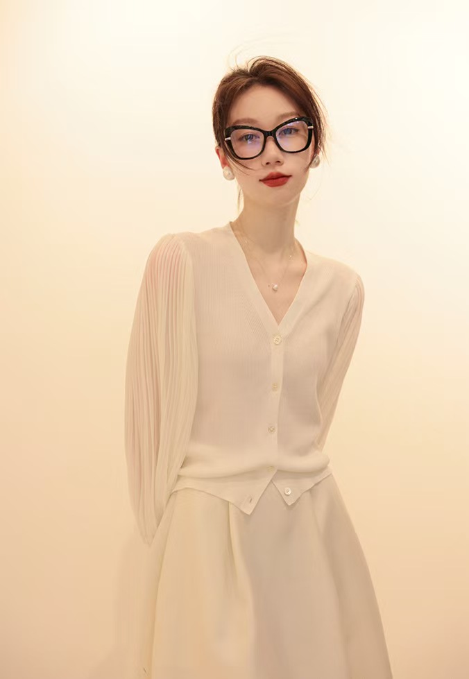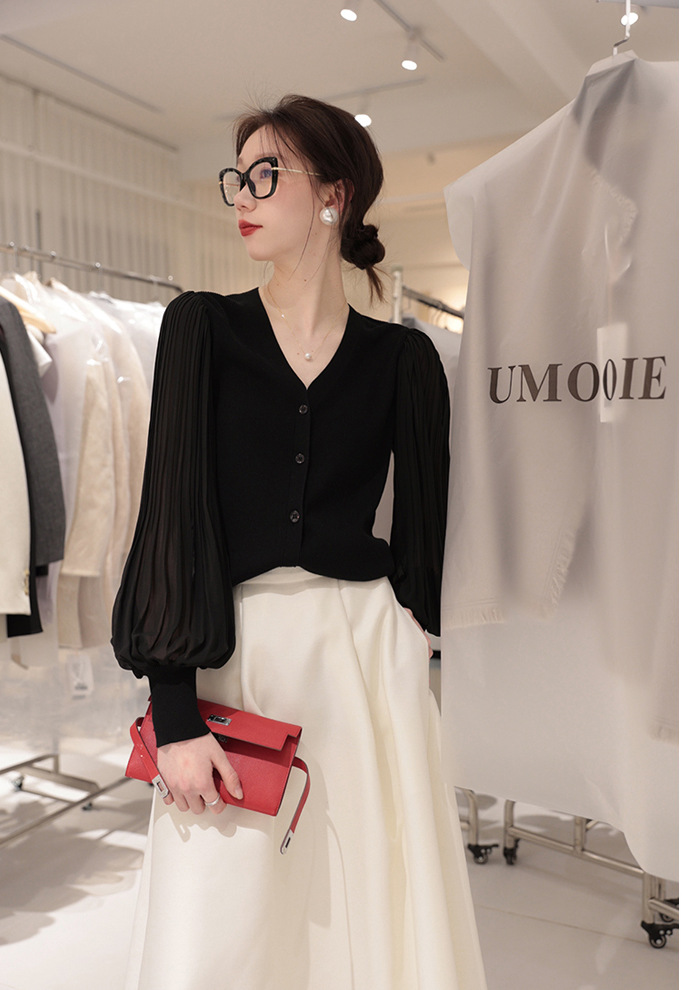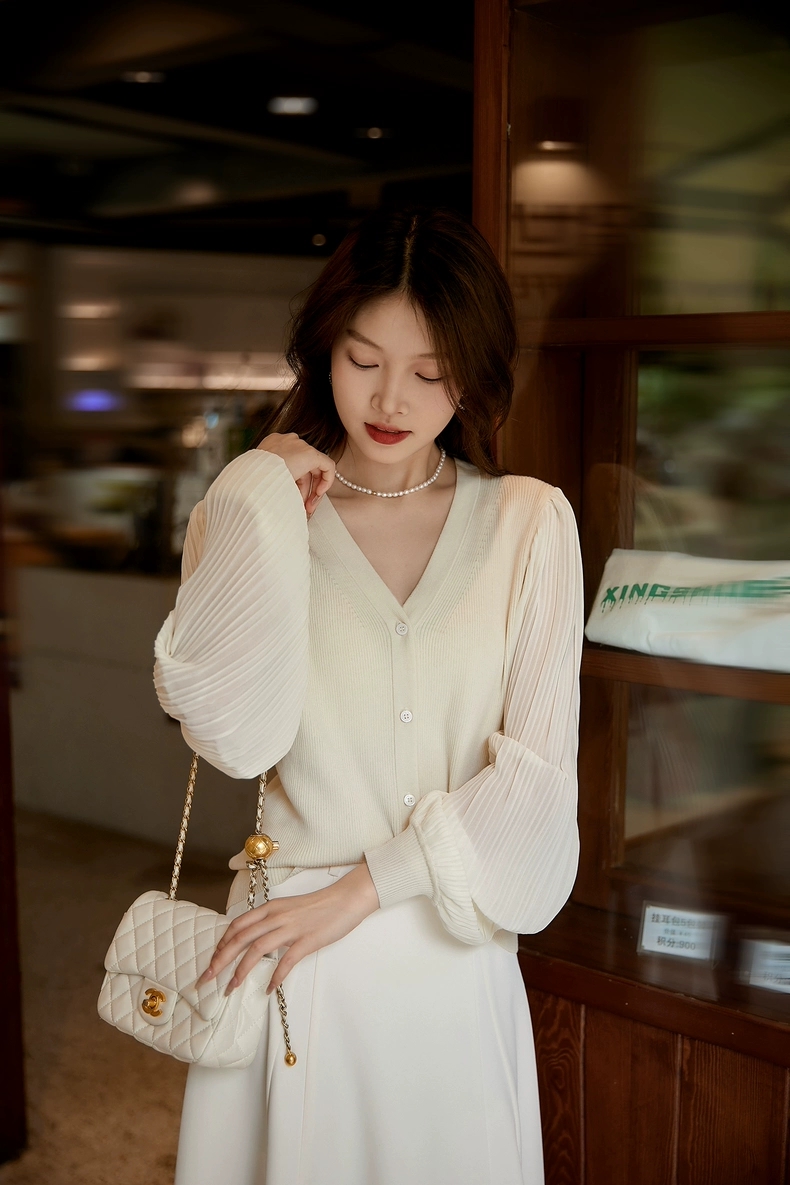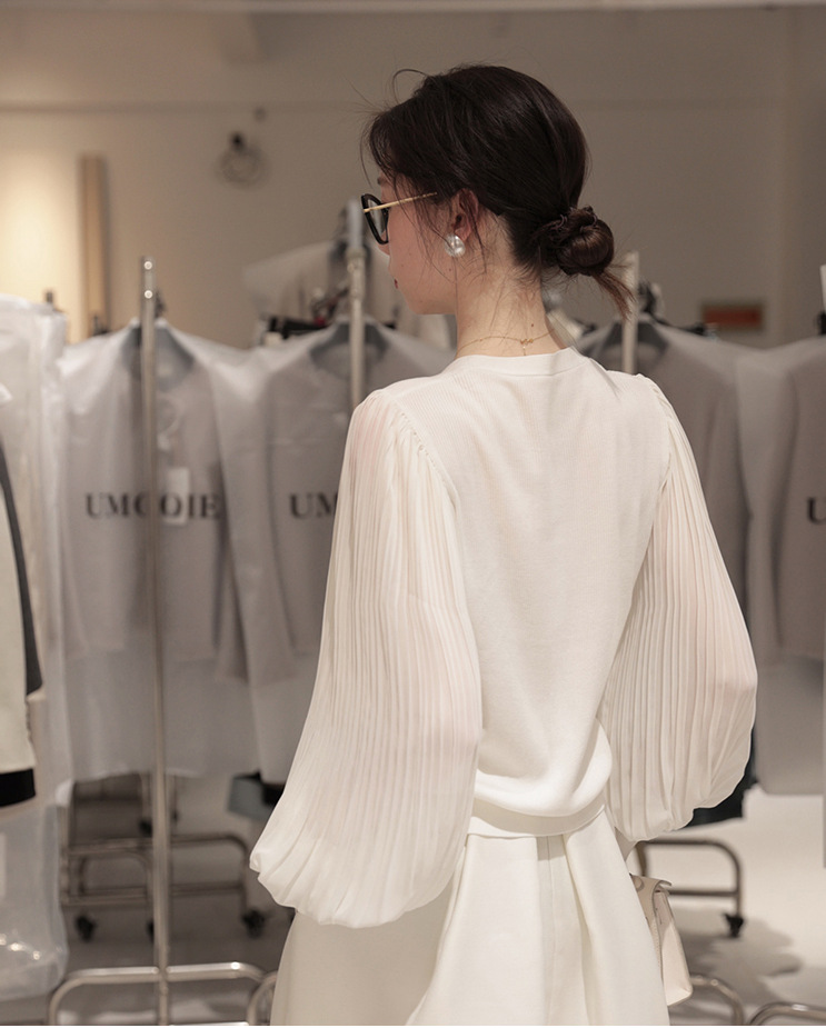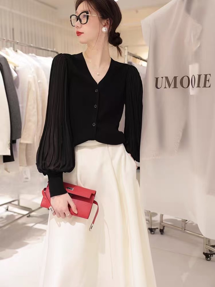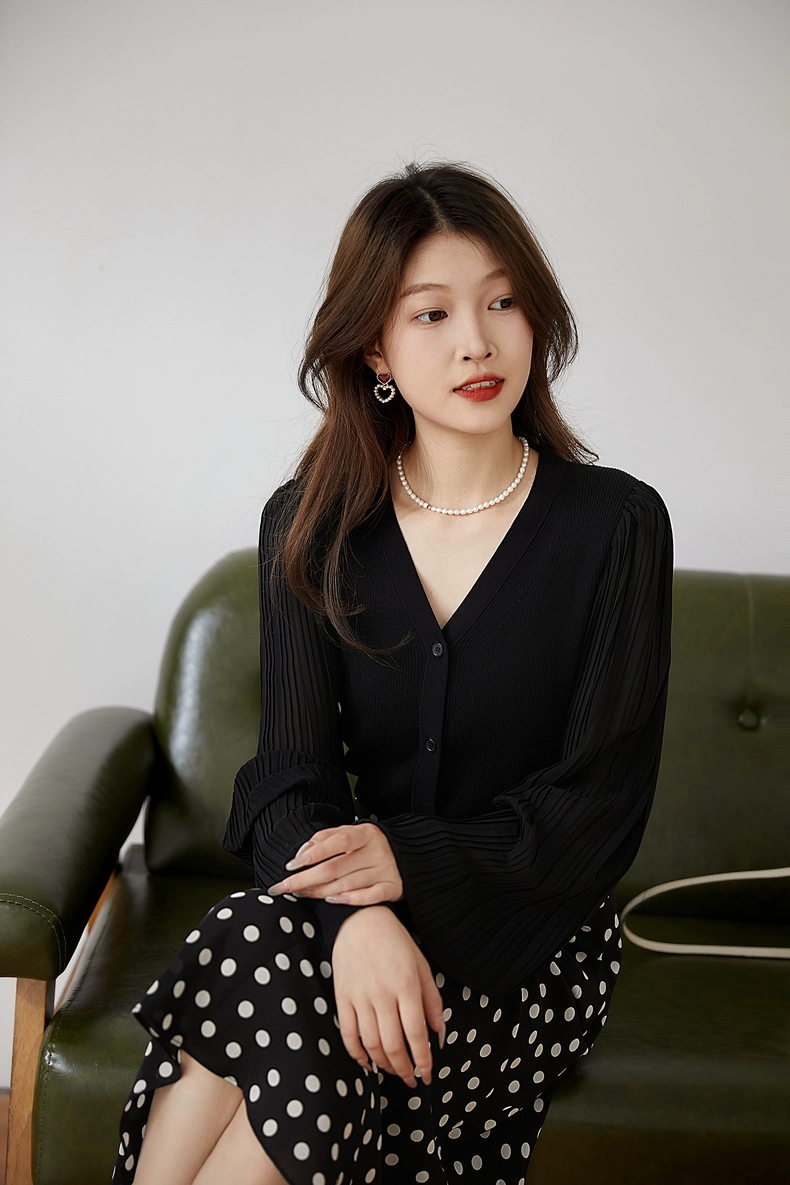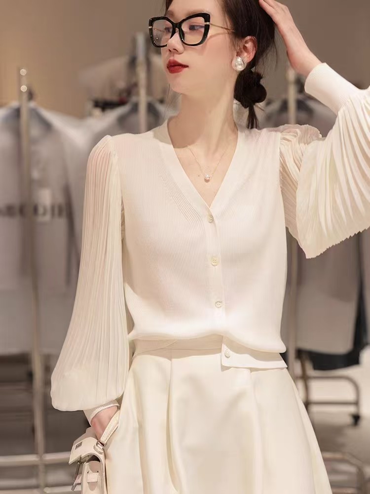 肌肤告诉你想要的舒适和品质,天丝莱赛尔混纺,V领+百褶灯笼垂坠袖彰显女性的风姿更添一份俊秀~