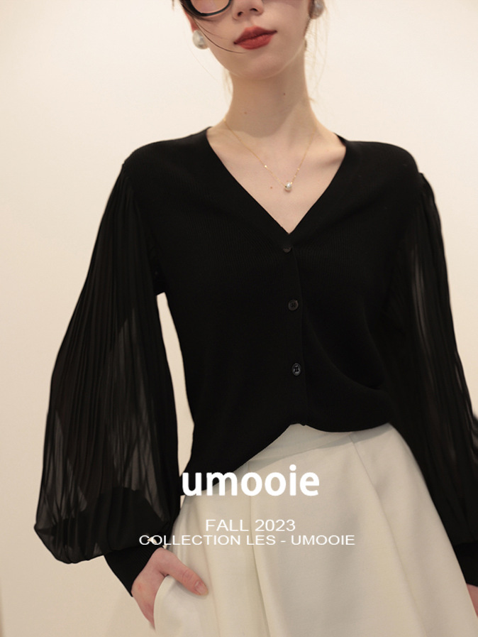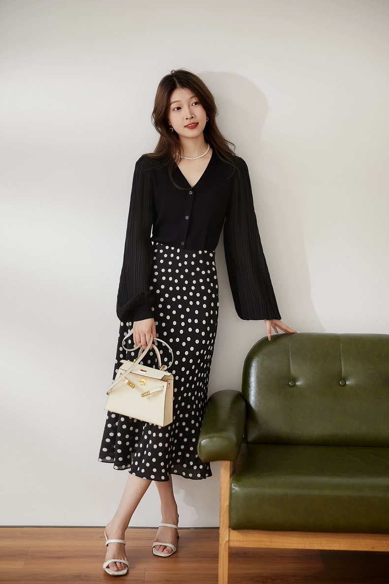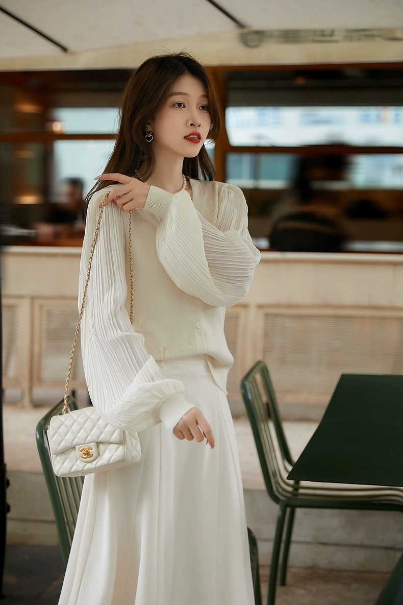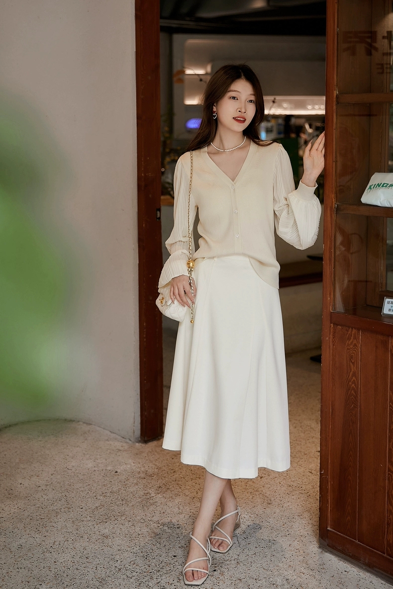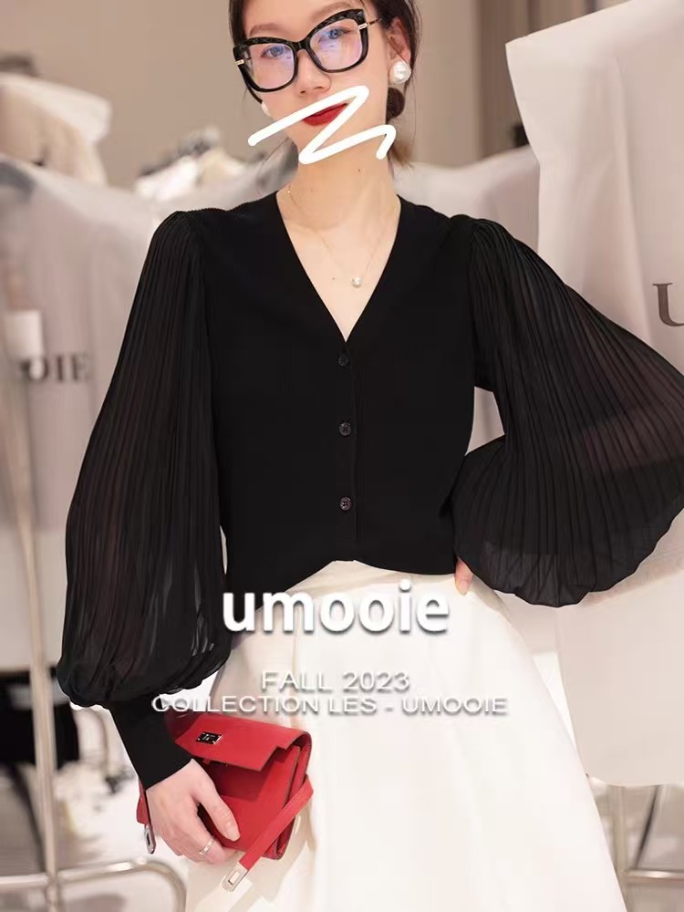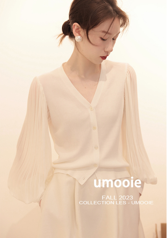 肌肤告诉你想要的舒适和品质,天丝莱赛尔混纺,V领+百褶灯笼垂坠袖彰显女性的风姿更添一份俊秀~