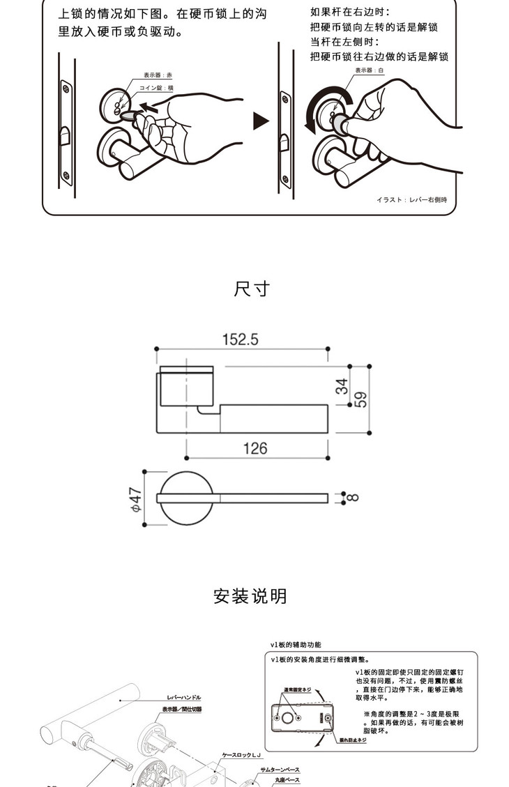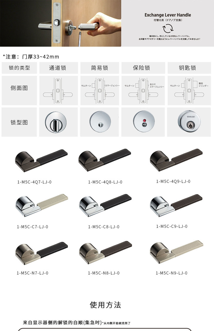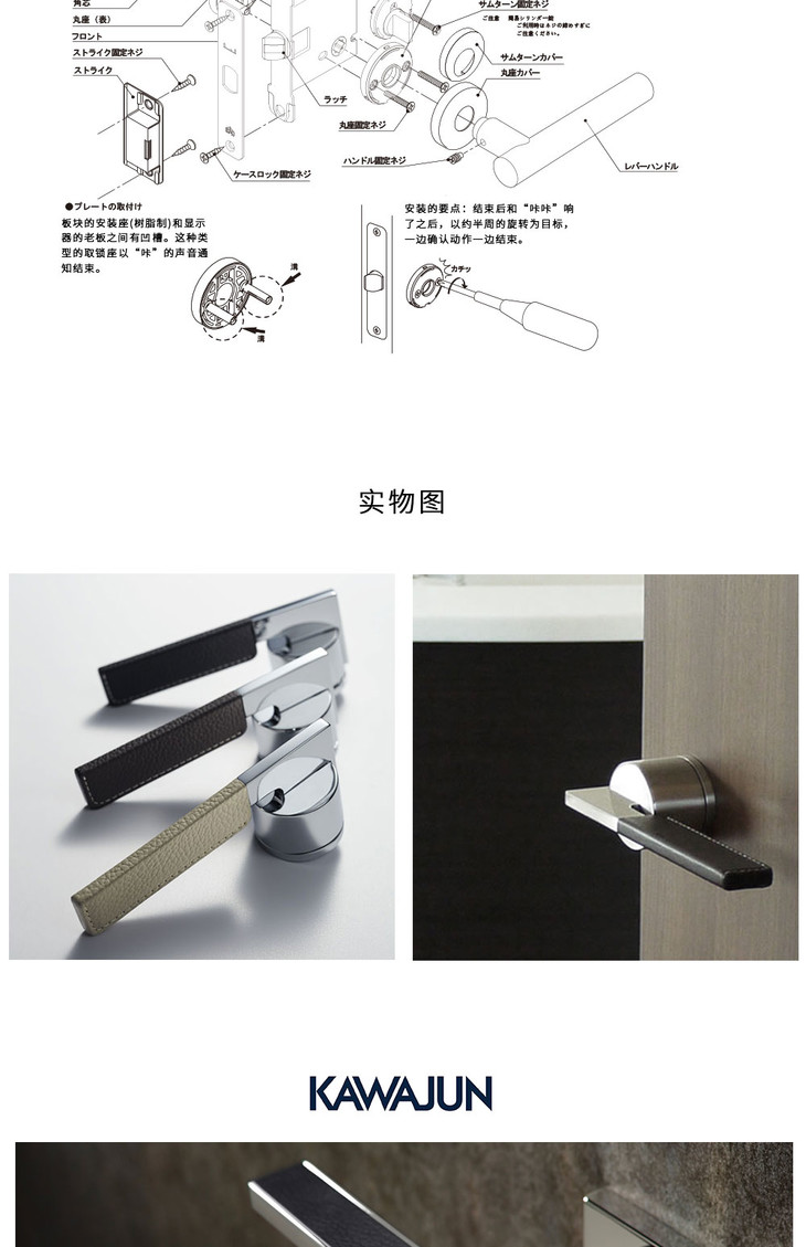日本原装进口河淳KAWAJUN锌合金皮革简易门把手保险锁