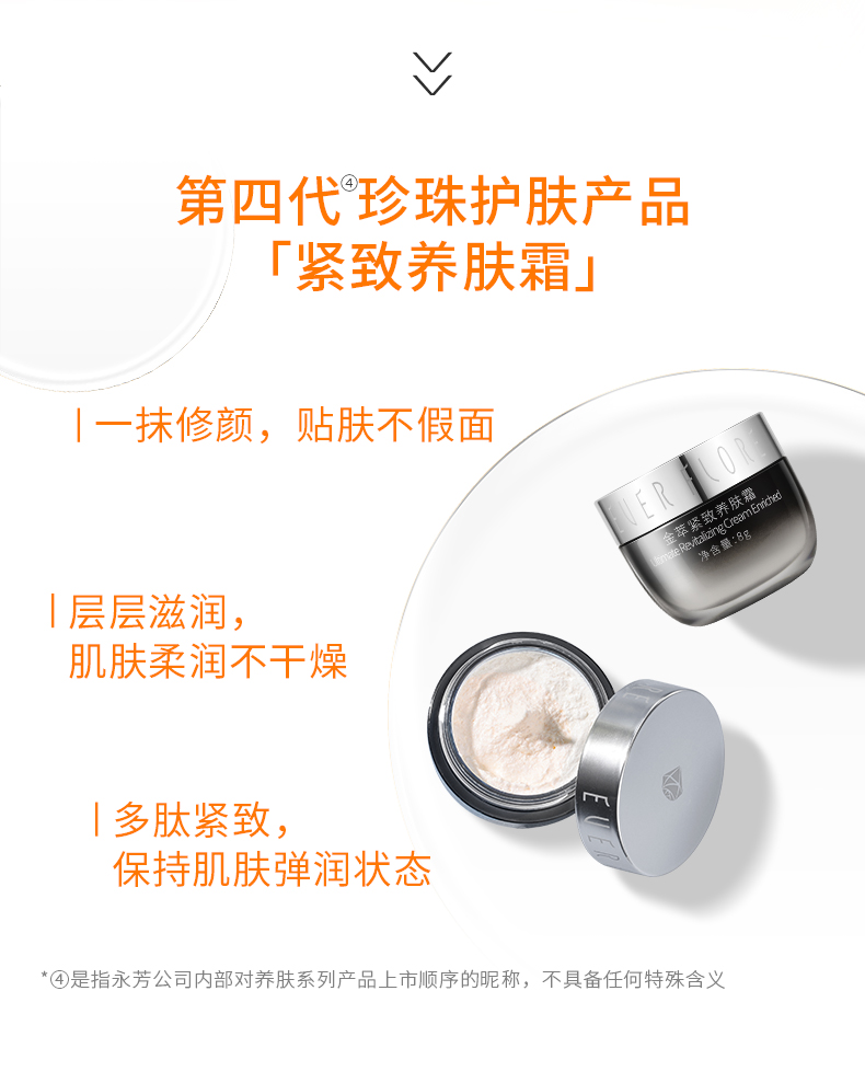 这款金萃紧致养肤霜,已经是永芳出的第4代珍珠旗舰产品了。