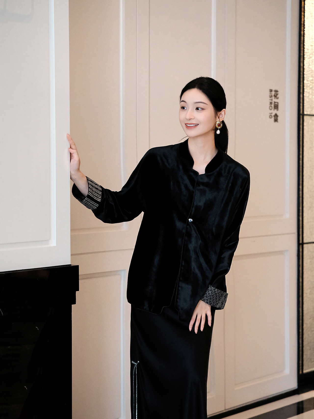 盛唐牡丹 |限量款真丝丝绒拼接漳绒一粒扣外套 (漳绒袖口各色)