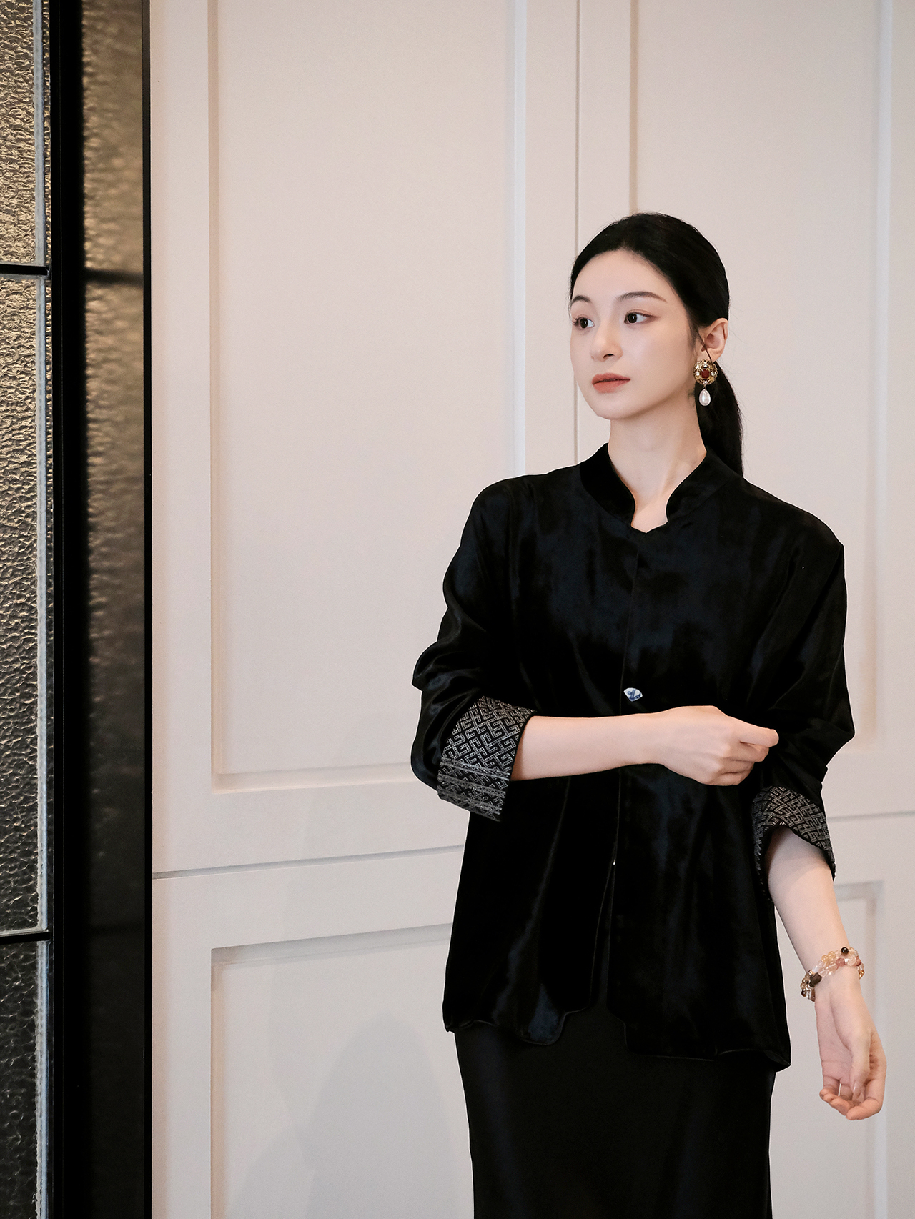 盛唐牡丹 | 丝绒拼锡绣袖口外套