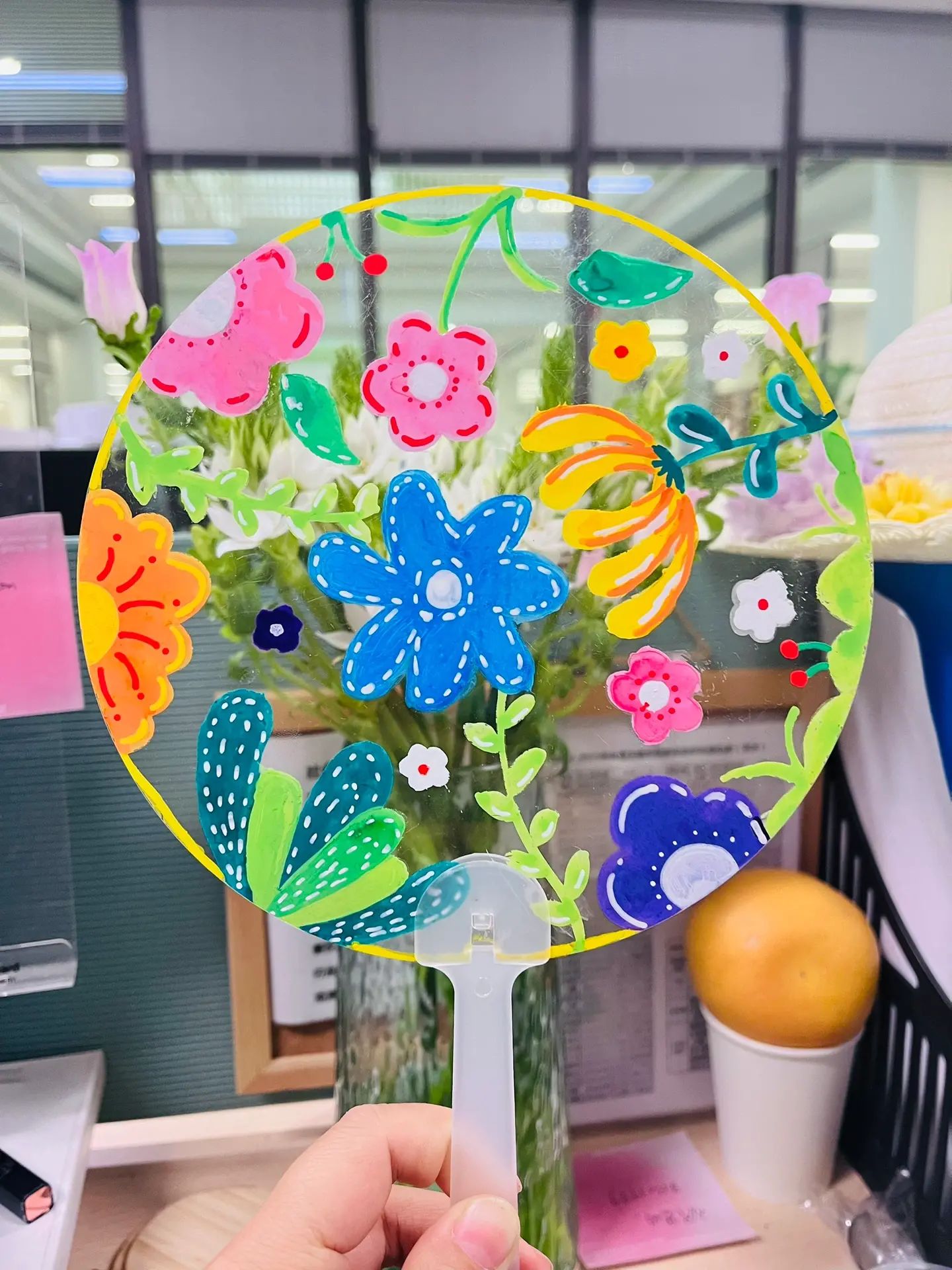 到店核销券码,领取材料:一把扇子,一份颜料,一支笔,在空白的扇子上描绘色彩