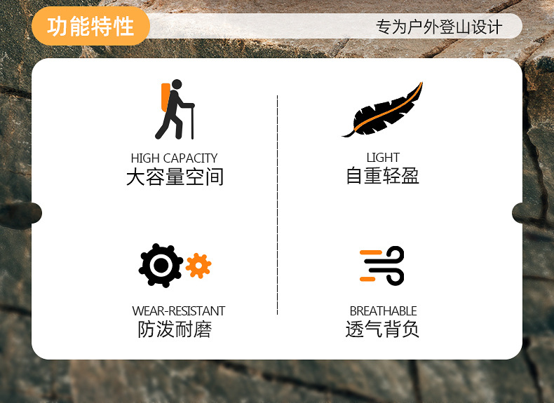 【户外登山包】双肩包男女同款徒步旅游旅行包 多功能大容量超轻运动包FXQ 商品图7