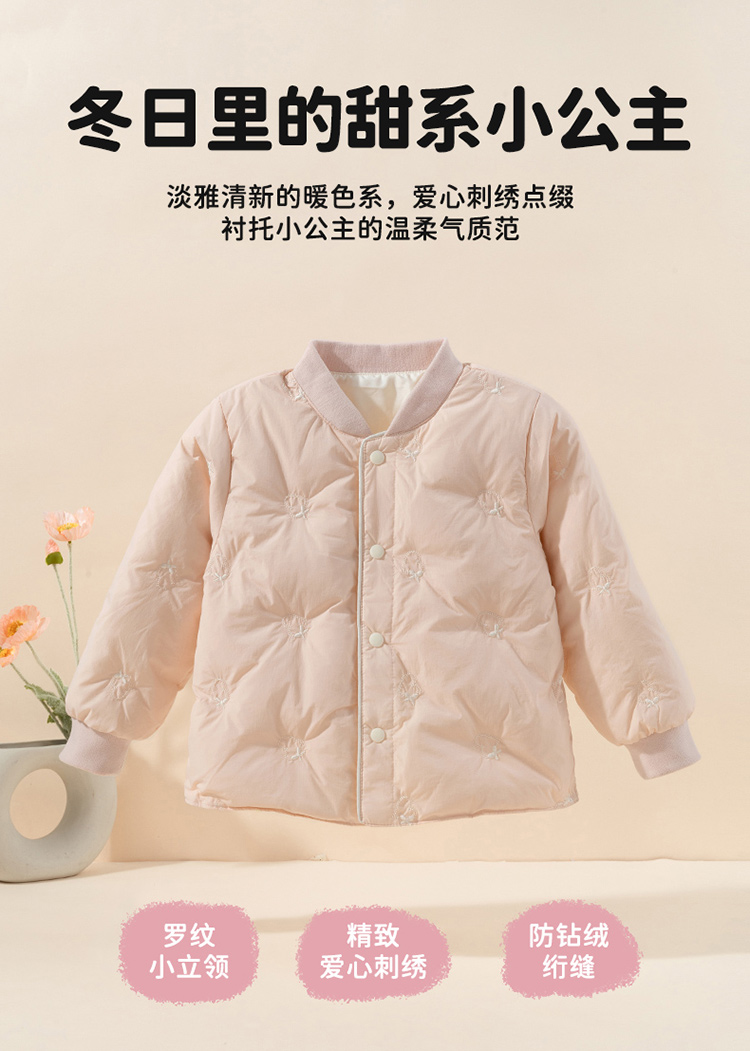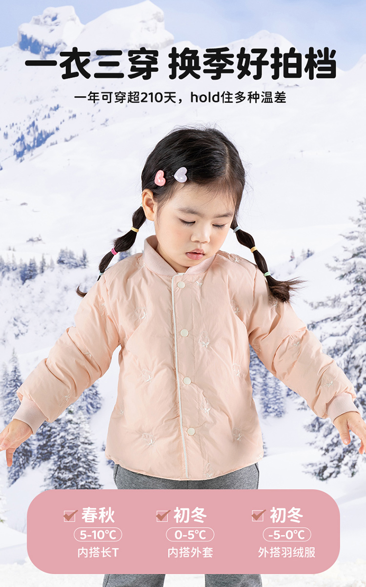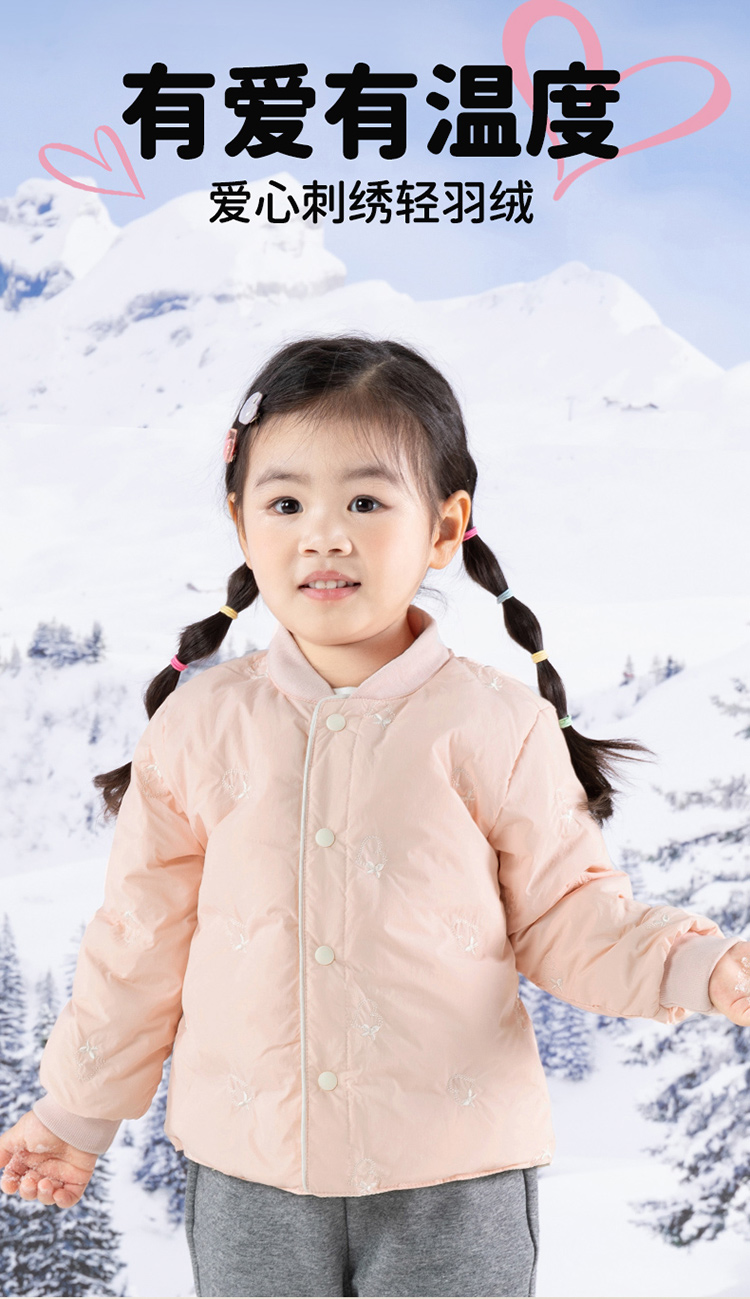 贝贝怡2024秋冬季女童轻薄羽绒服轻盈舒适防风保暖上衣短款羽羽绒服 ZB4DS038
