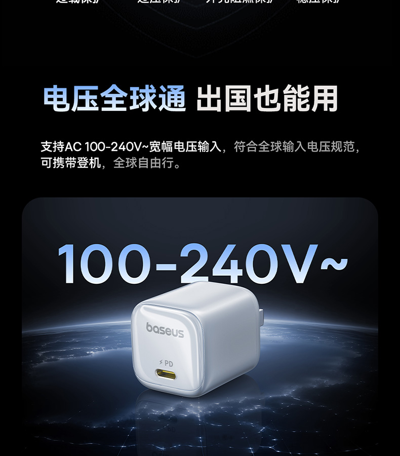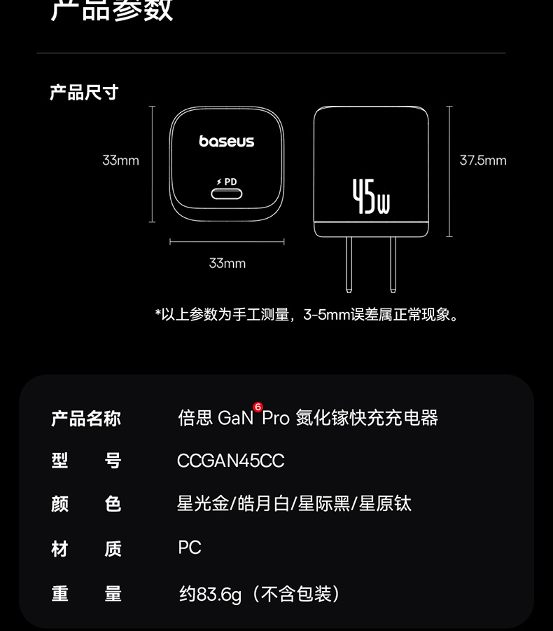 倍思同芯充GaN6 Pro 氮化镓快充充电器 1C 45W