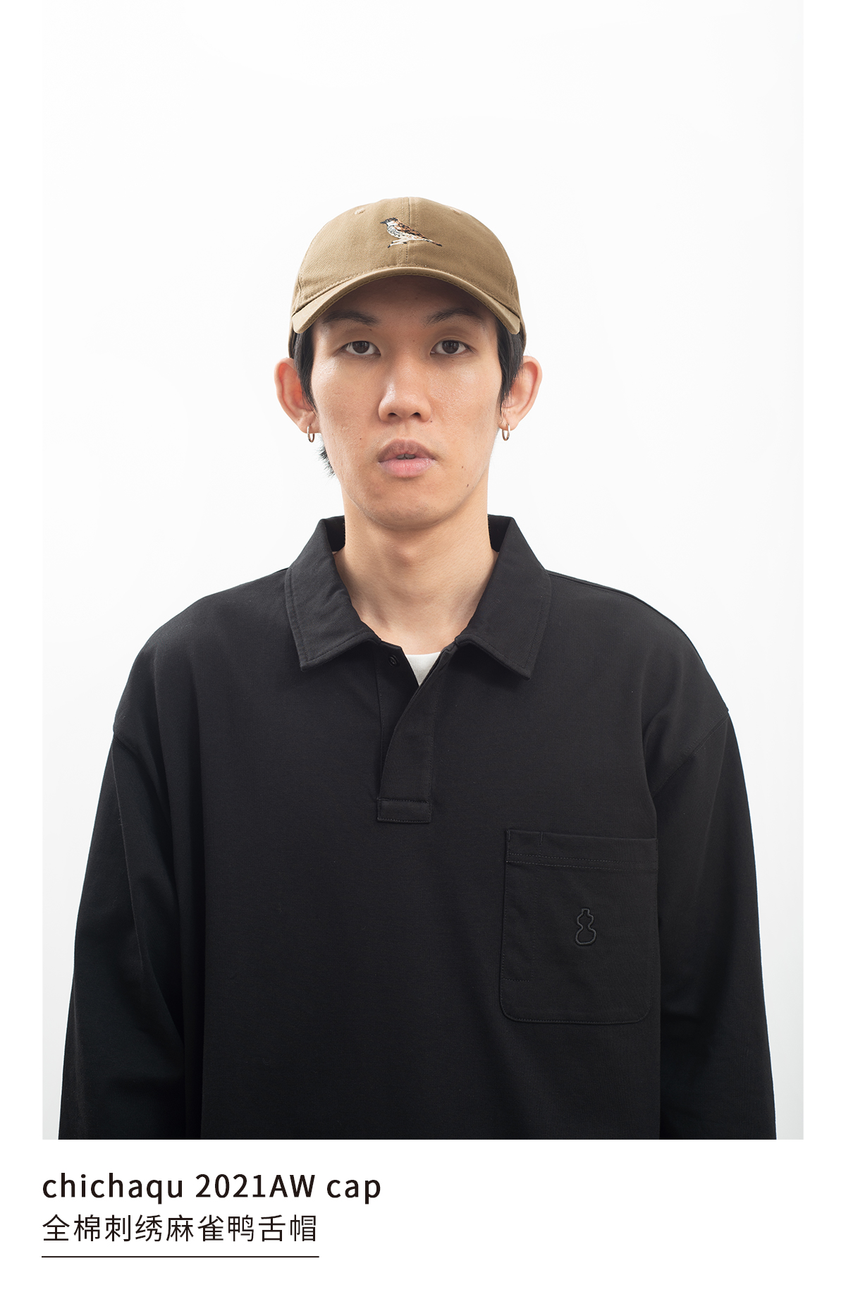 chichaqu全棉鸭舌帽 刺绣麻雀