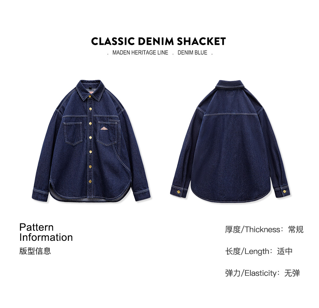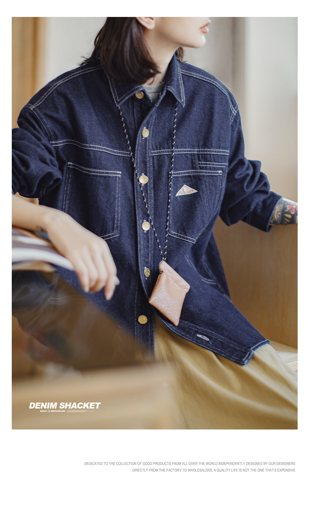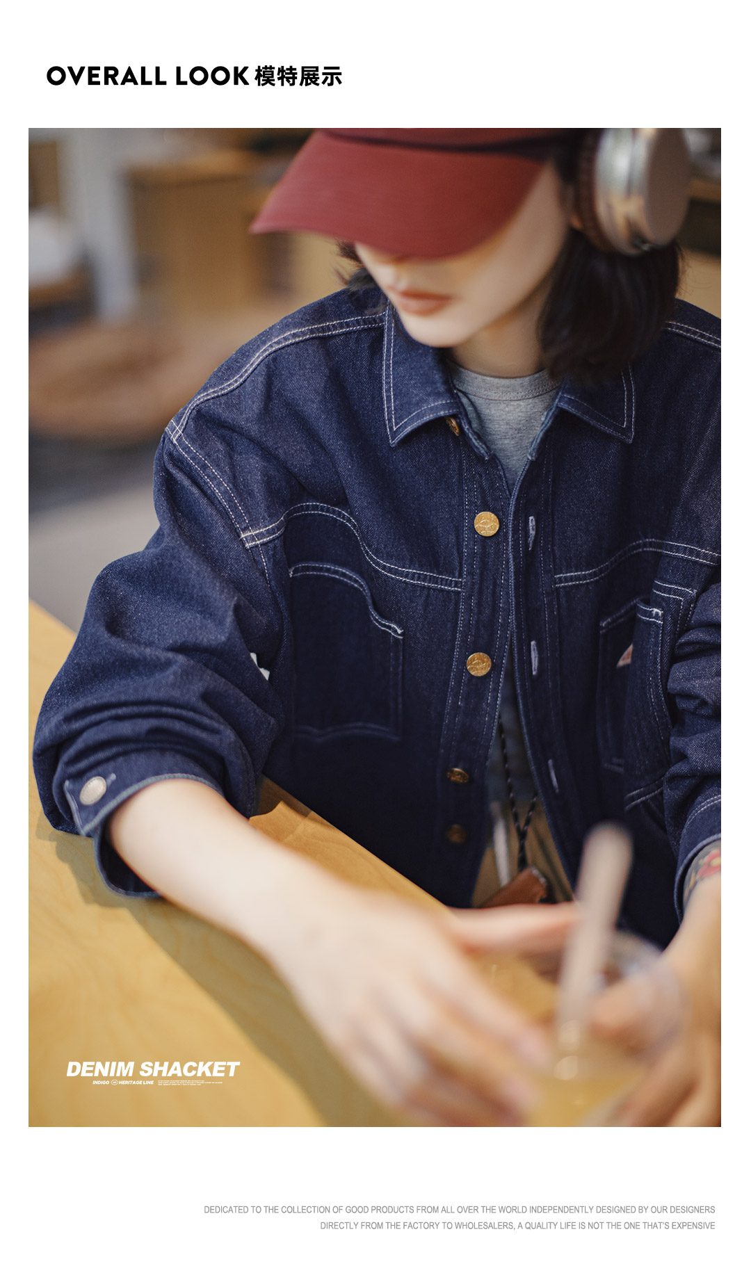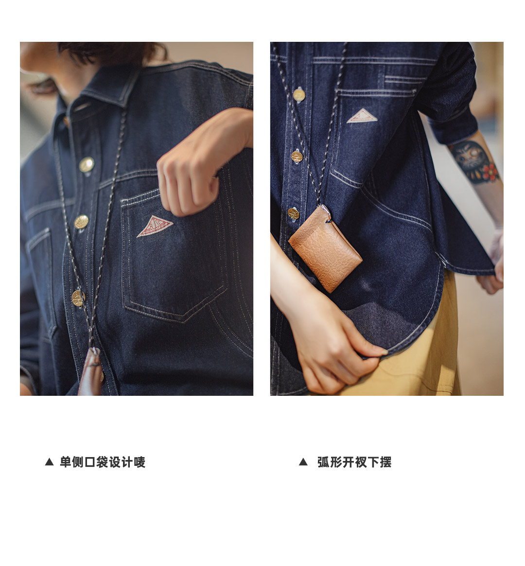 马登美式复古翻领丹宁牛仔衬衣夹克宽松长袖衬衫外套上衣女士秋季