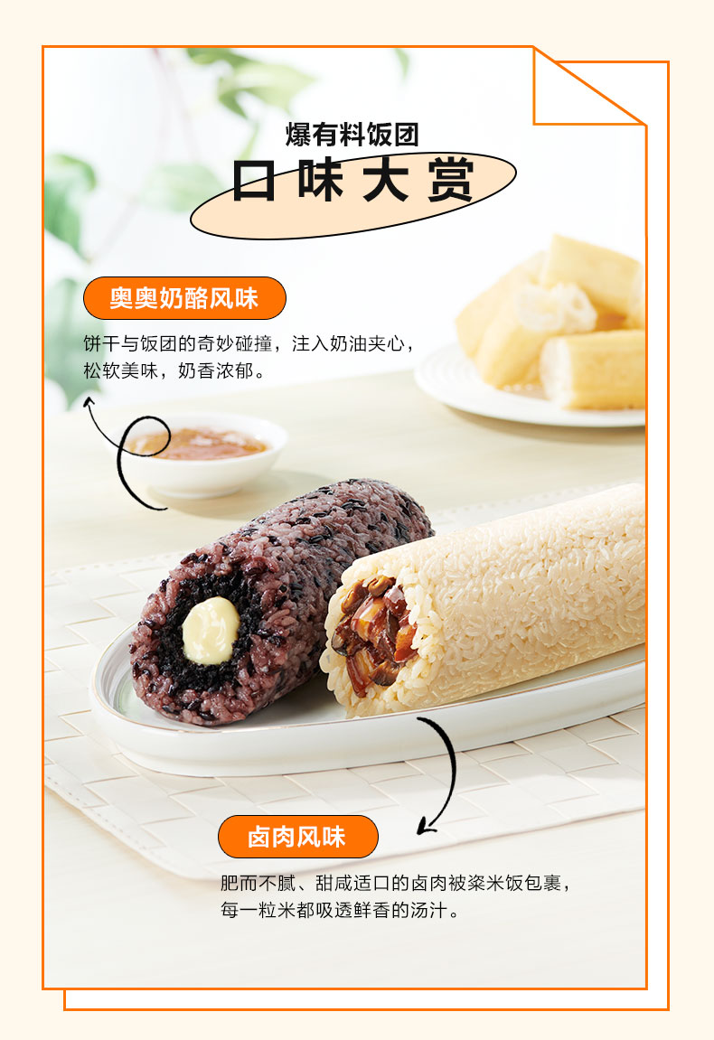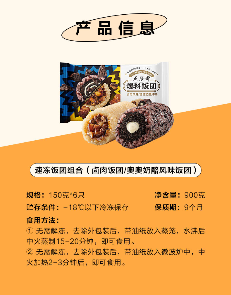【顺丰冷链包邮】五芳斋 爆料饭团速冻饭团组合(卤肉饭团/奥奥奶酪/腊味香肠风味饭团)150克*6只