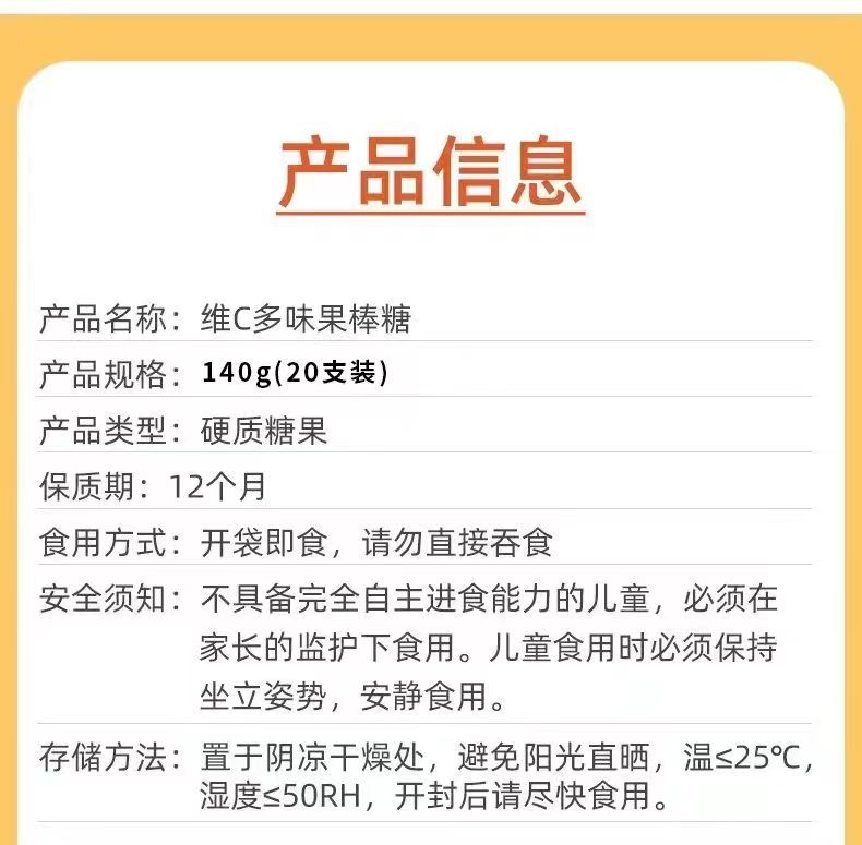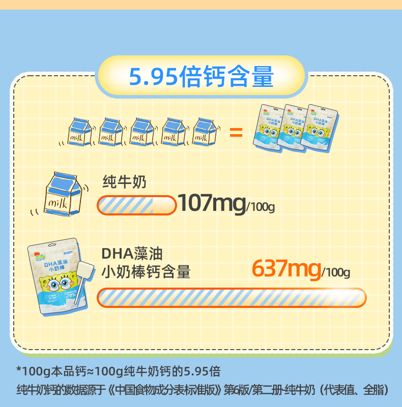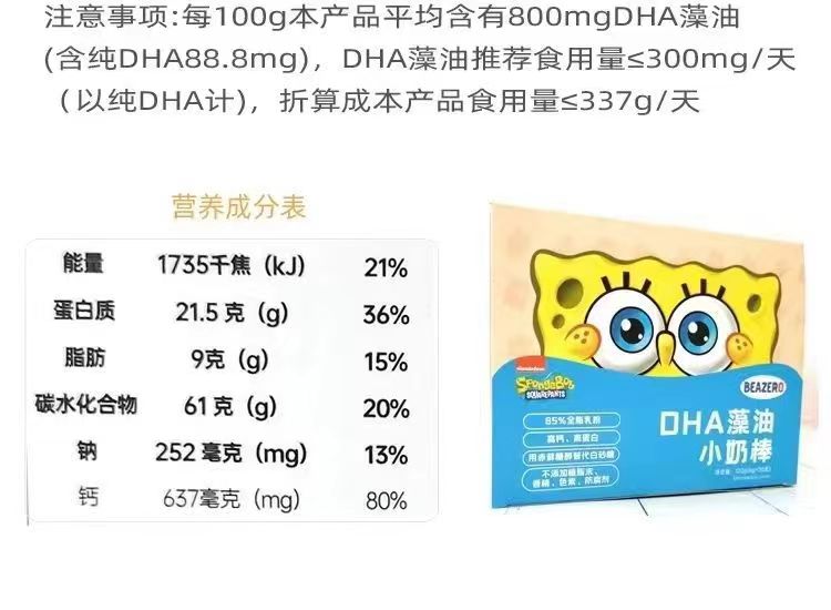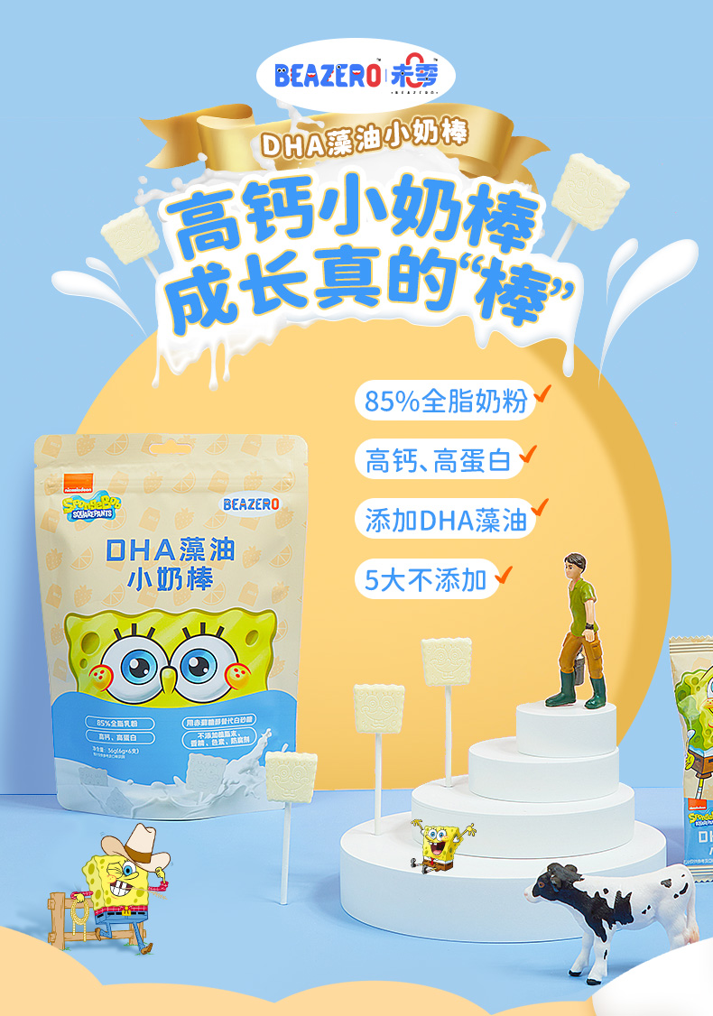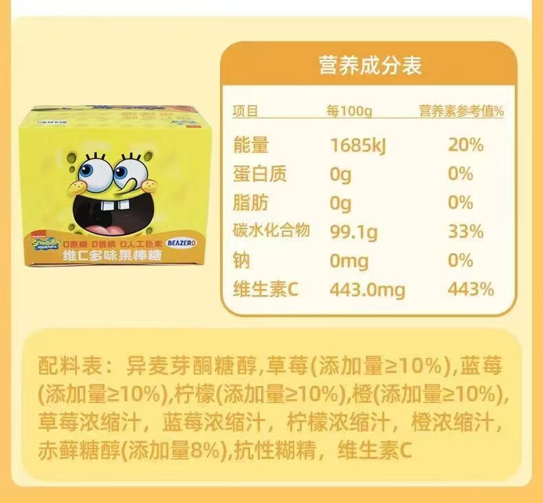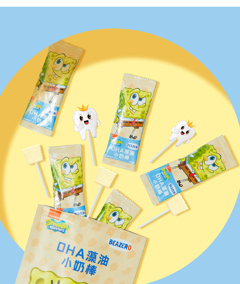【6g*20支】海绵宝宝维C果棒糖/DHA小奶棒宝宝儿童小零食棒棒糖水果棒