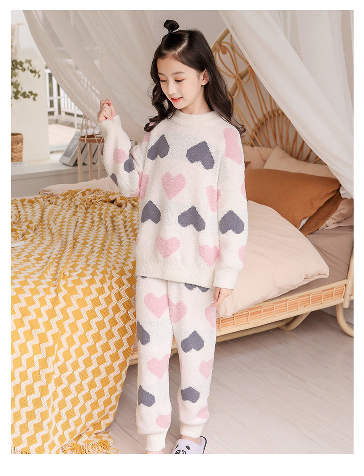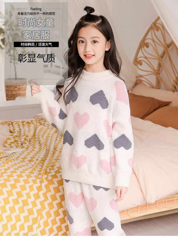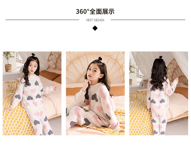 【韩国珊瑚绒儿童睡衣套装】秋冬女童睡衣可爱加厚长袖中大童家居服女