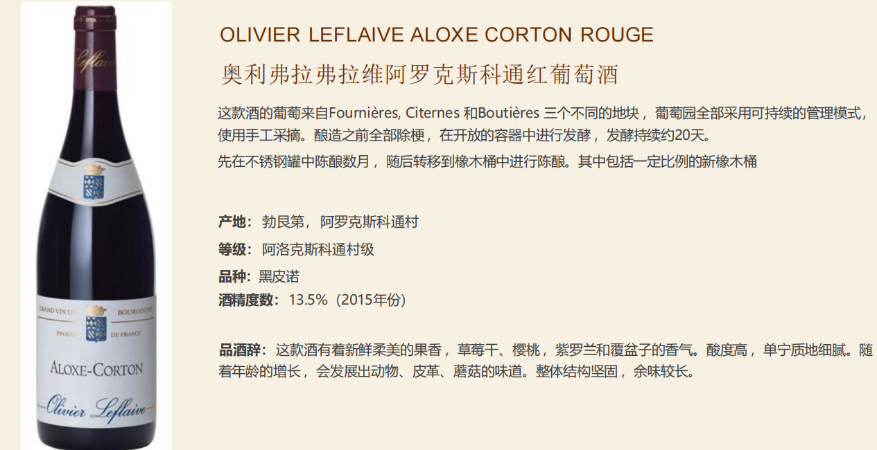 【勃艮第顶流名庄】Olivier Leflaive Aloxe Corton 2020 750Ml 奥利弗拉弗拉维阿罗克斯科通红葡萄酒