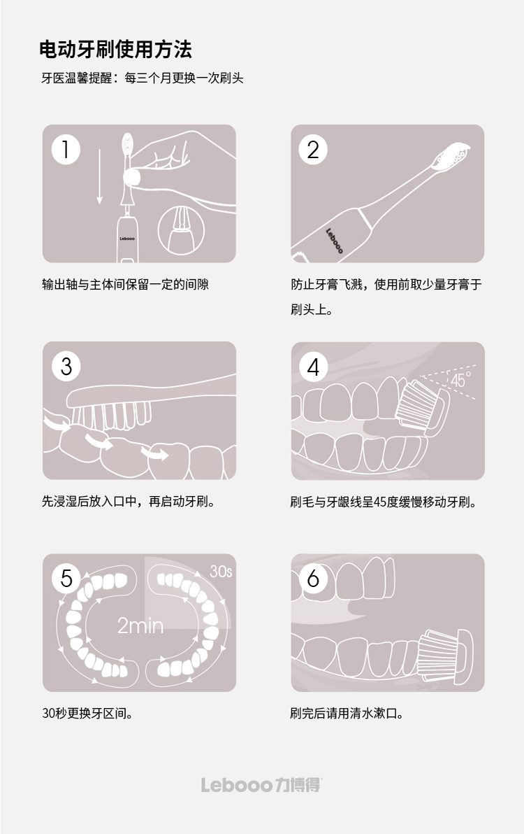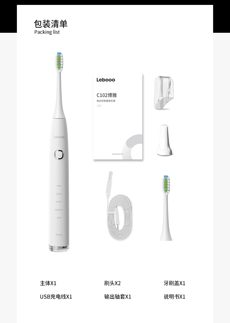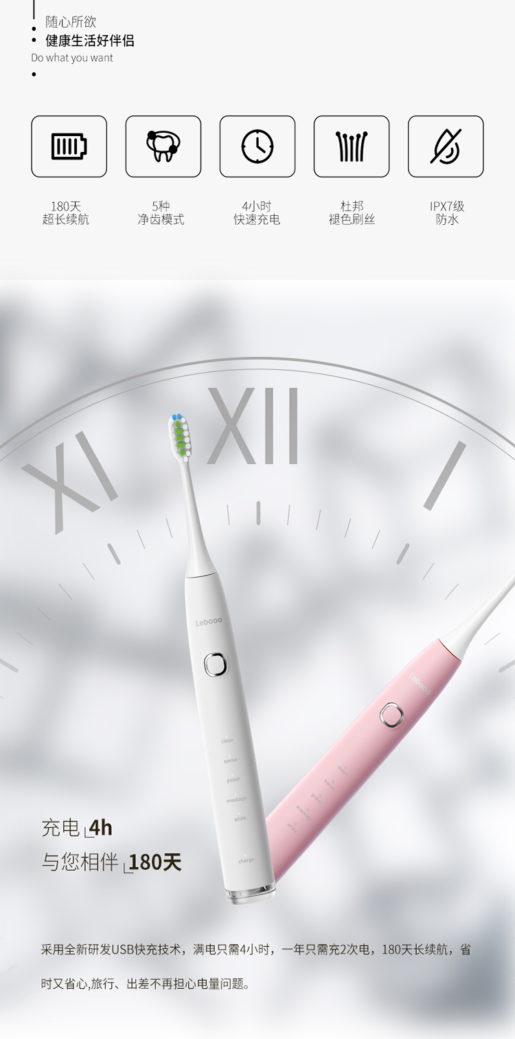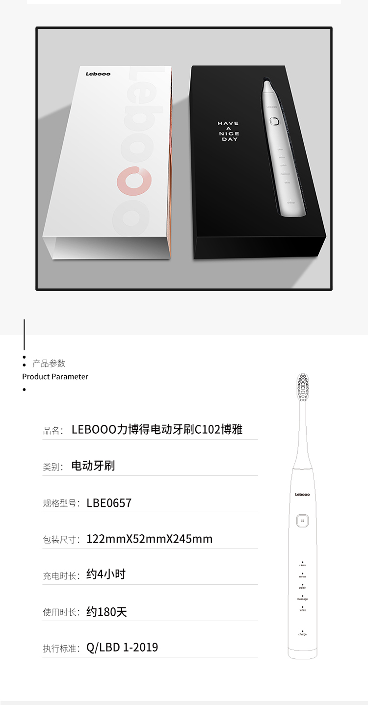 力博得(Lebooo) 电动牙刷 成人充电IPX7防水自动牙刷博雅炫白(LBE-657A21)