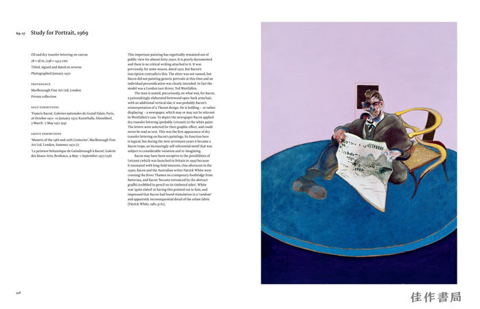 全套图书由五卷布面精装图书组成,共计 1538 页,含 800 多个精美彩页。第一卷为概述以及年代表,从第二卷到第四卷是培根的全部画作与研究,而最后一卷则是培根的手稿、索引目录以及由克日什托夫·契希考斯基编译的生平传记。除 584 副画作之外,书中还收录了培根早期画作的照片,其家人朋友与自己的照片,以及培根家家具的照片,也收录了培根的手稿,手写的笔记,和令人着迷的其画作的 X 光透视图和显微摄影图。