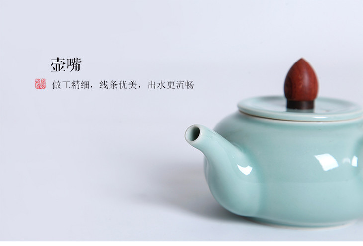 尚唐丨龙泉青瓷五行茶具 半手工 四杯一公道一茶壶 尚粉釉色