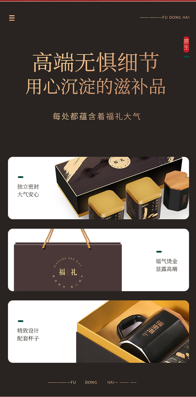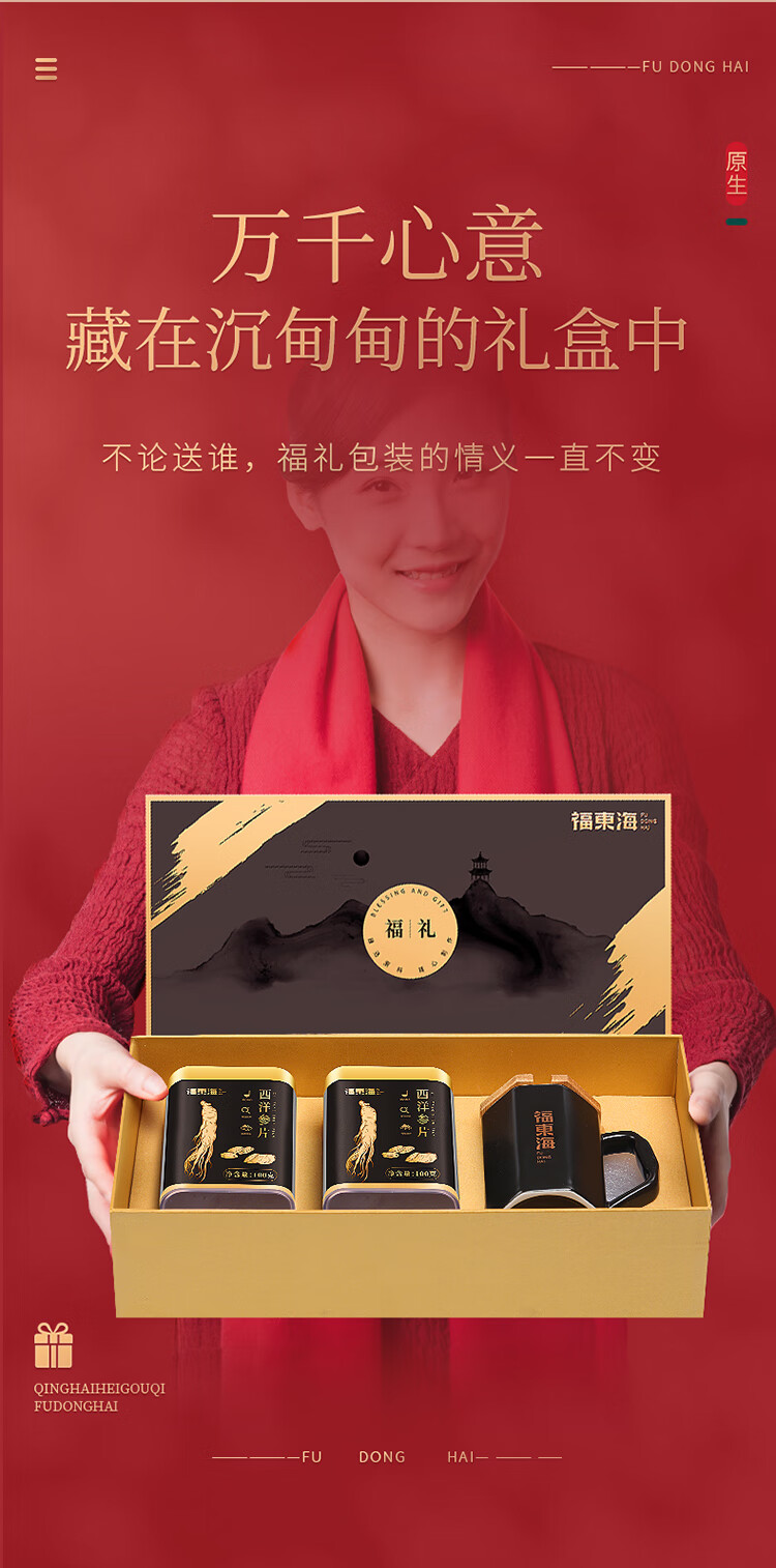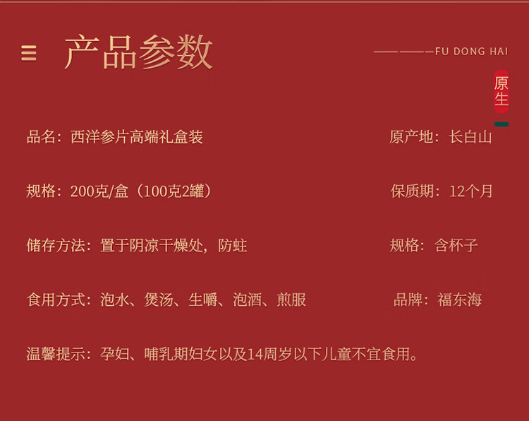 福东海 福礼西洋参礼盒 100x2瓶(带八角杯) 0.8-1.0片(中)