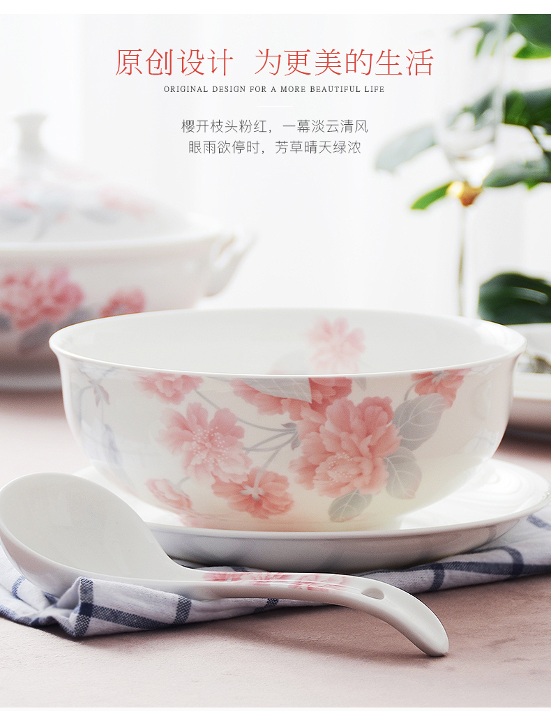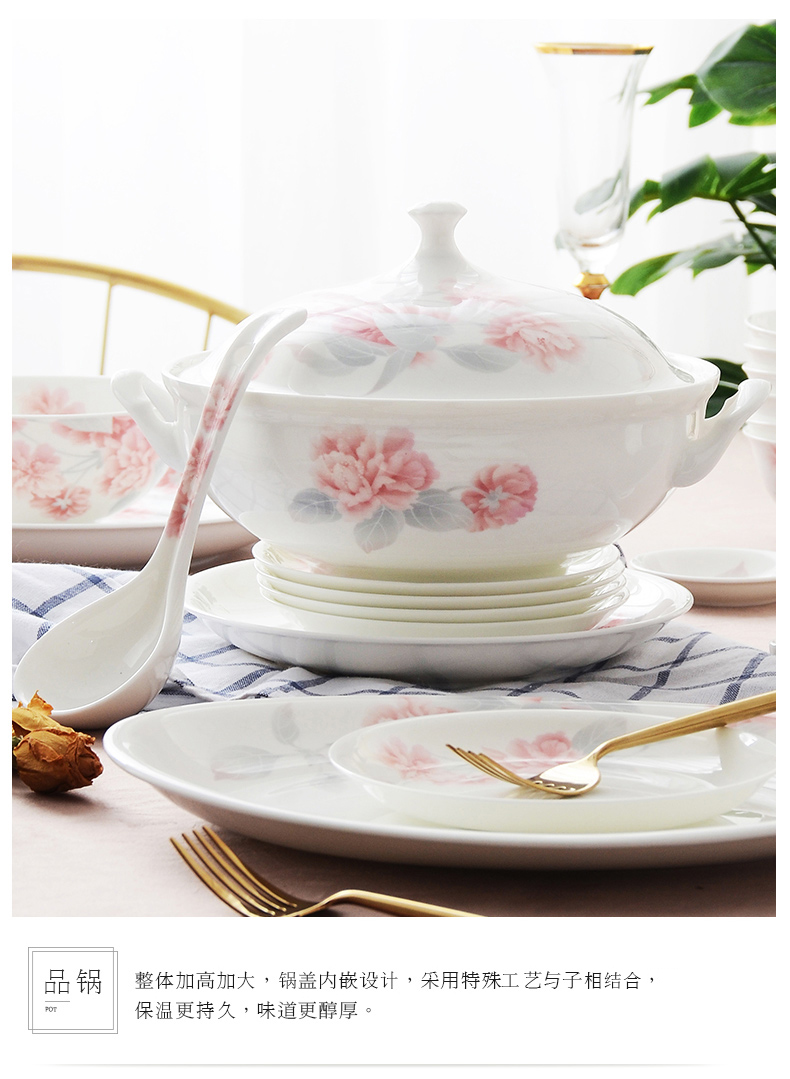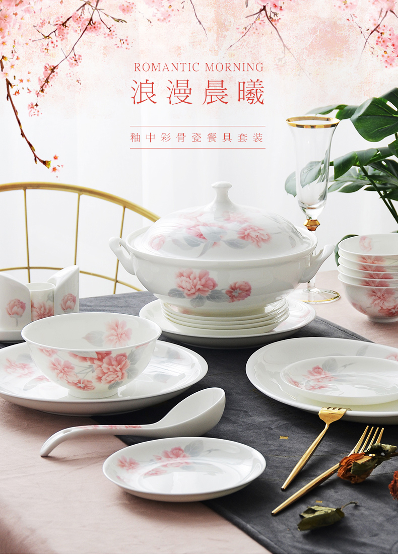 华光陶瓷 骨瓷餐具套装 碗碟套装 家用 中式釉中彩 浪漫晨曦