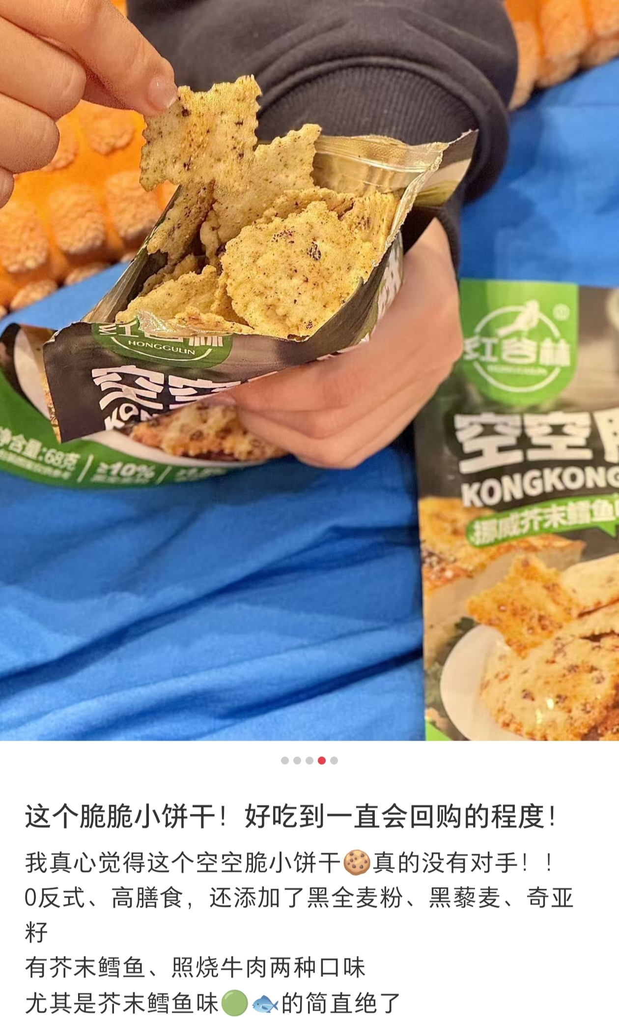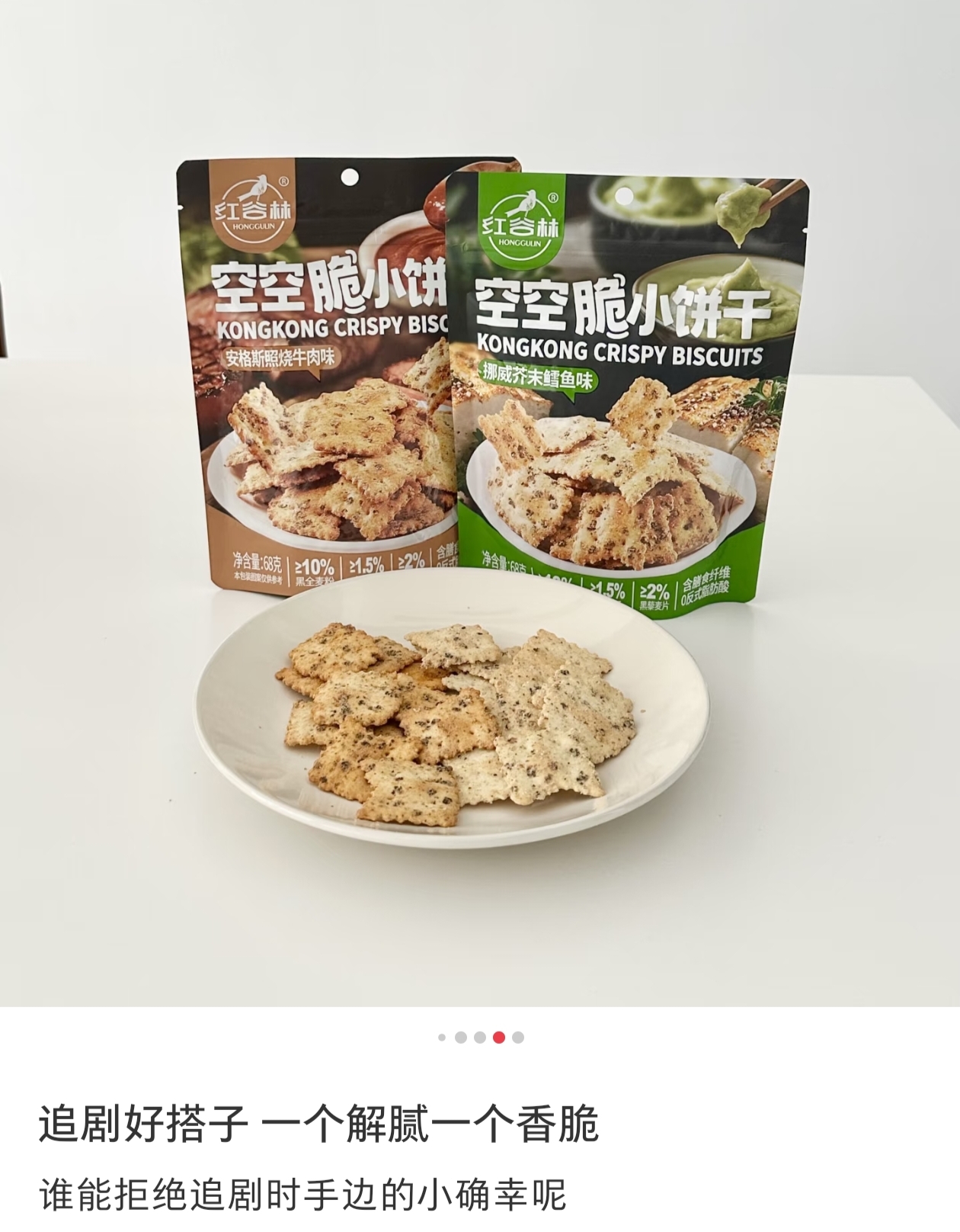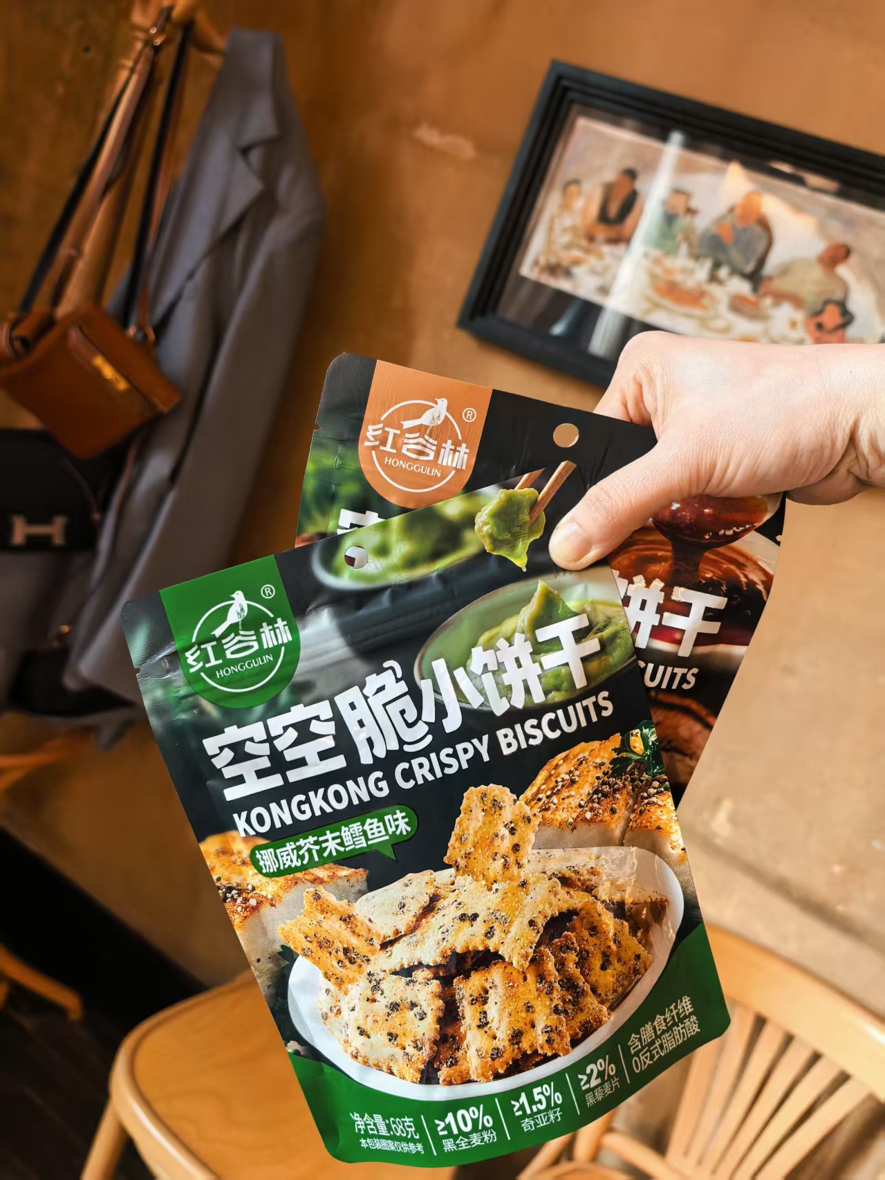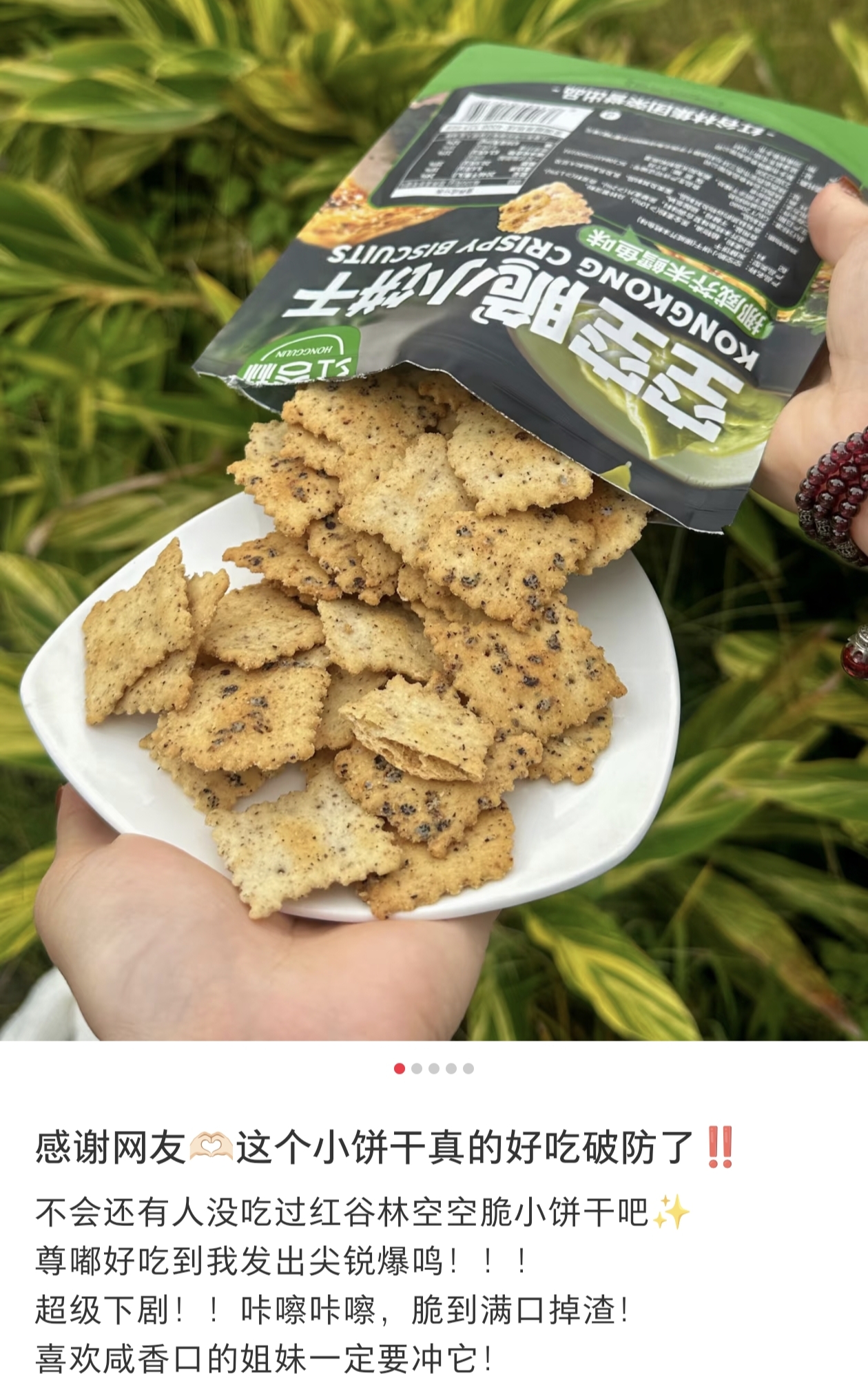 红谷林又出新品啦!之前的小石子饼,真的是我的必备暖胃小零食,超好吃的,还有健康的九红九黑藜麦谷物饼也很不错,这次新出的空空脆小饼干,更是惊艳,咸香风味极解馋,咔嚓酥脆,非常上头,真的是要命咯!