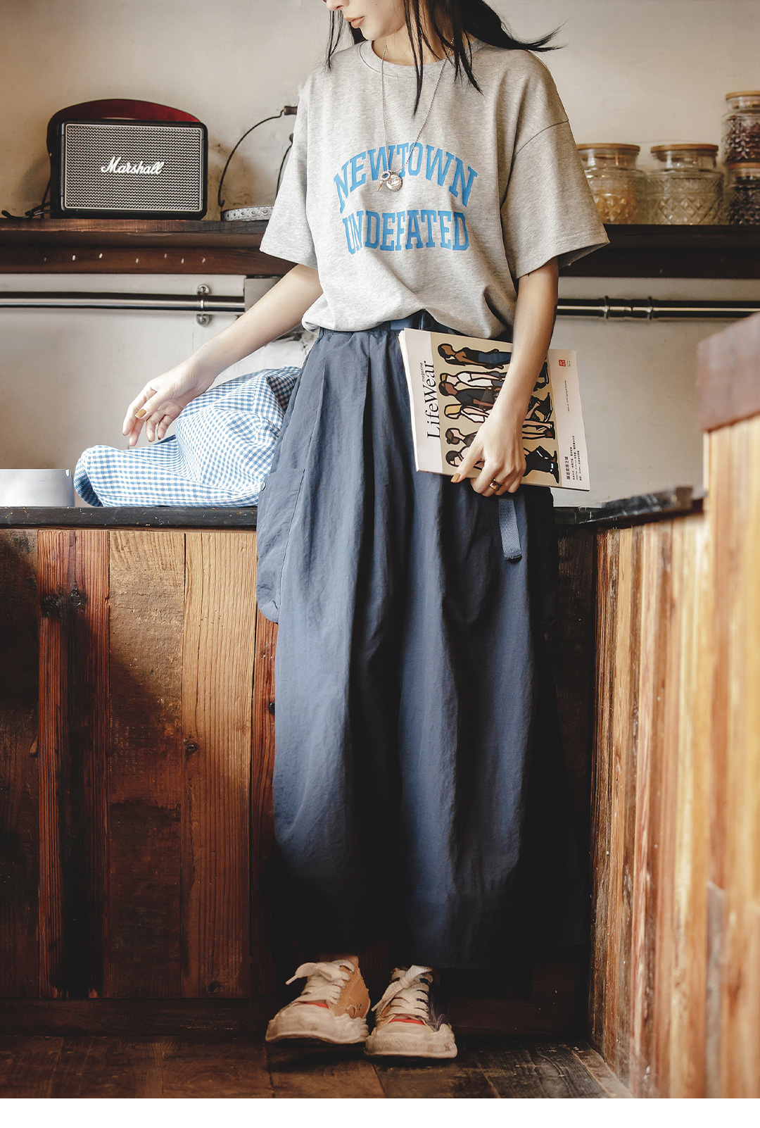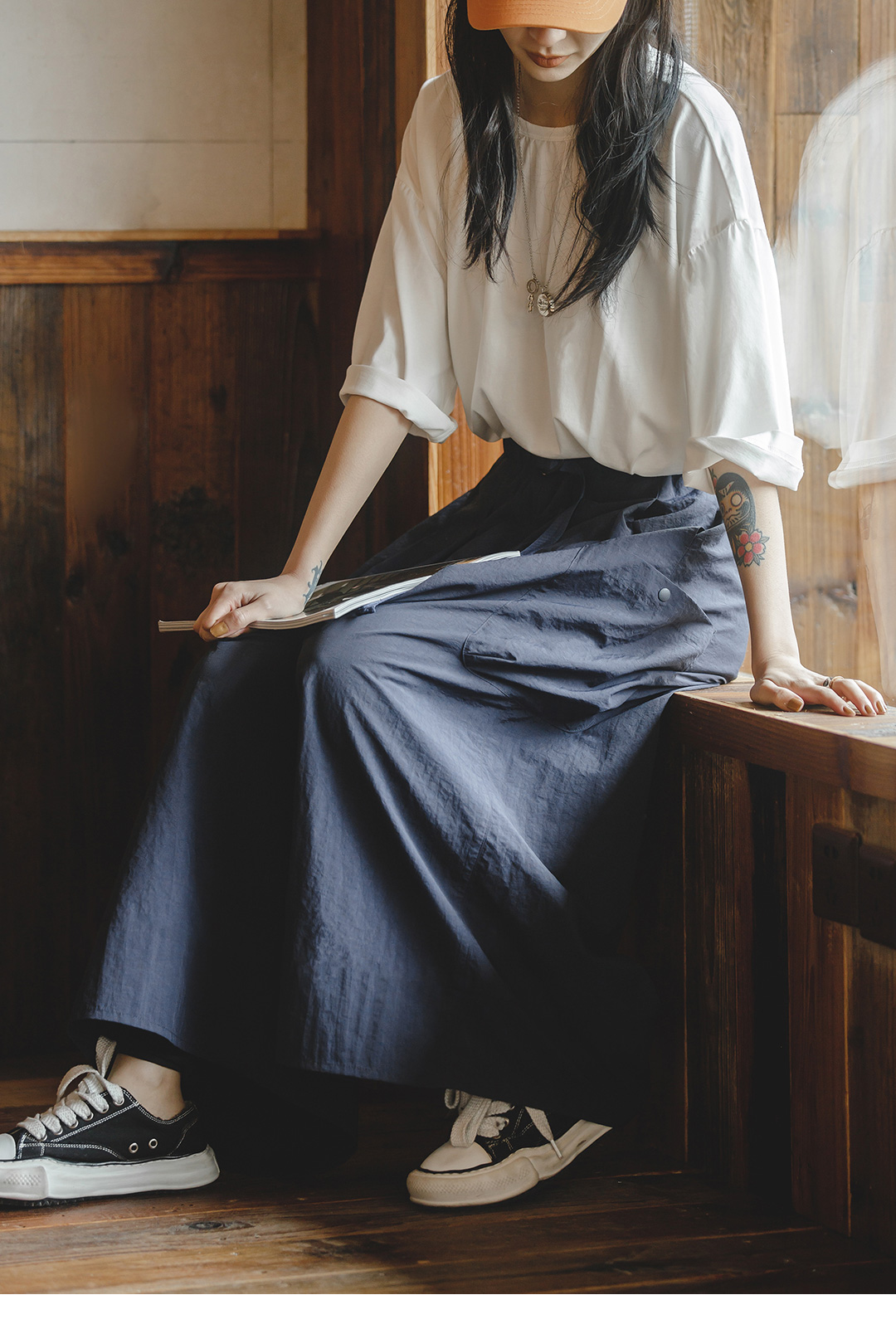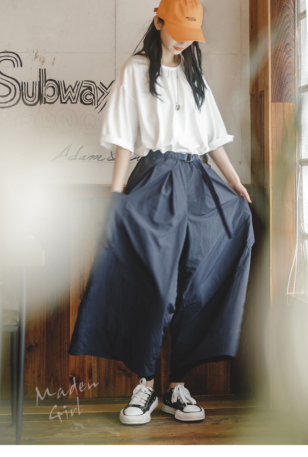 马登日系休闲高腰工装裤口袋宽松显瘦遮胯百搭阔腿A字裙裤秋女