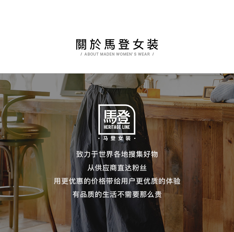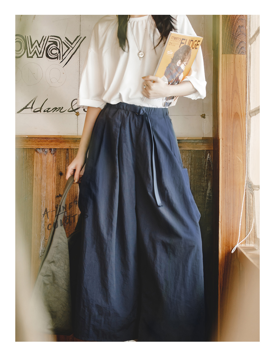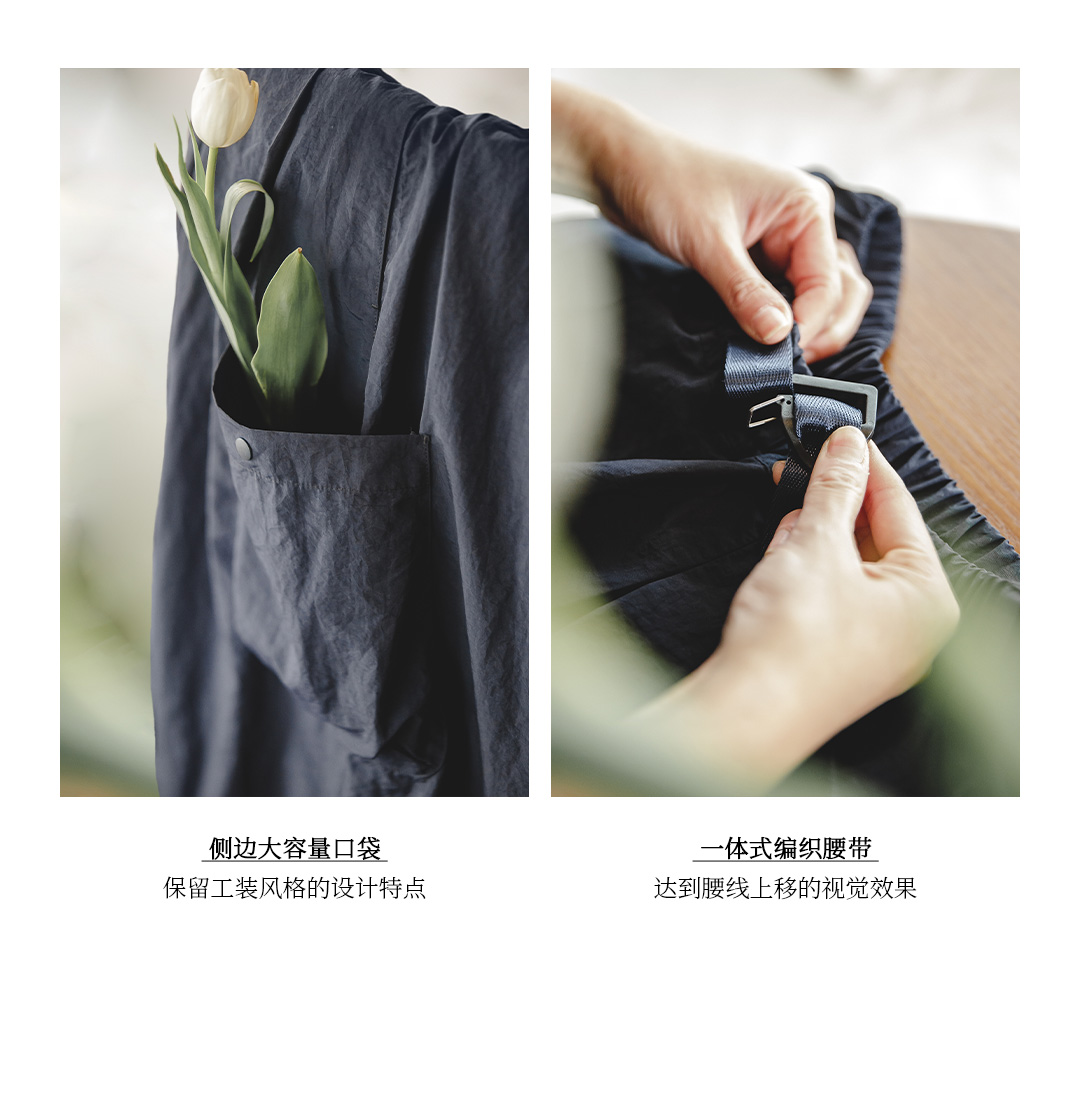 马登日系休闲高腰工装裤口袋宽松显瘦遮胯百搭阔腿A字裙裤秋女
