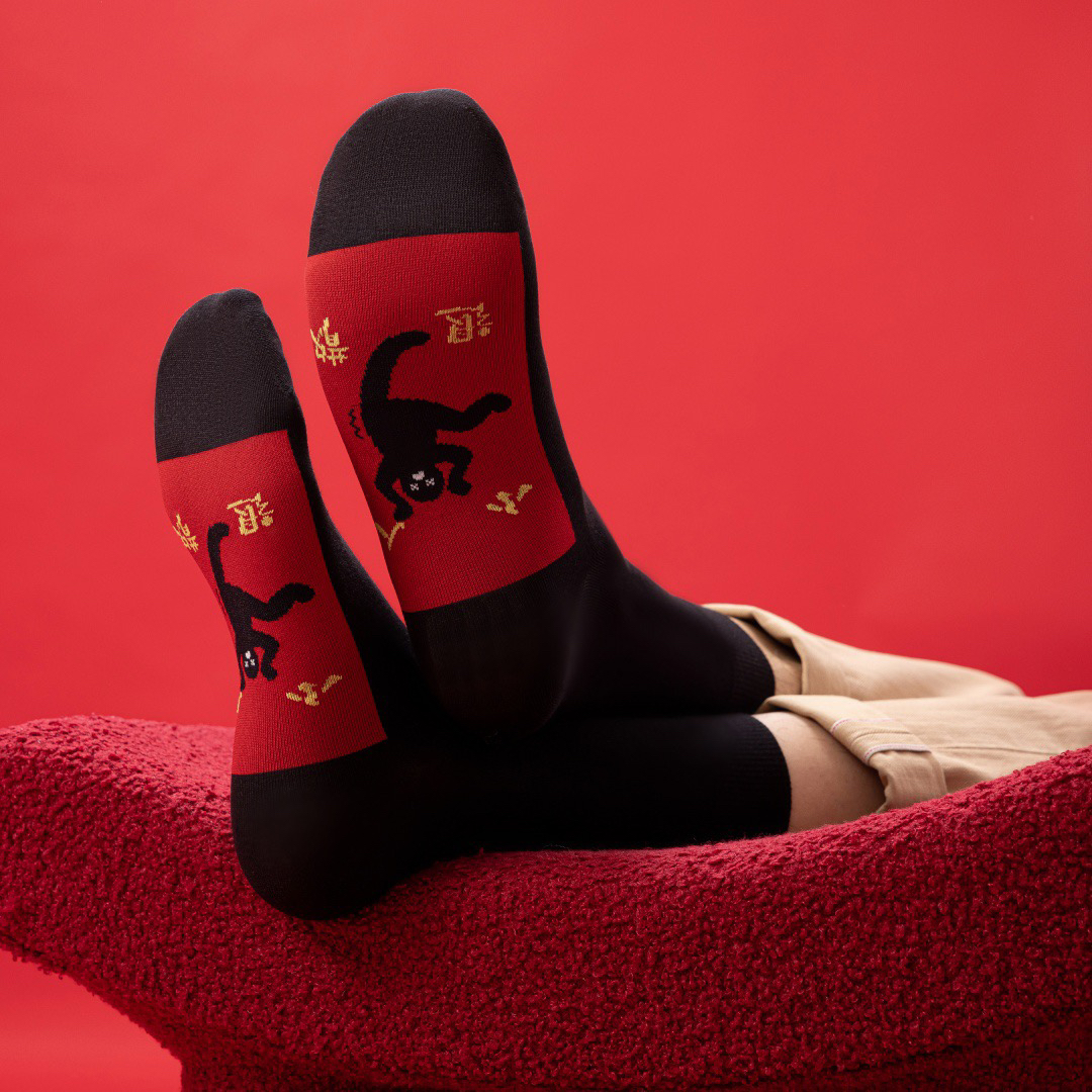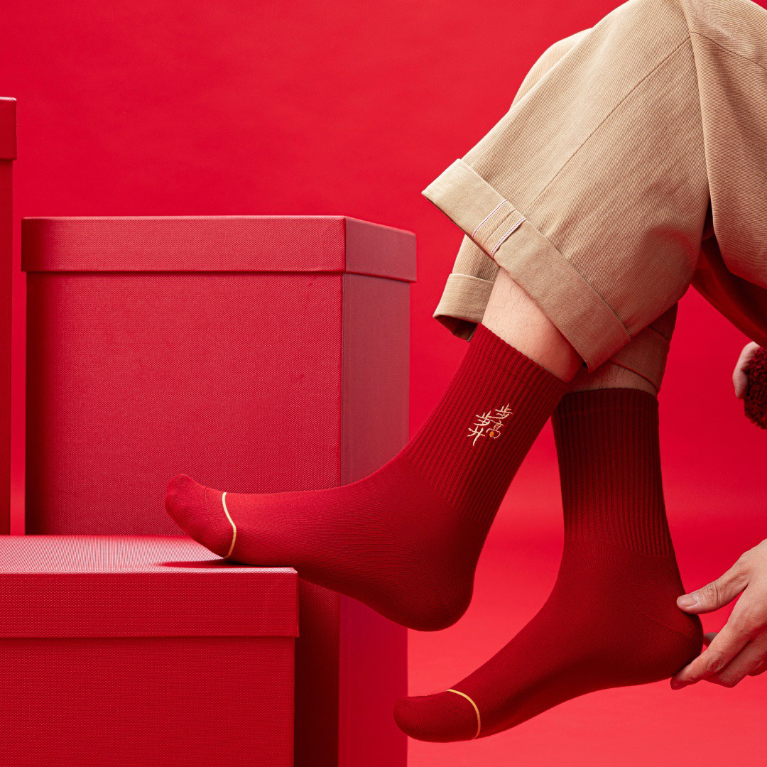 很特别的一款新年中筒男袜
