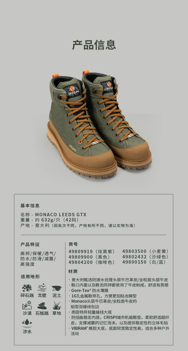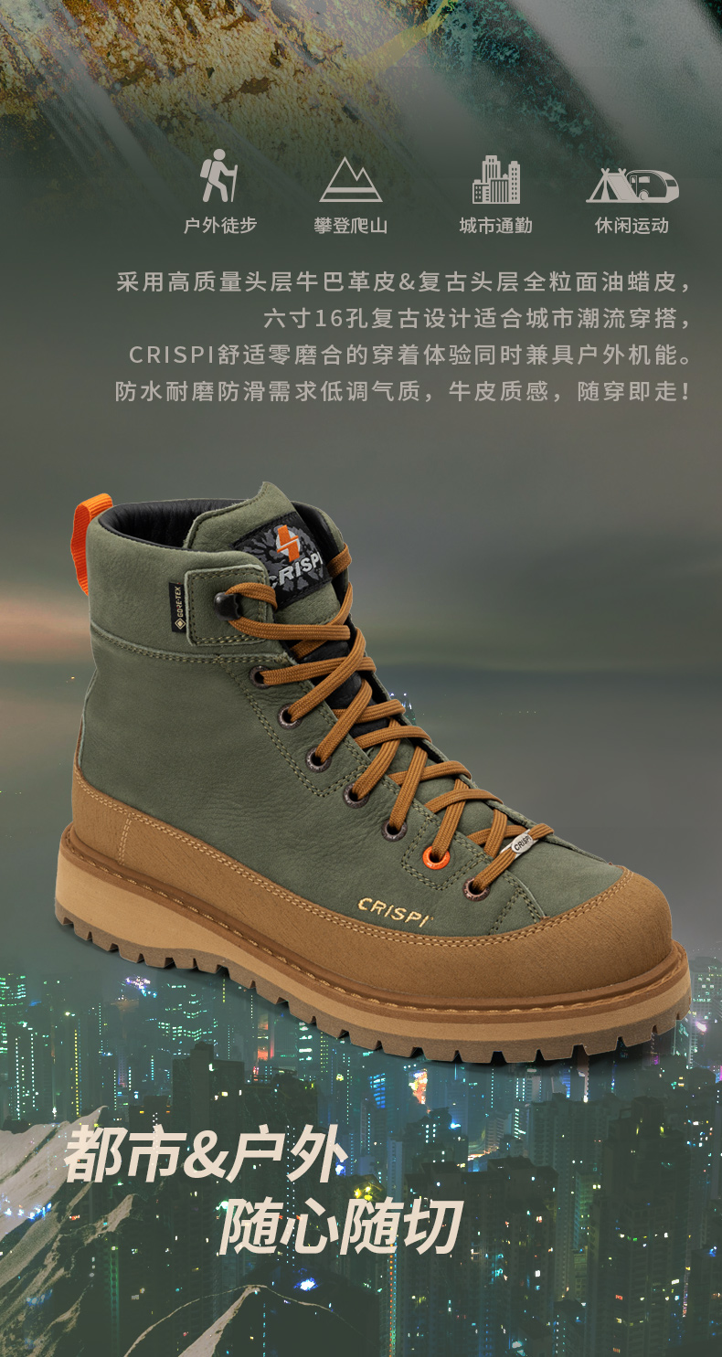 CRISPI秋冬新品户外防滑徒步登山鞋靴高帮男女马丁靴Monaco leeds