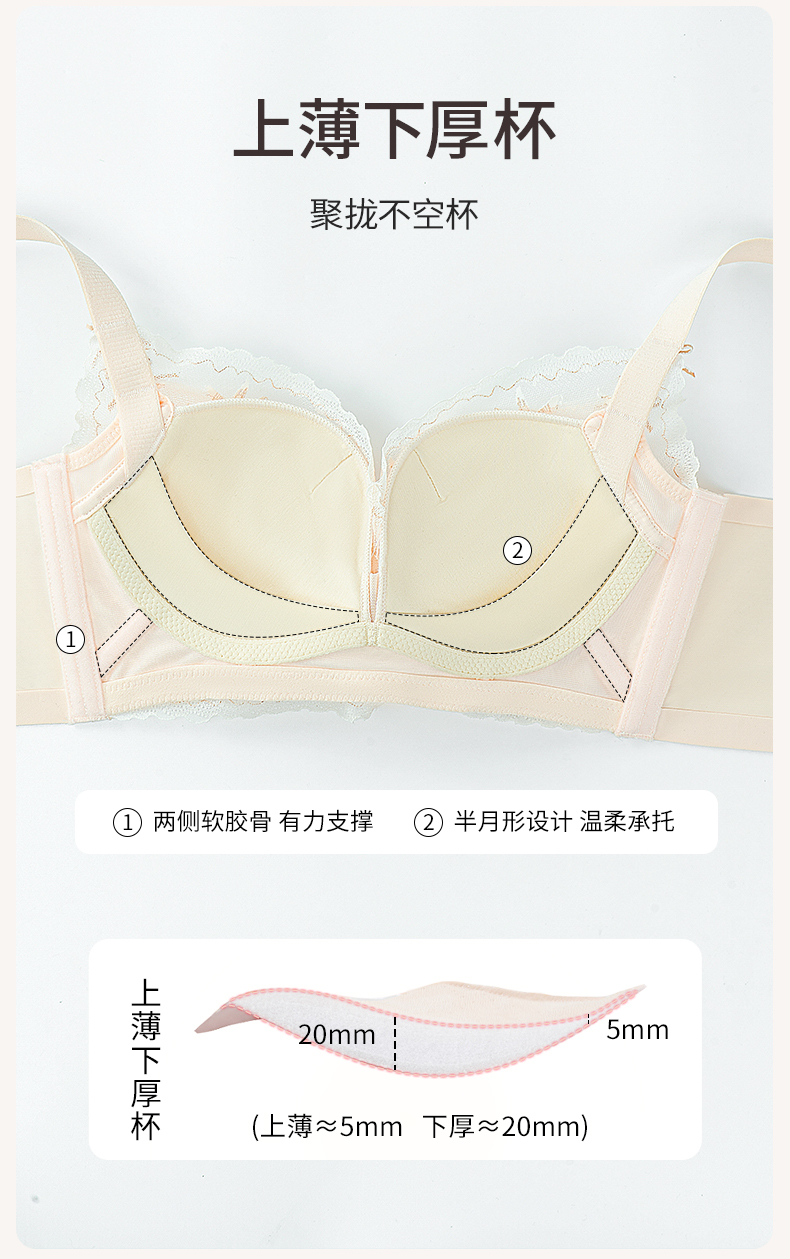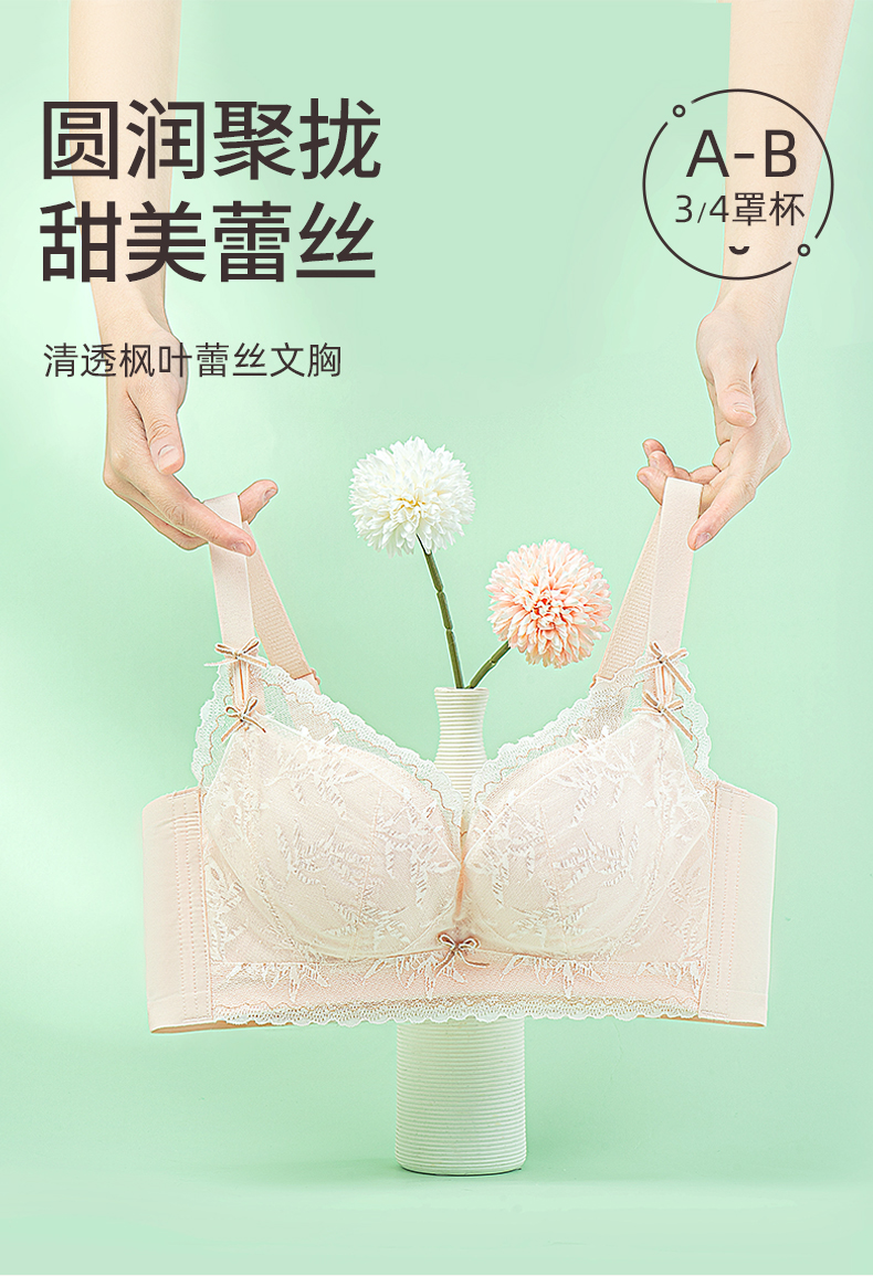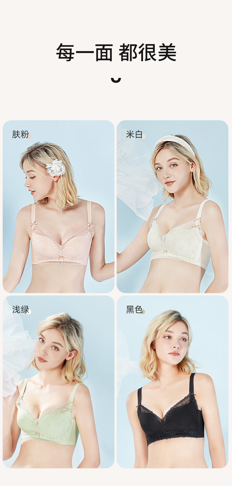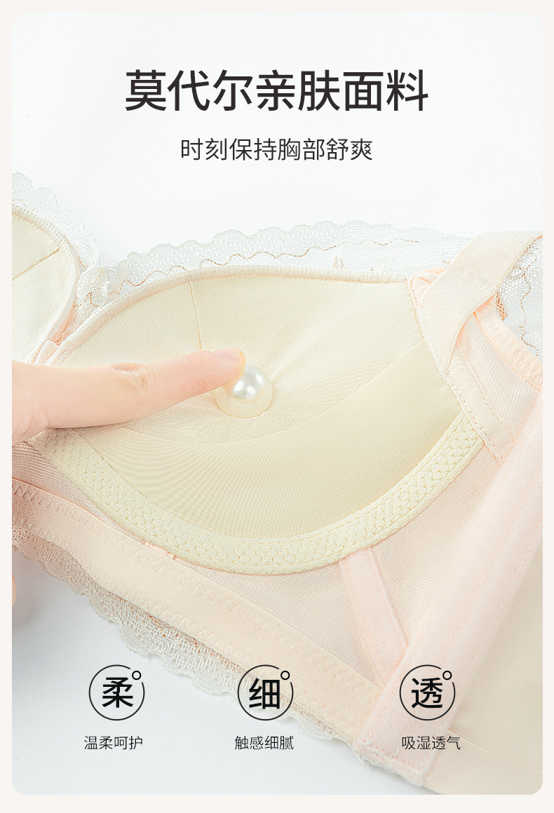 雅黛丽内衣女小胸聚拢甜美蕾丝文胸无钢圈莫代尔亲肤透气胸罩