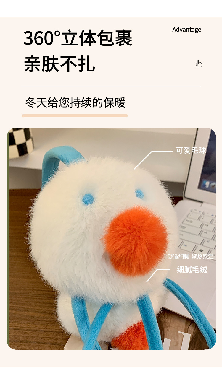 【可爱保暖毛绒雪人耳罩】冬天给您持续的保暖,360°立体包裹 亲肤不扎,冬季骑行耳包防风防寒加厚耳套耳捂子QQ