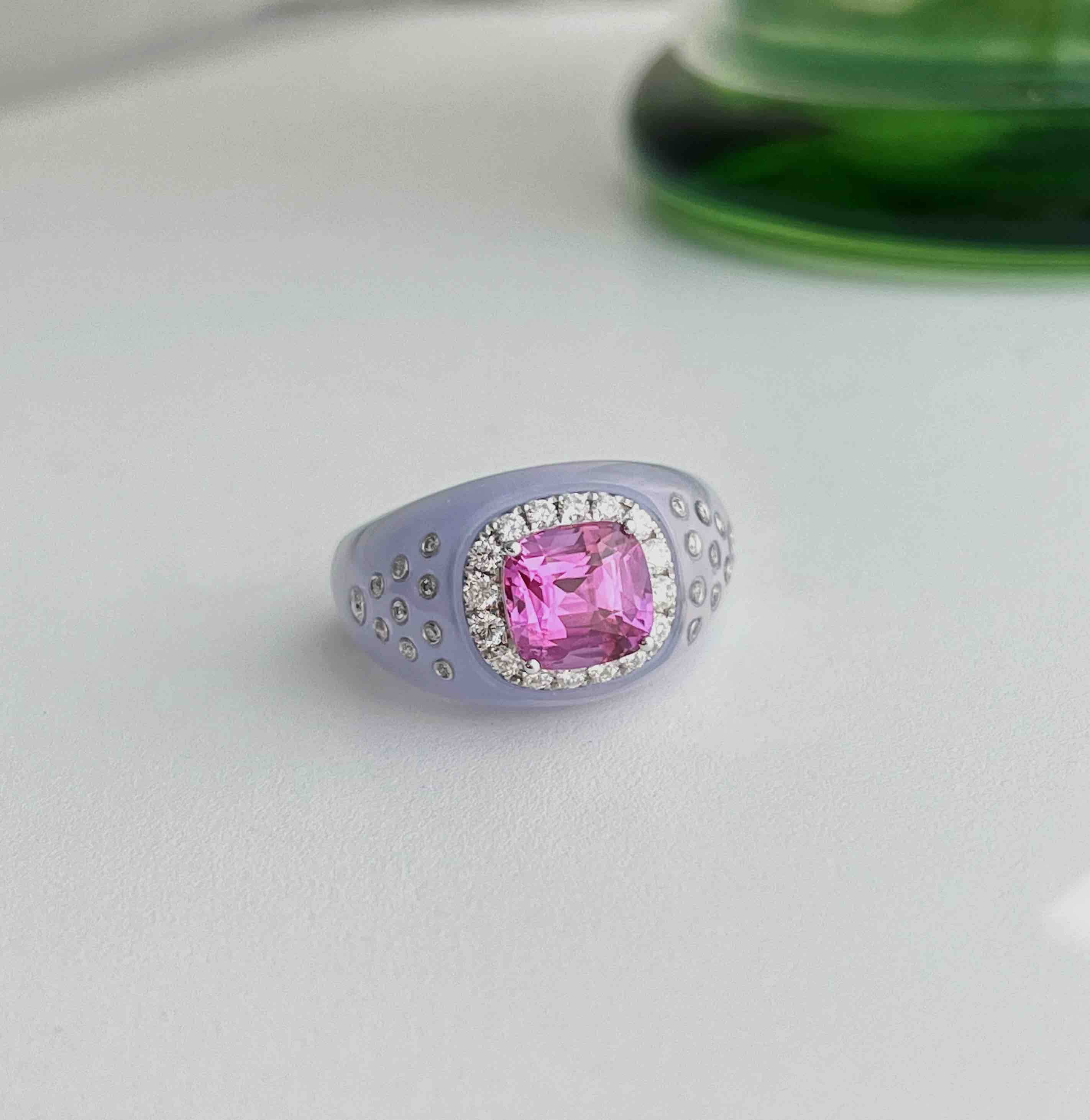 作品名称:玉髓、钻石和无烧粉色蓝宝石戒指