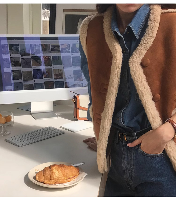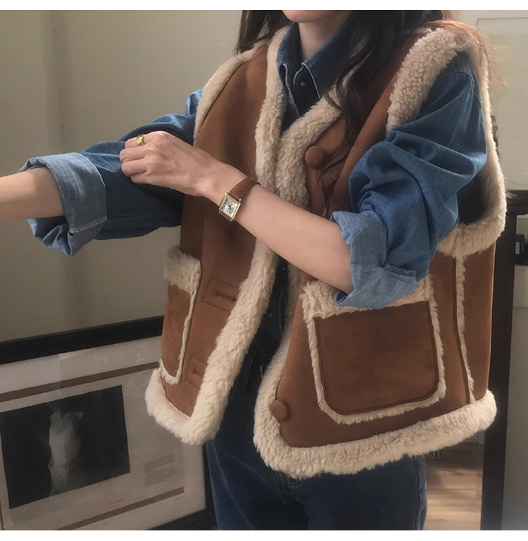裁缝学苑AS161皮毛一体马甲纸样女装复古麂皮绒羊羔毛背心上衣样衣