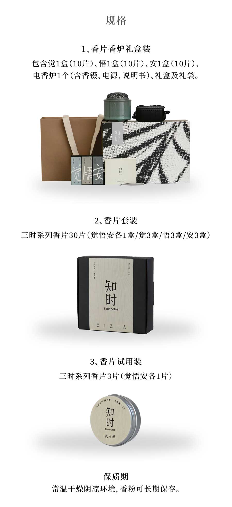 香氛美学 | 知时 觉悟安三时系列隔火香 新和香配方 三种香氛场景设计 无火无烟 香炉礼盒/香片套装/试用装(保定顺丰发货))
