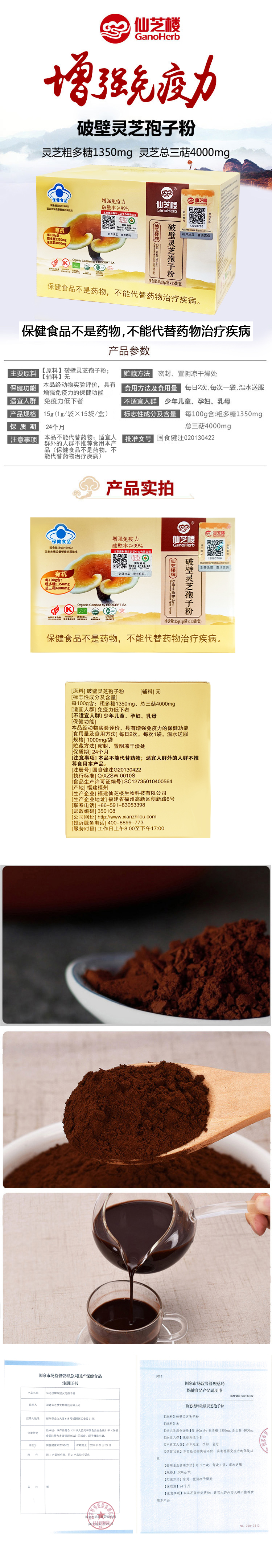 仙芝楼 孢子粉 15g/盒
