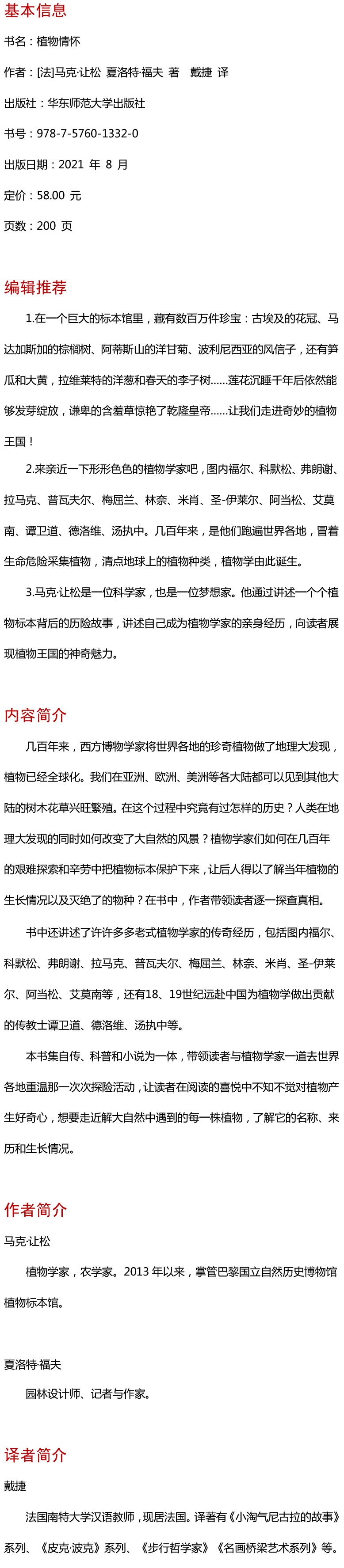 植物情怀 马克 让松 夏洛特 福夫 著 植物标本的历险故事 植物学家传奇经历 三棱镜译丛
