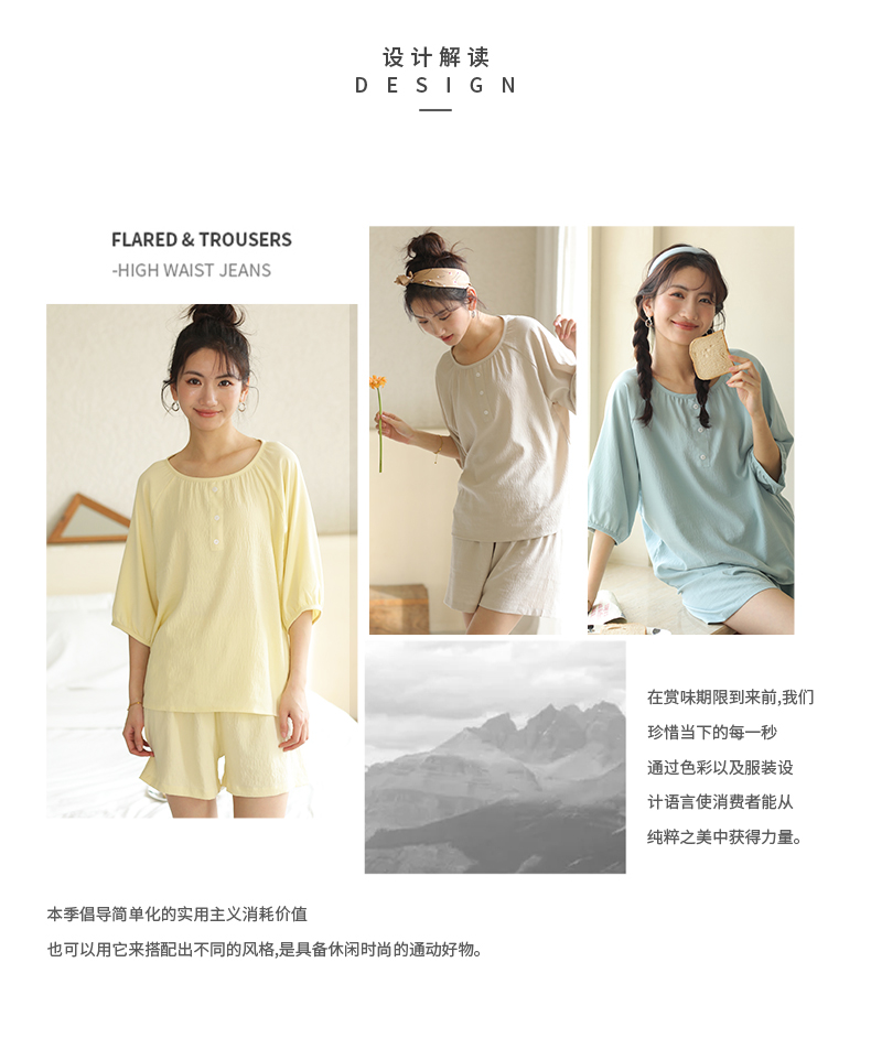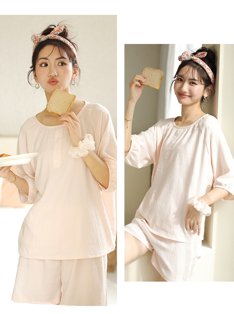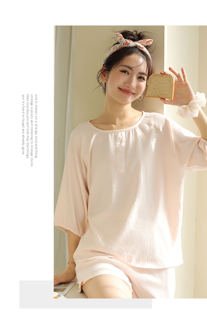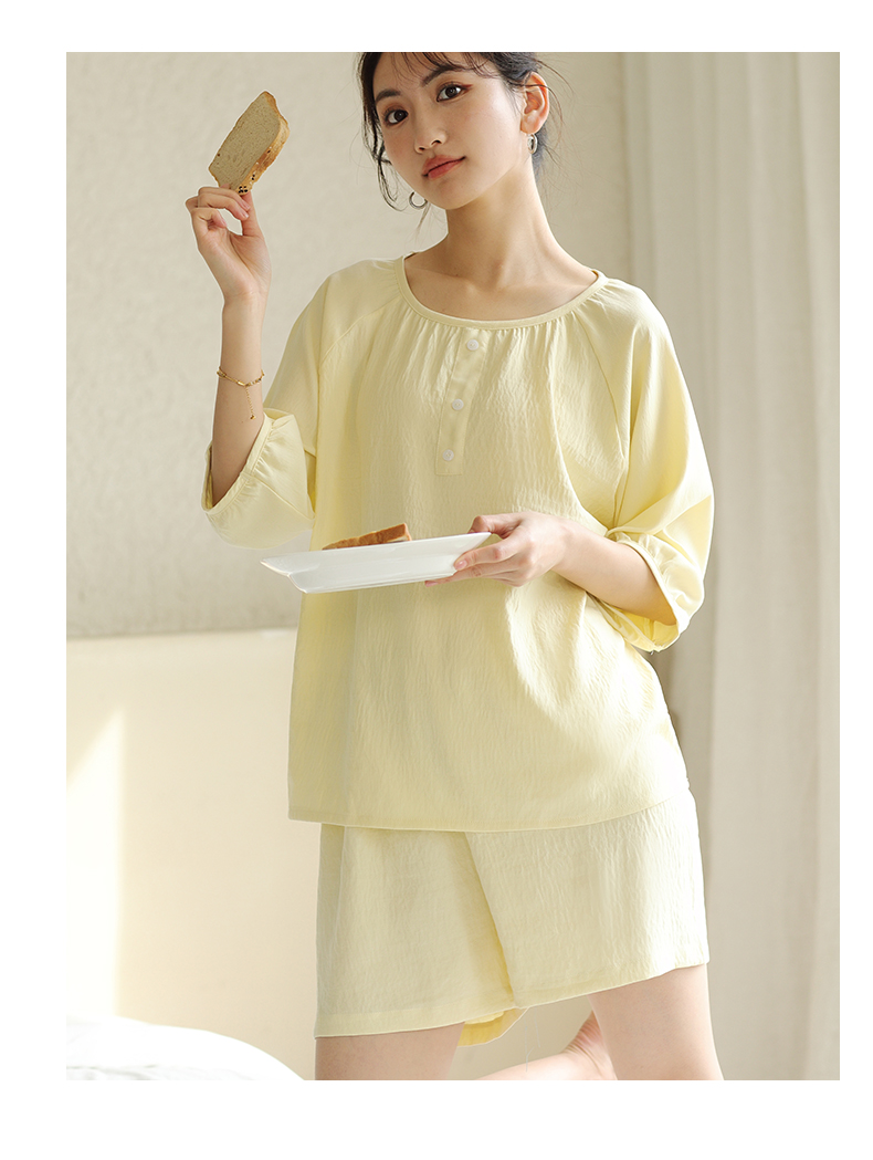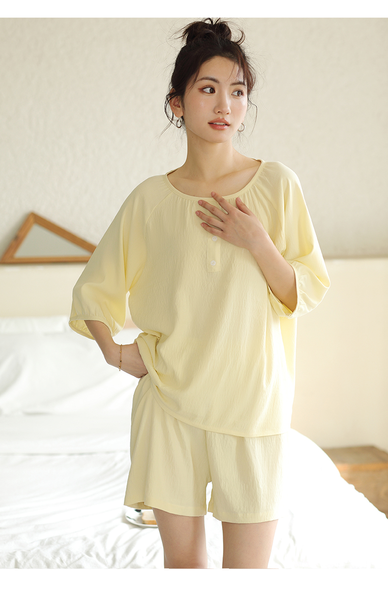 2024夏季糖果色家居服套装 柔软亲肤睡衣 舒适圆领五分袖休闲短裤短袖 商品图7
