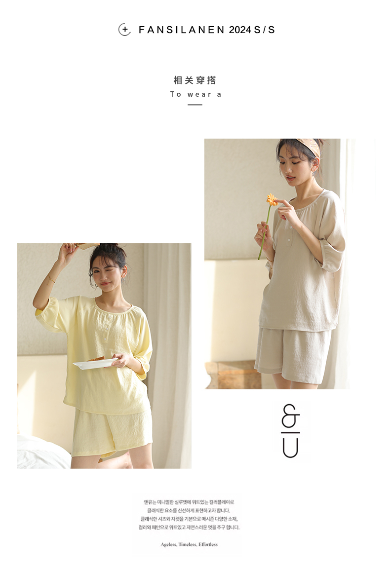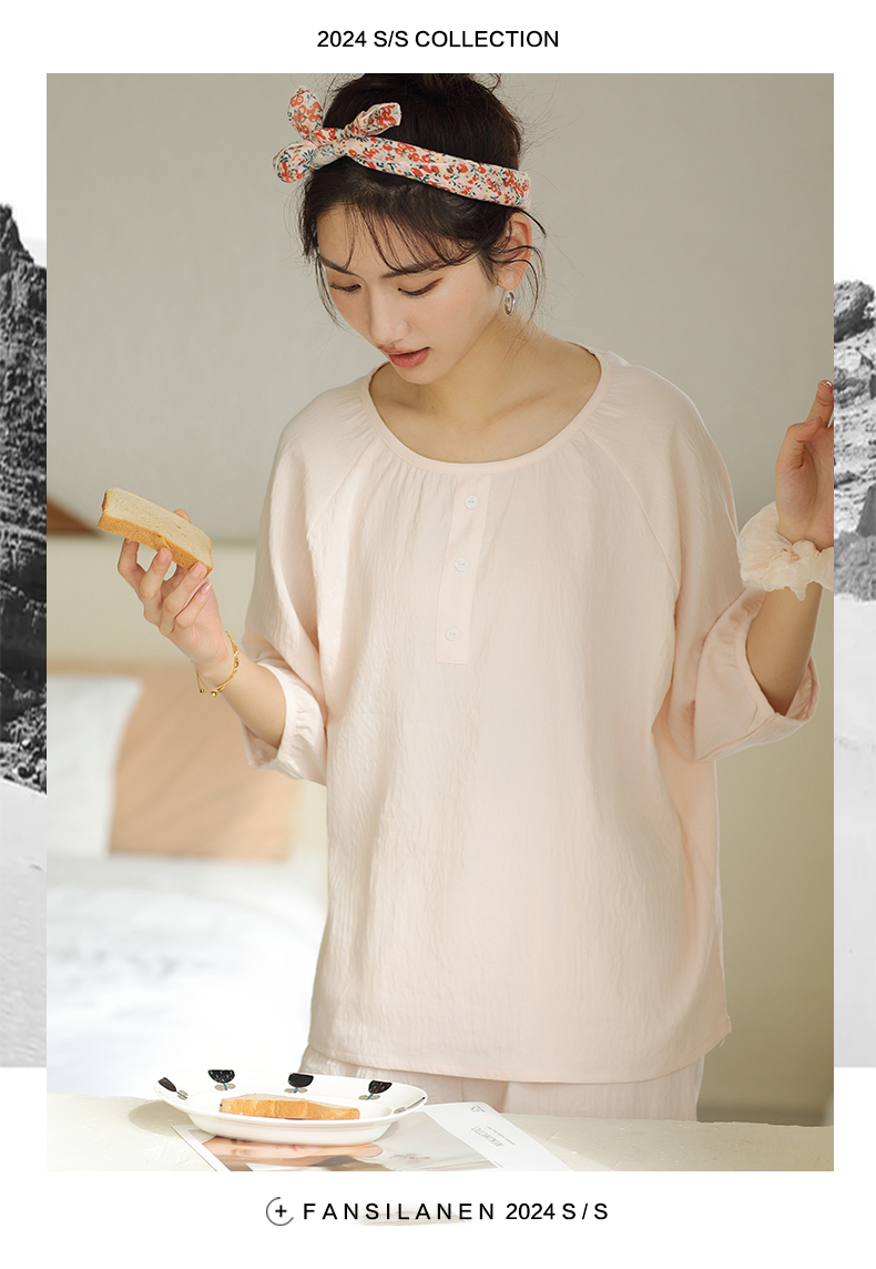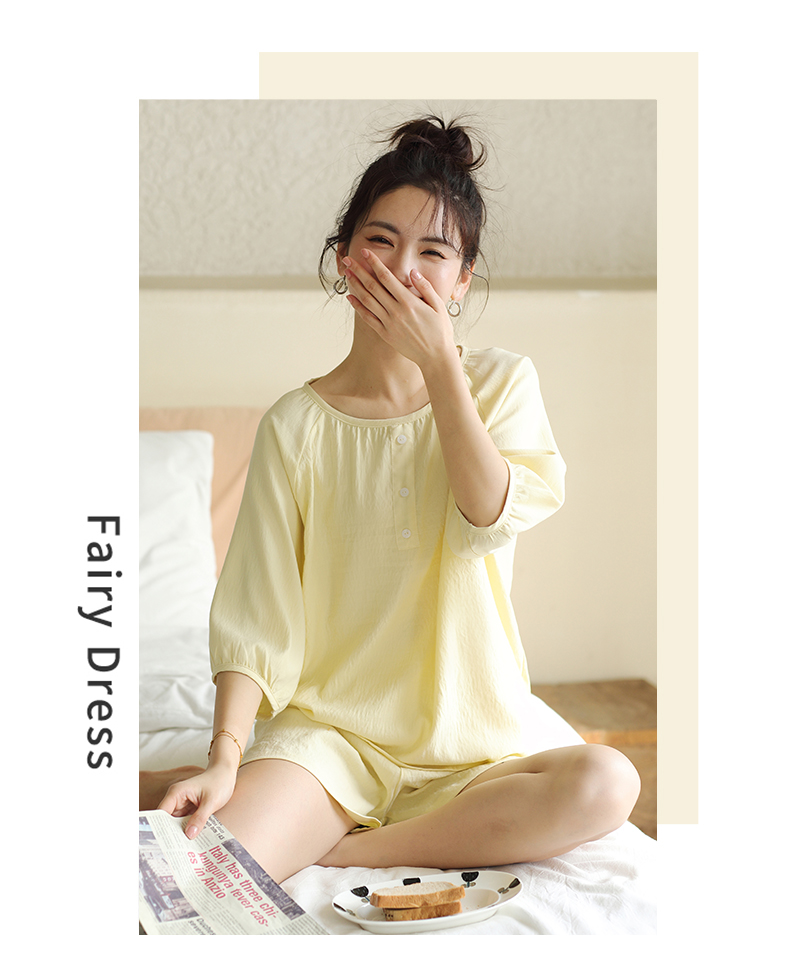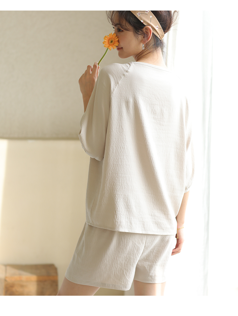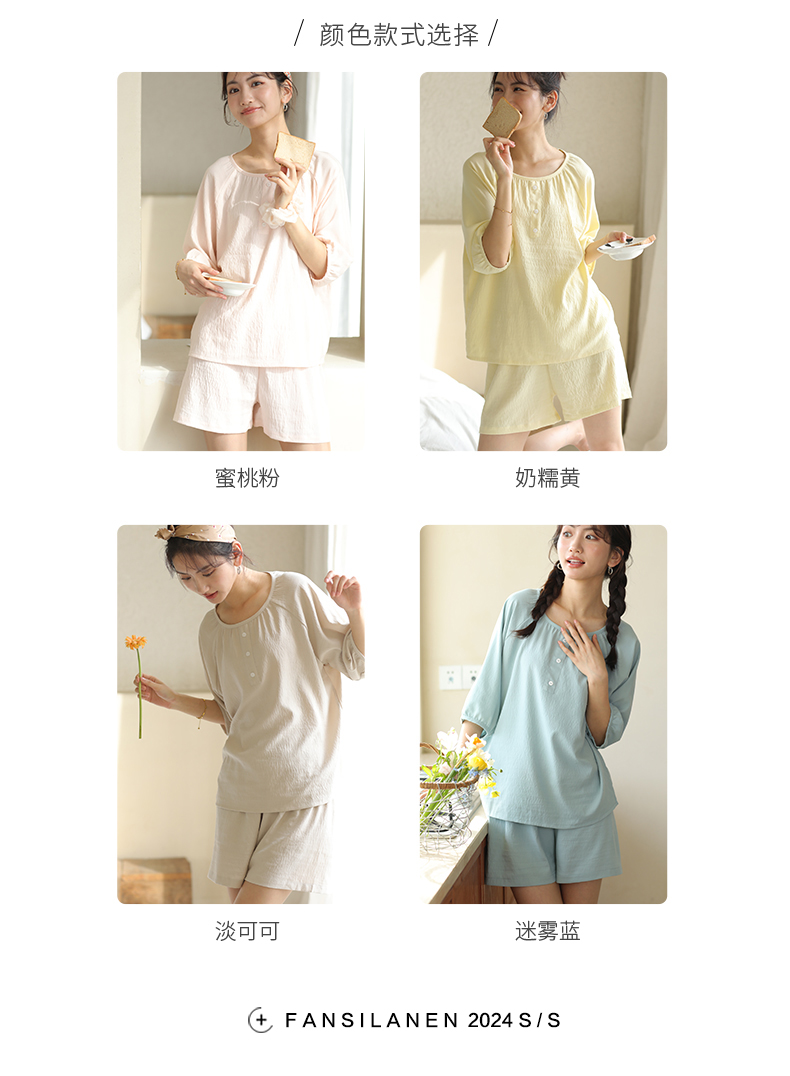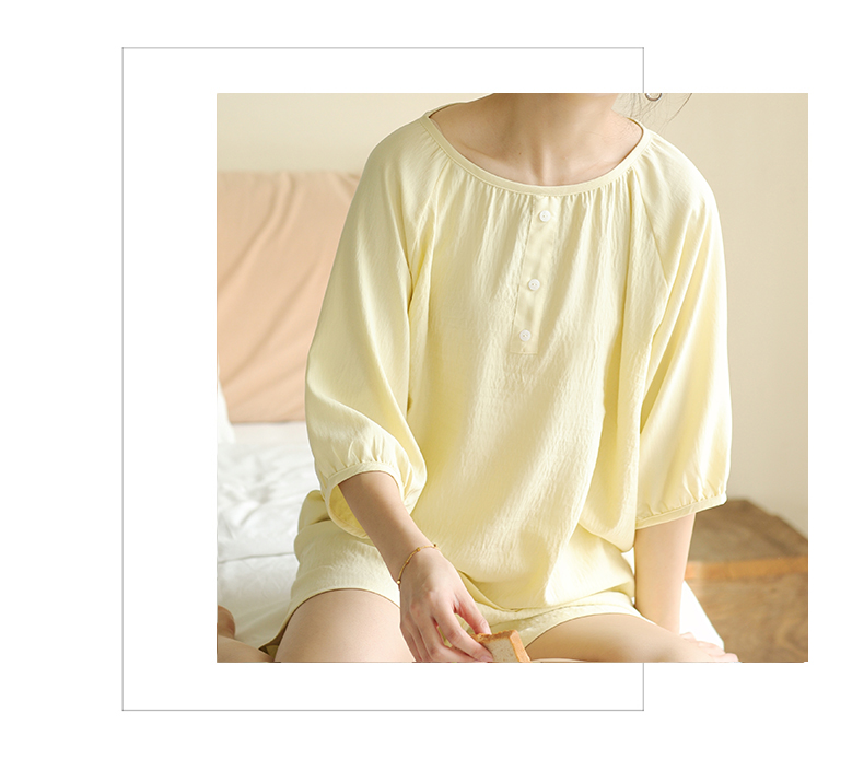 2024夏季糖果色家居服套装 柔软亲肤睡衣 舒适圆领五分袖休闲短裤短袖 商品图7