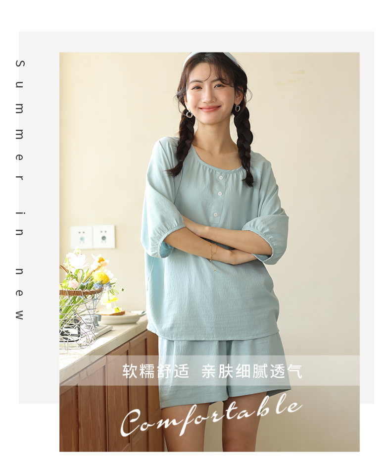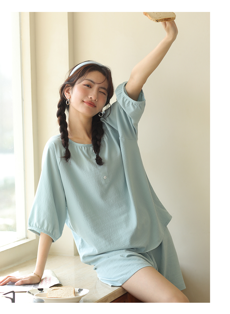 2024夏季糖果色家居服套装 柔软亲肤睡衣 舒适圆领五分袖休闲短裤短袖 商品图6