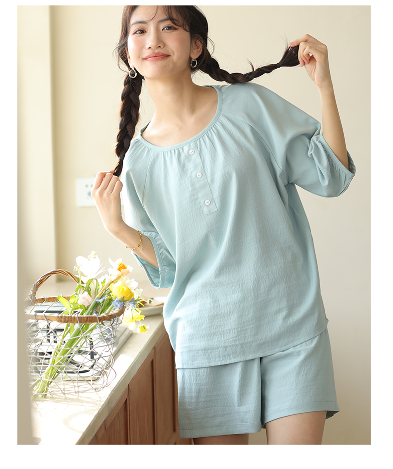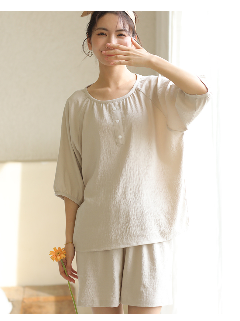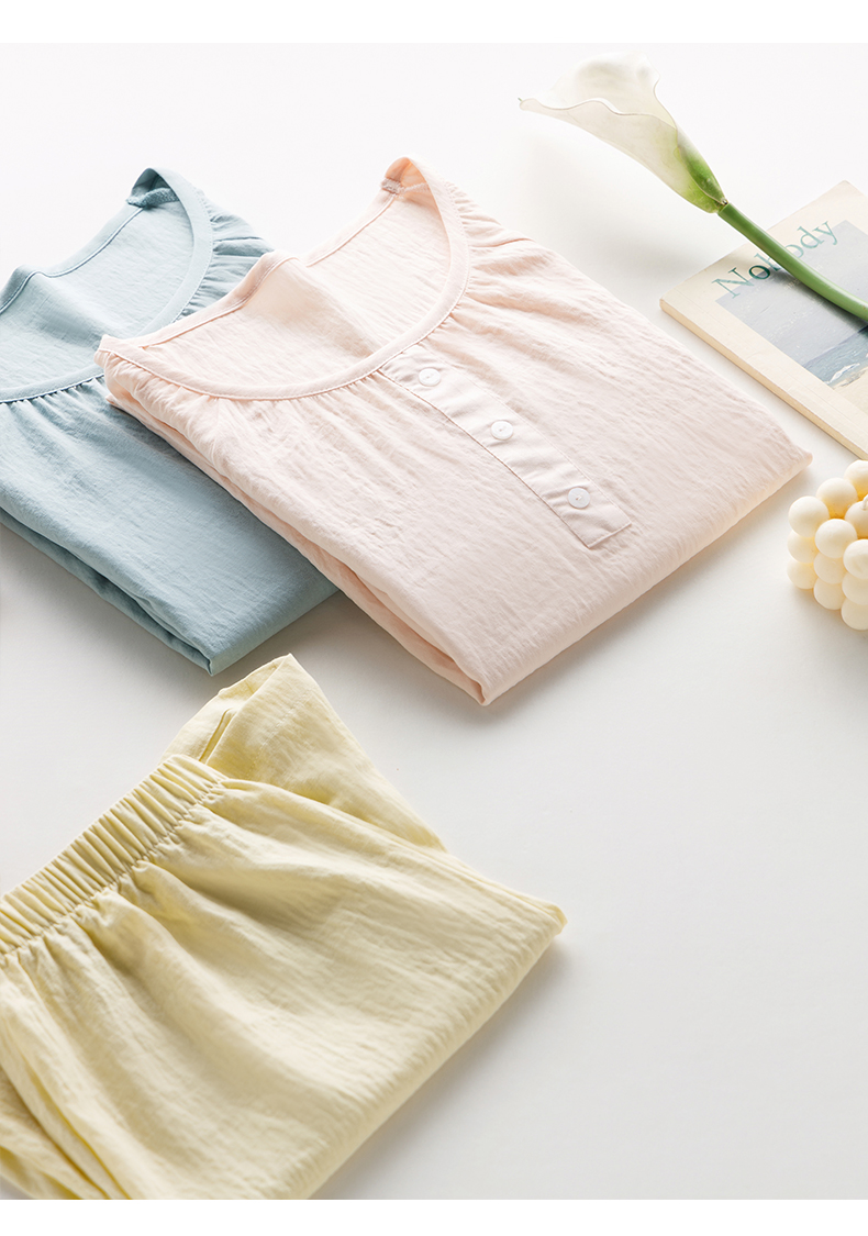 2024夏季糖果色家居服套装 柔软亲肤睡衣 舒适圆领五分袖休闲短裤短袖 商品图5