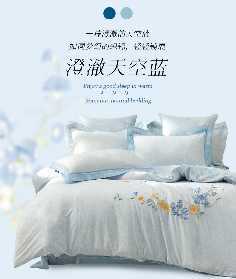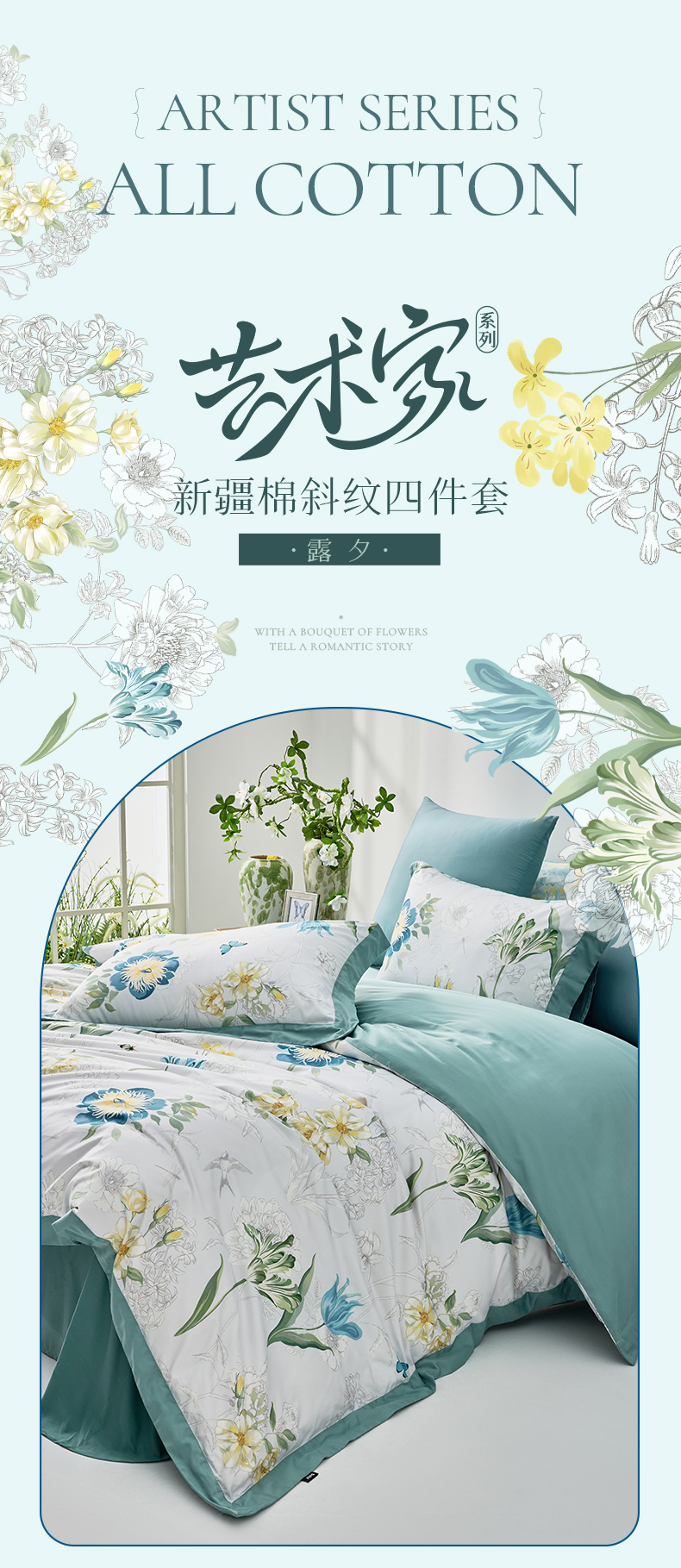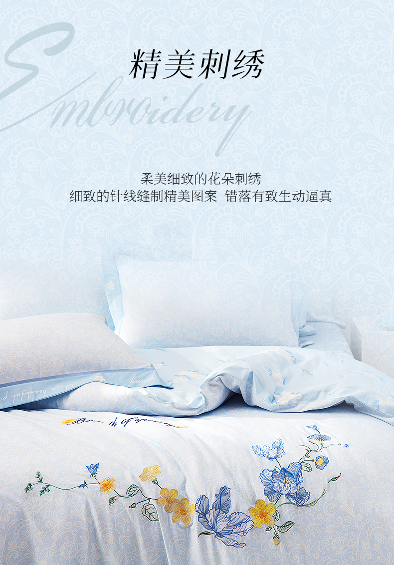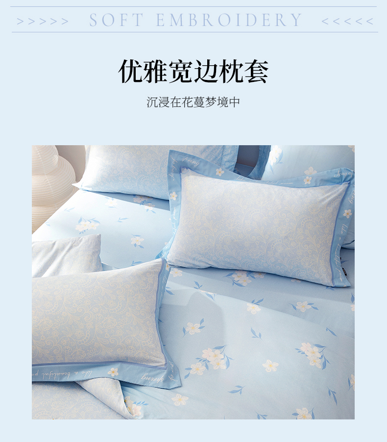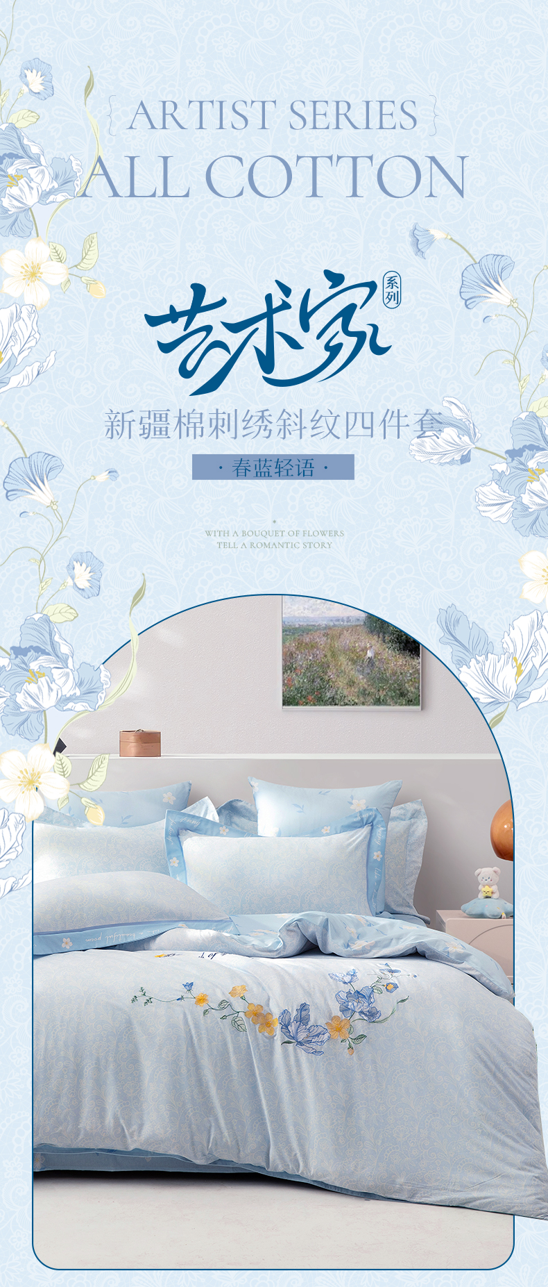 多喜爱新疆棉刺绣斜纹四件套静谧雅舍系列(春蓝轻语/星葵晨曦/绿意漫步/青鸢绘梦/露夕)